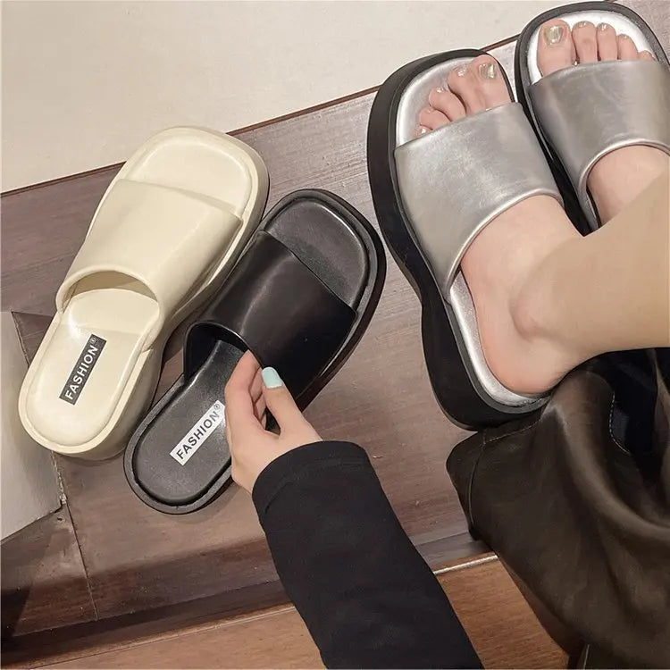 Women Slippers 2025 Summer New Luxury Sandals Women Thick Soled Designer Square Toe Slippers Slides Women Zapatos