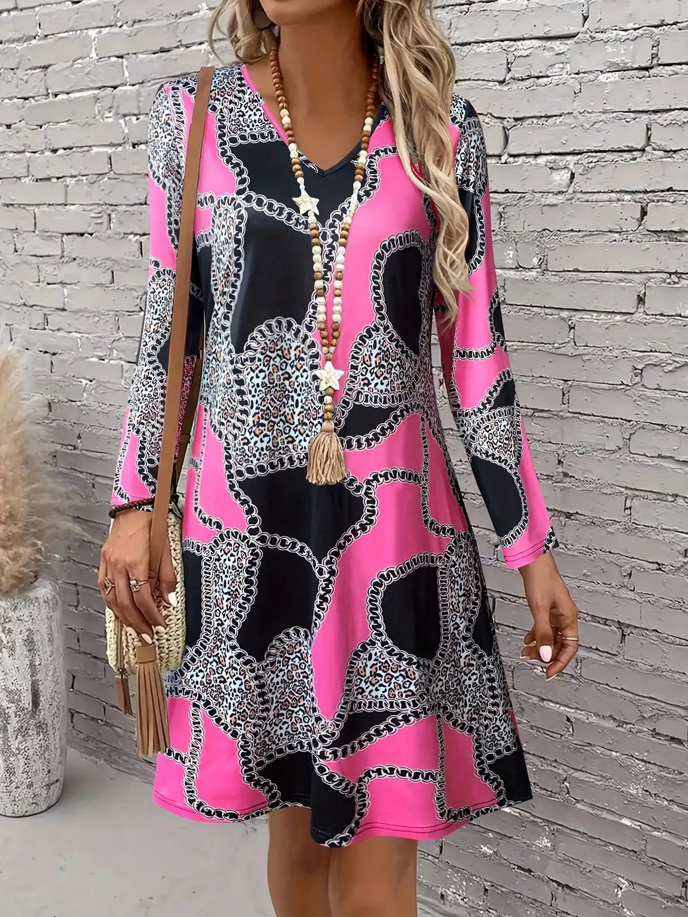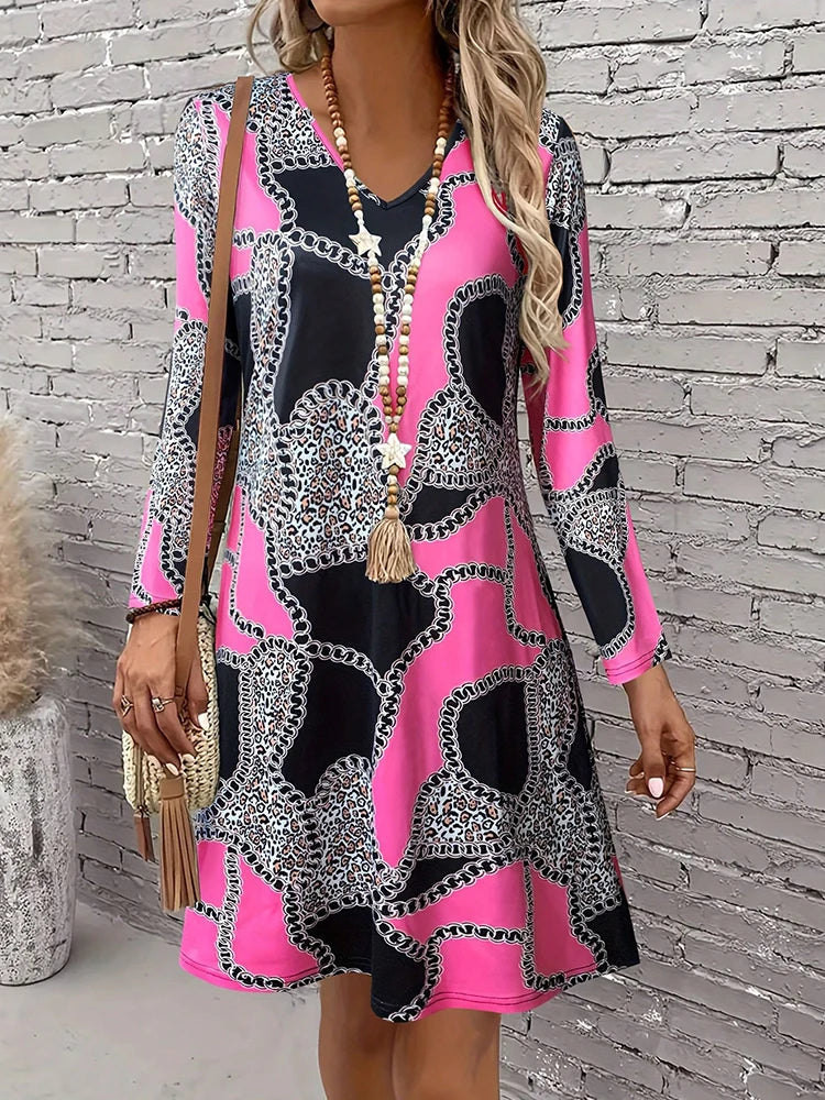 This casual dress is ideal for spring, offering a stylish yet practical choice for everyday wear.