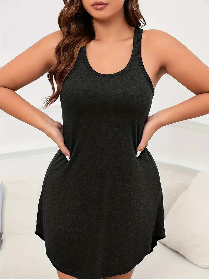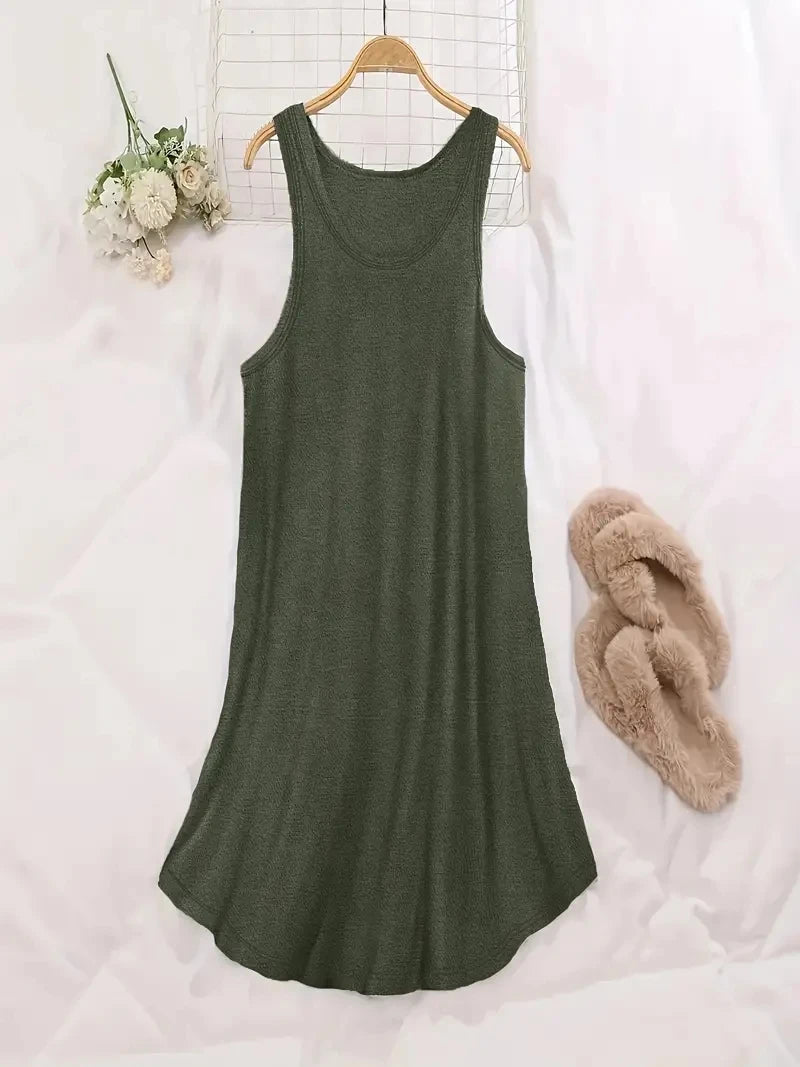 Women's Plus Size 1XL-5XL U-Neck Sleeveless Dress Basic Loungewear A-line Solid Color Casual Beach Dress Party Dress