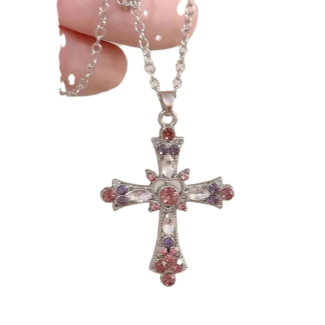 Подвеска クロスネックレス レディース ラインストーンペンダント 鎖骨チェーンチャーム パーティージュエリーギフト パンク ピンク パープル ジルコン ゴシック