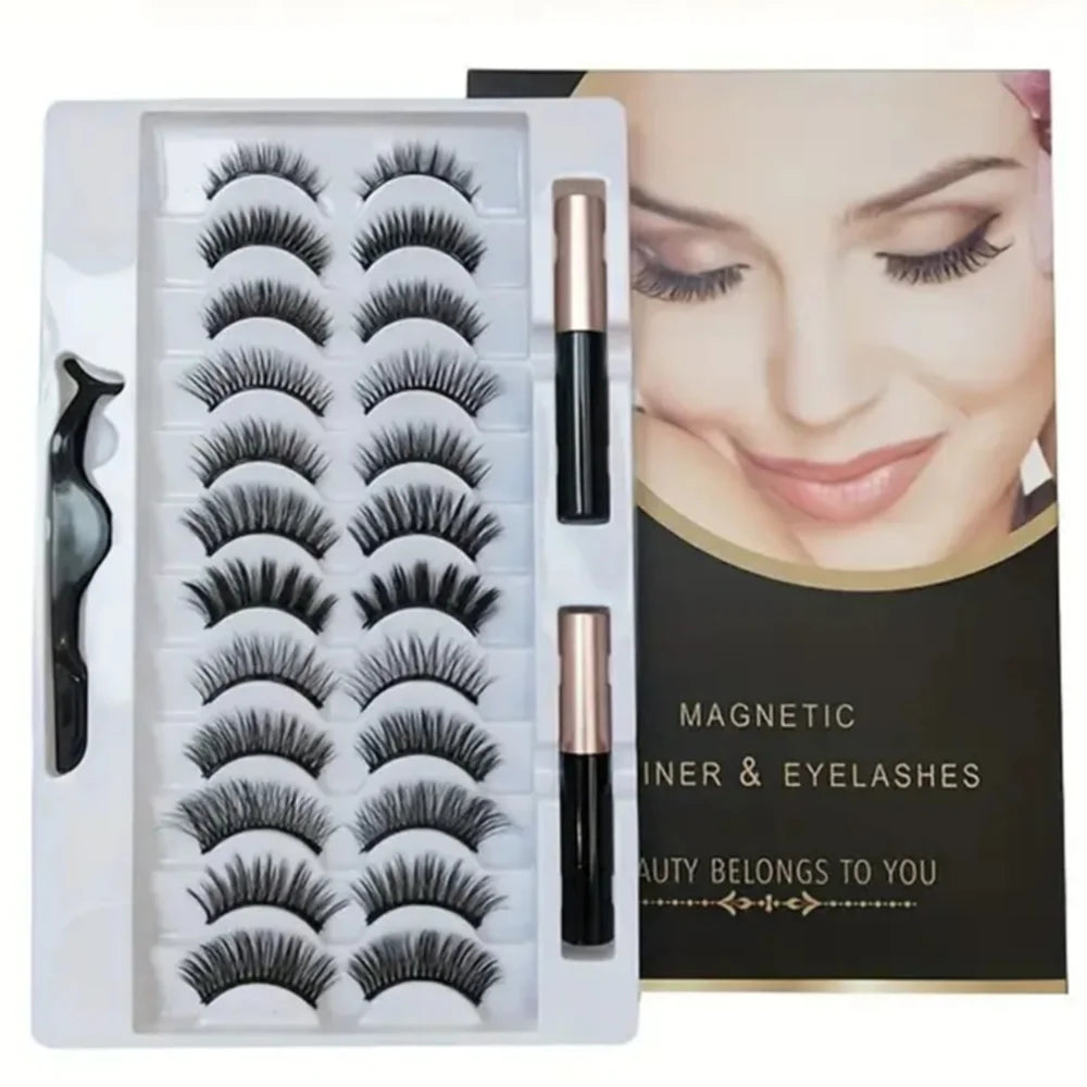 12組の磁気つけまつげセット、自然でリアルなカール、磁気まつげ、接着剤不要、再利用可能なまつげ