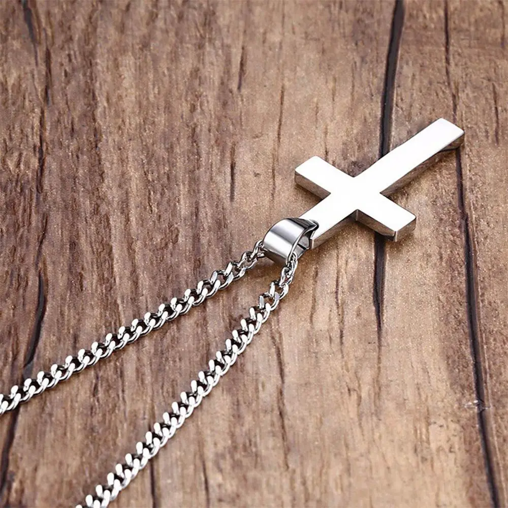 1PC 合金クロスペンダント ゴールド/シルバーメッキ メンズネックレス ステンレススチール リンクチェーン ファッションステートメント チャームジュエリー