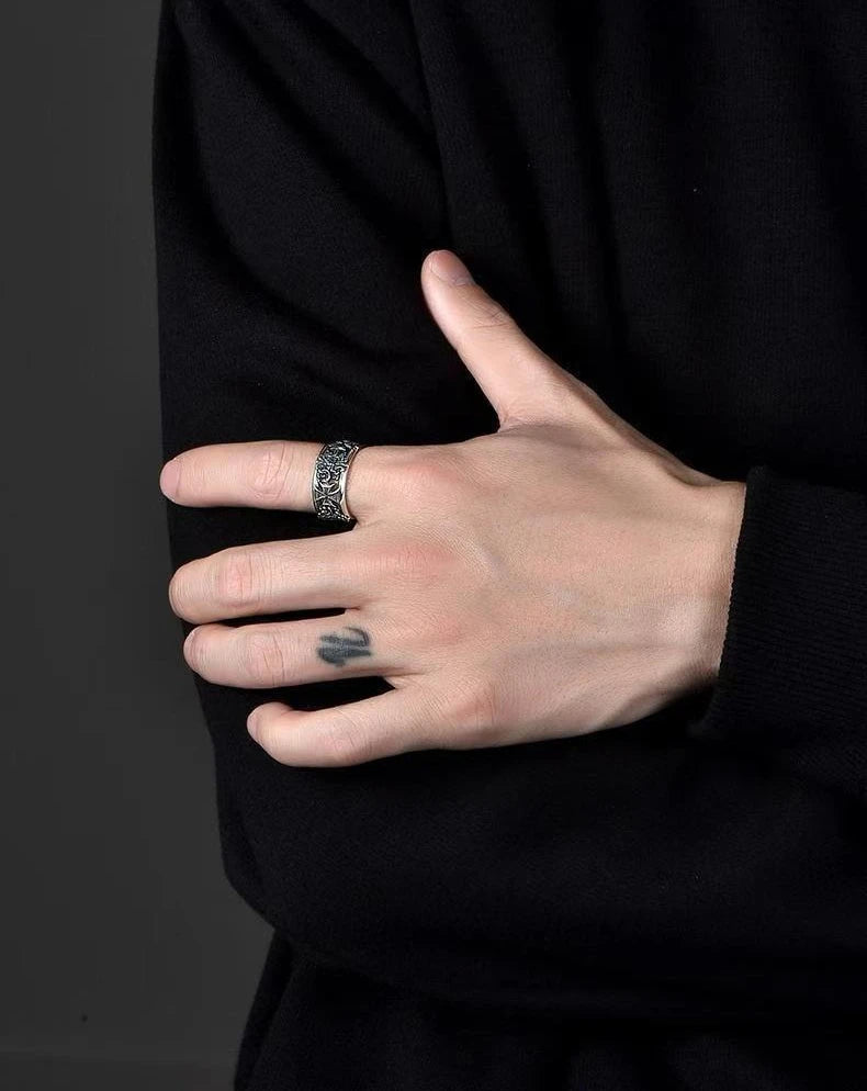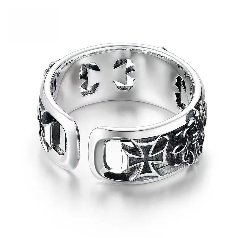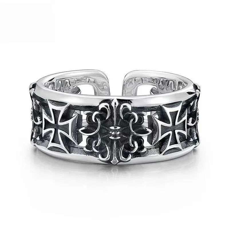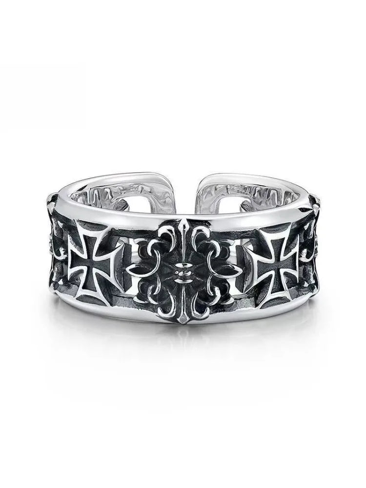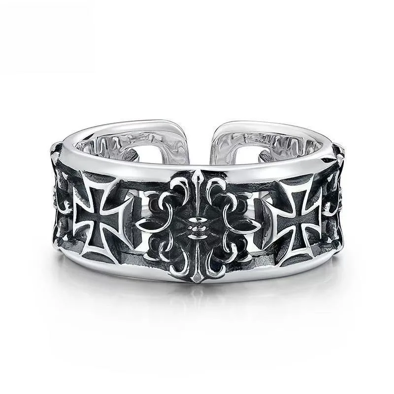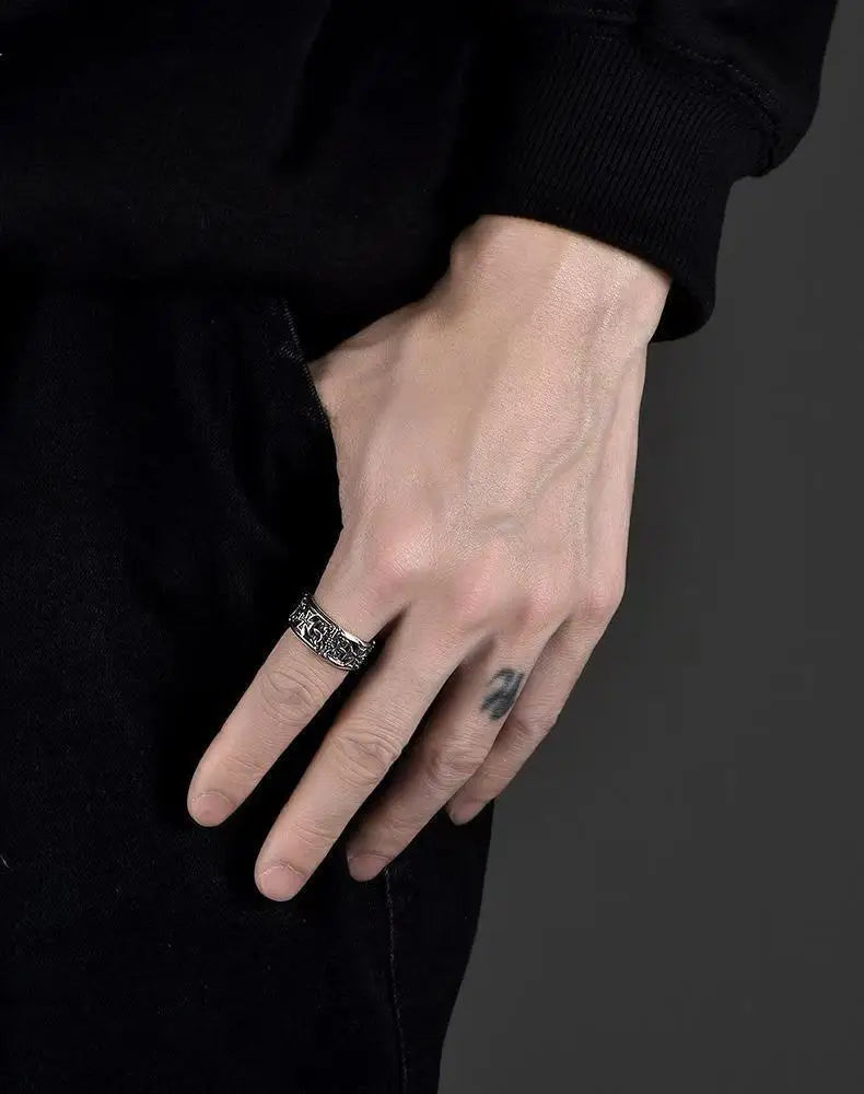 2025 レトロ クロス トレンディ リング メンズ ヒップホップ パンクスタイル 個性的 ハイエンド オープンマウス フードリング ジュエリー 父の日ギフト