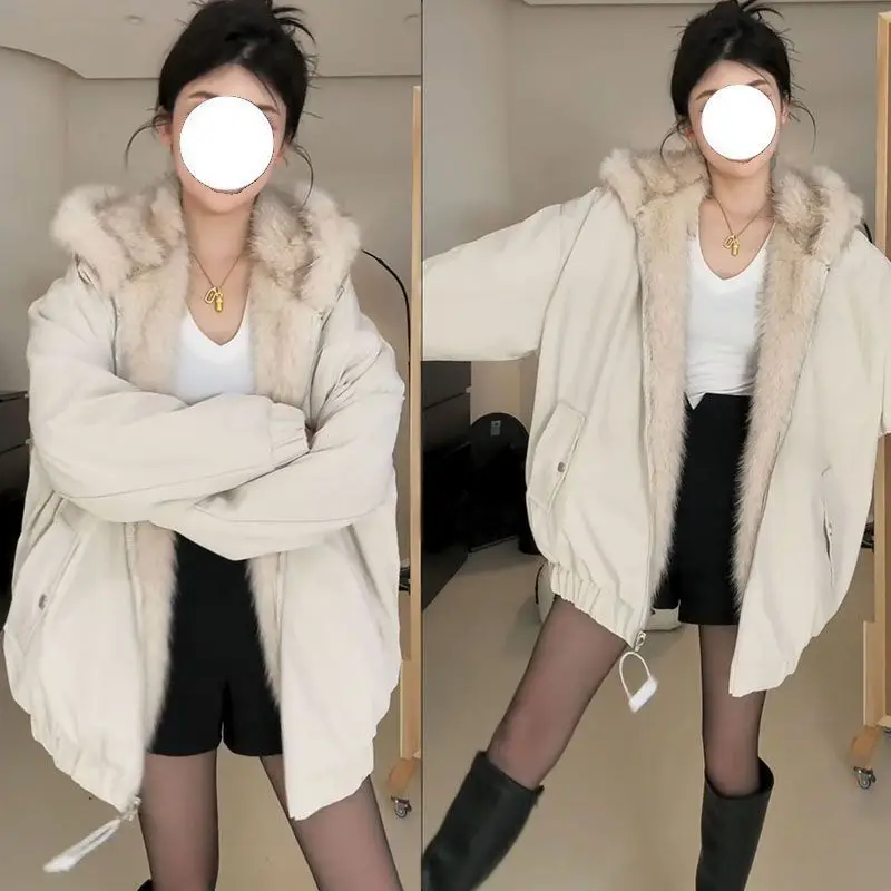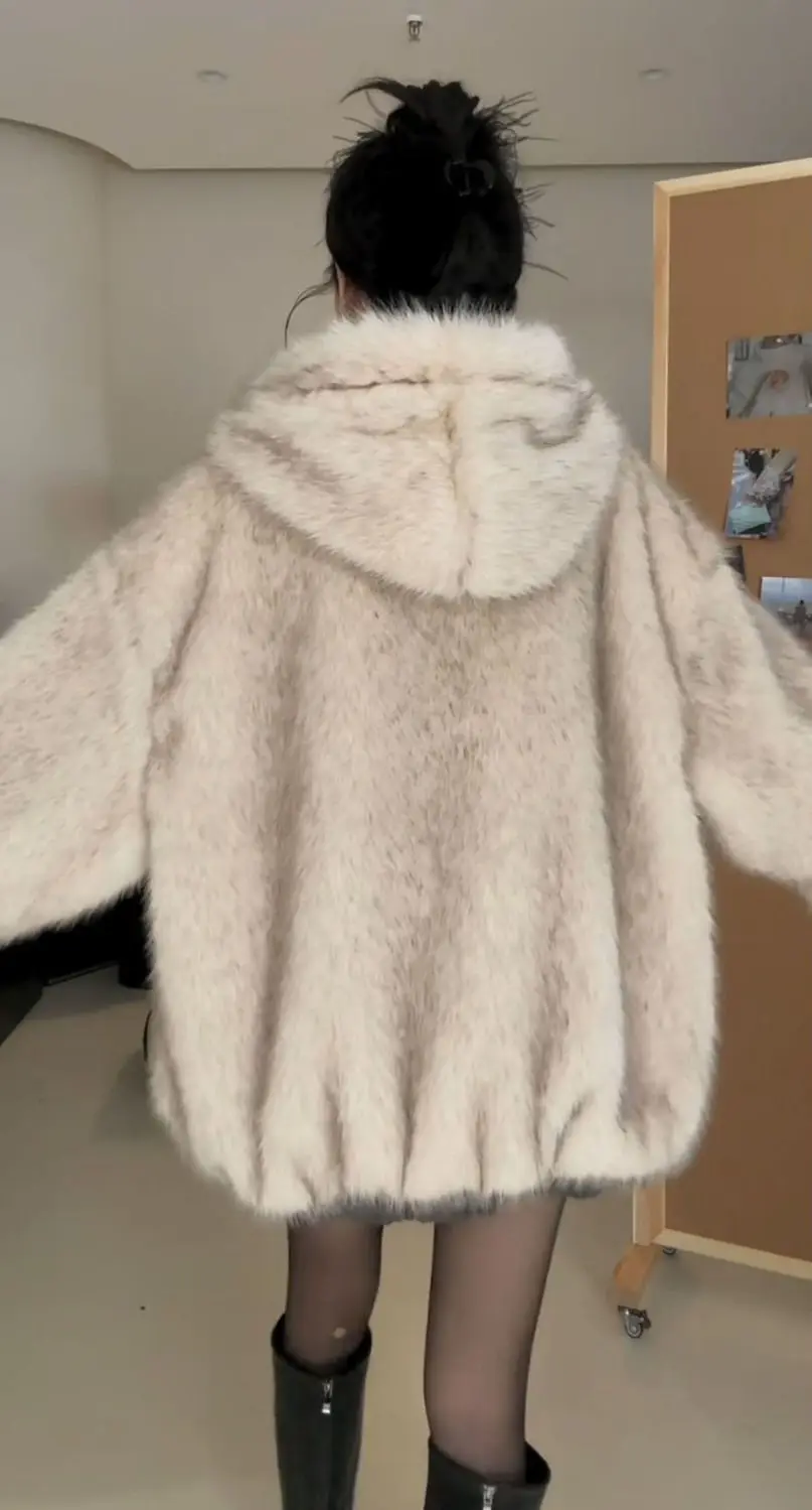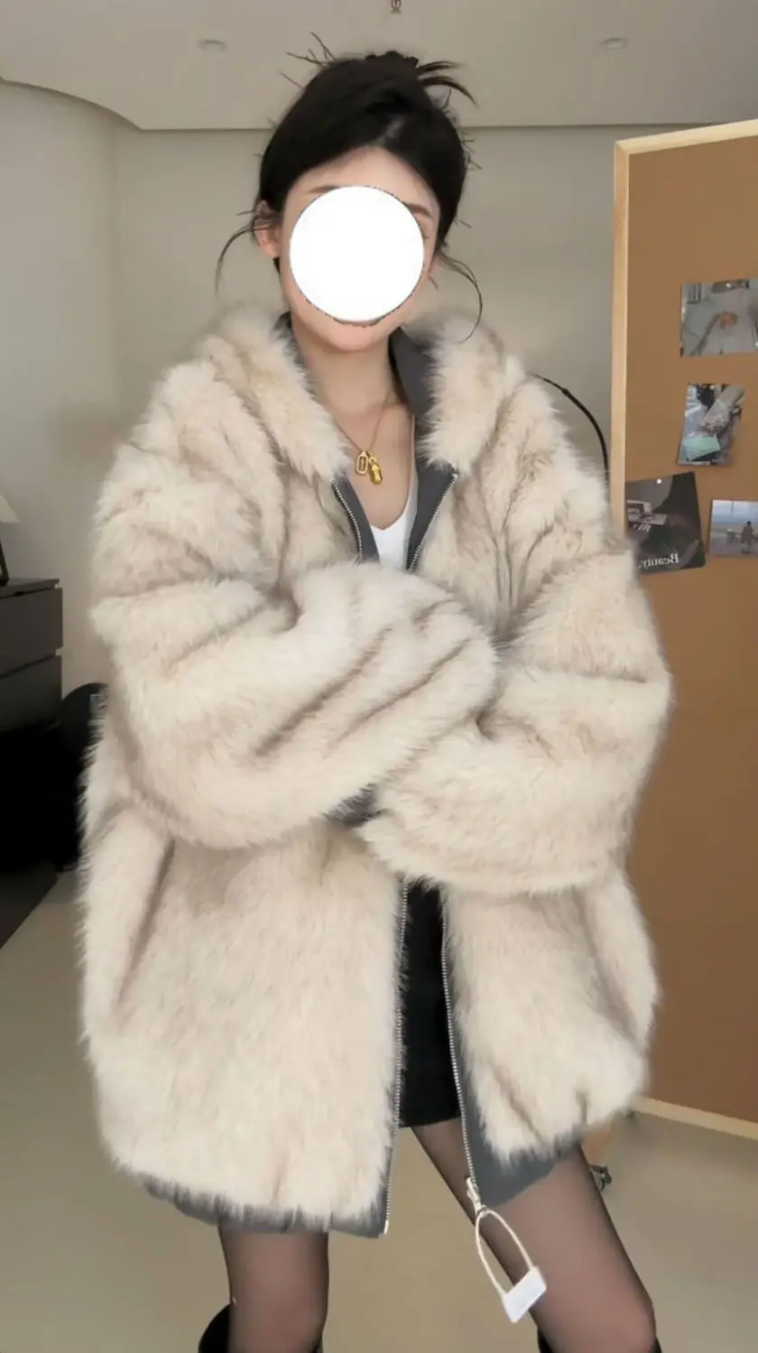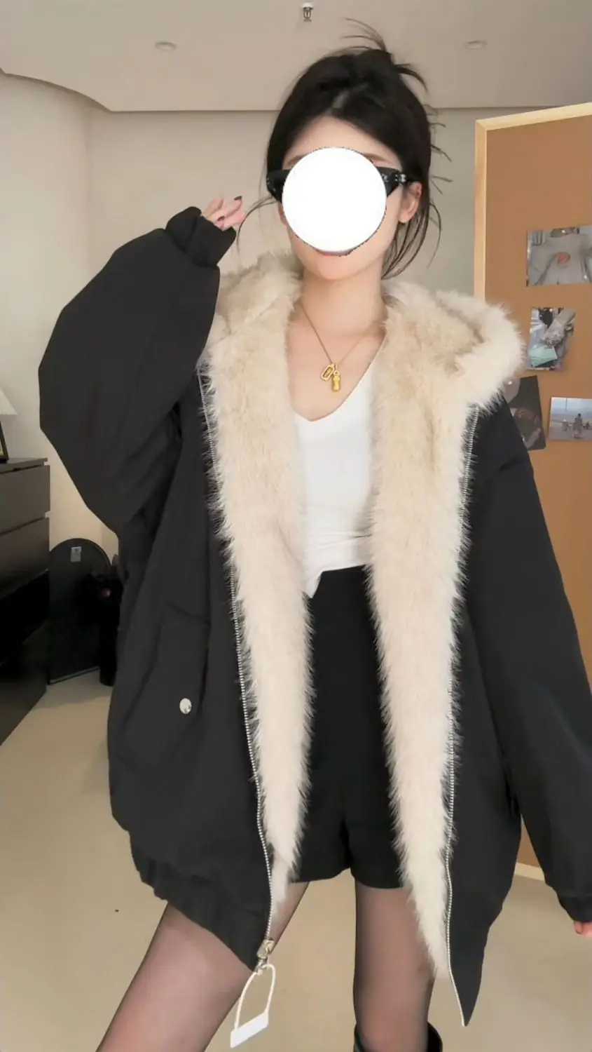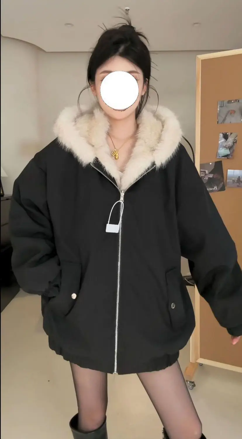2025年冬新作 厚手 プラッシュ レトロ ルーズステッチ フード付き プラッシュ ウォームジャケット 両面着用 原宿系 カジュアルジャケット レディースコート