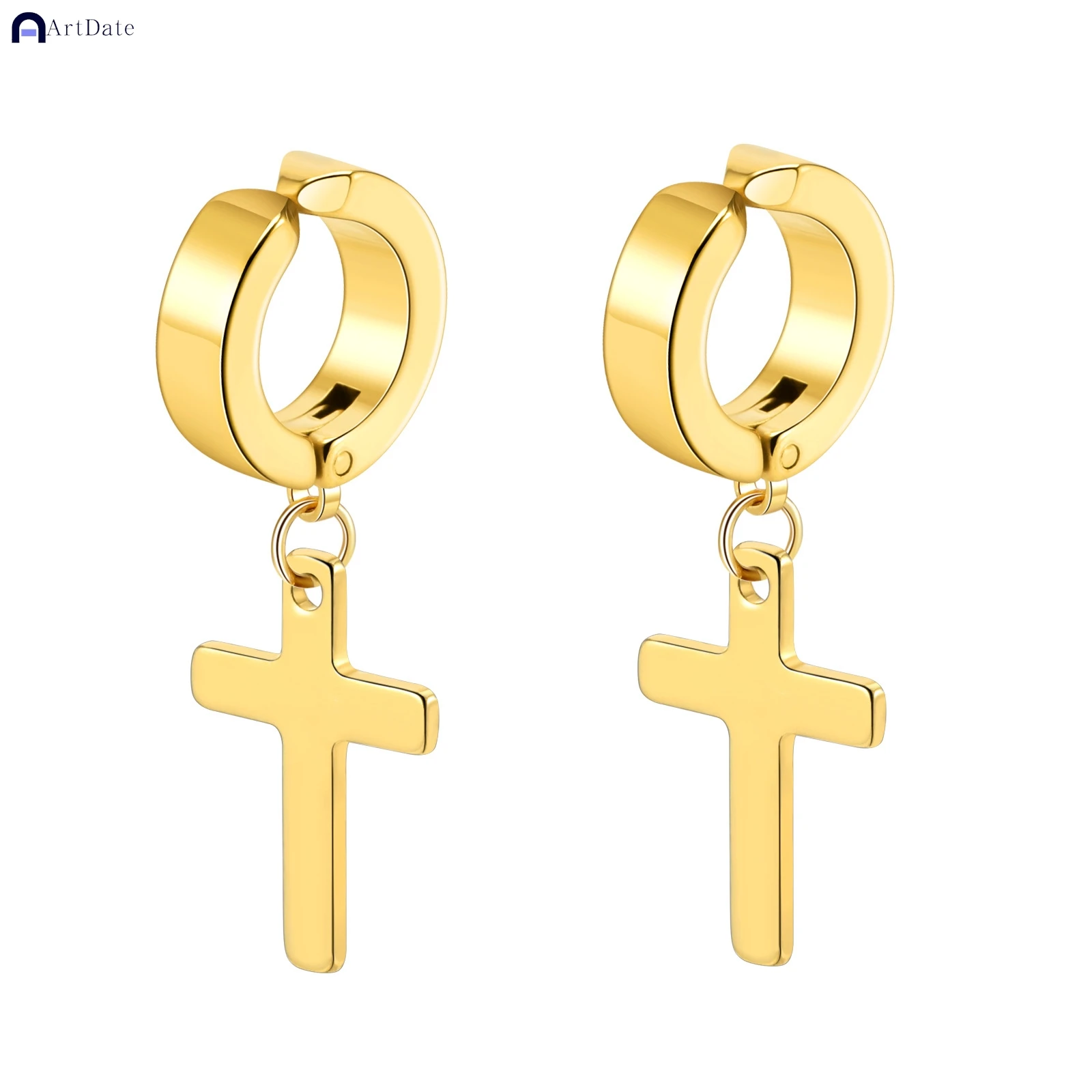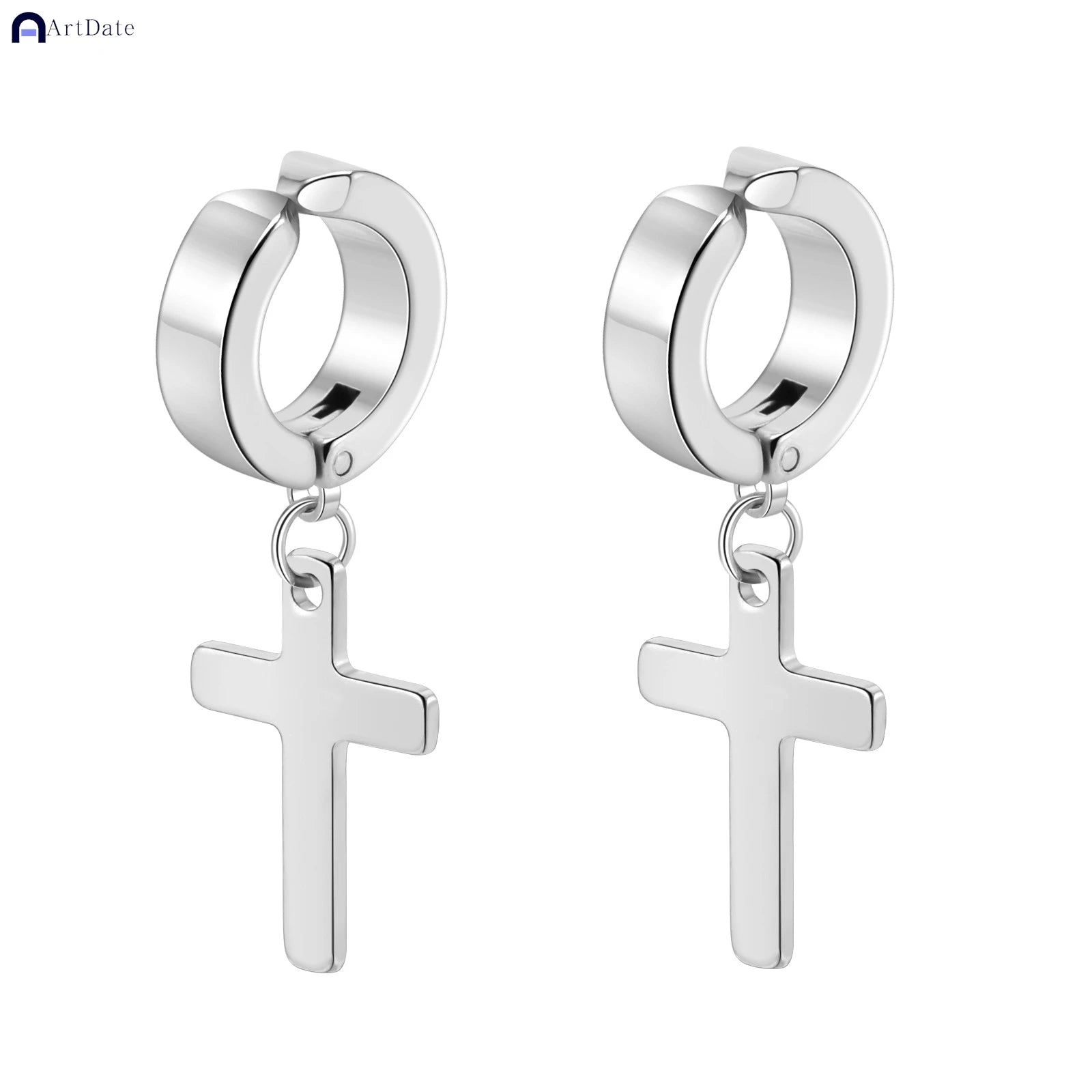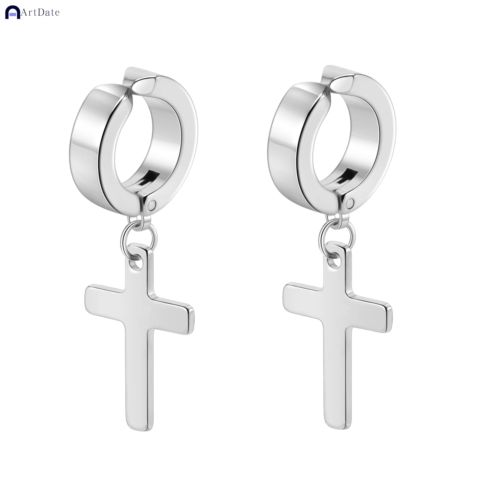 2個入り ステンレススチール メンズ クロス スター パンク ダングルイヤリング ゴシック レディース クロス イヤーフープイヤリング ハギーズ ペンダント ピアスジュエリー