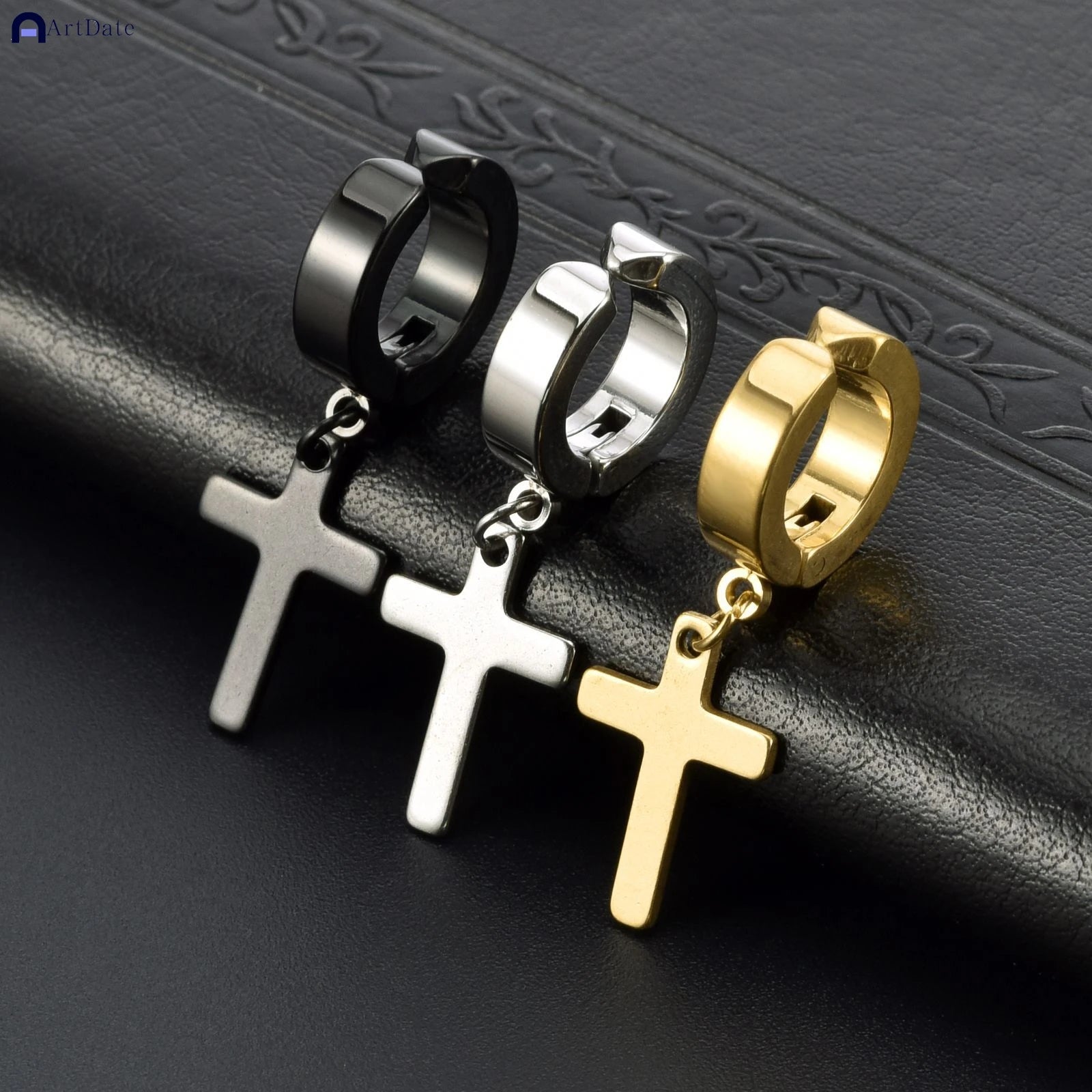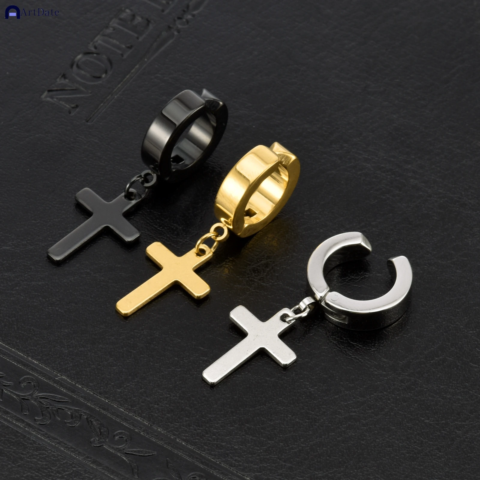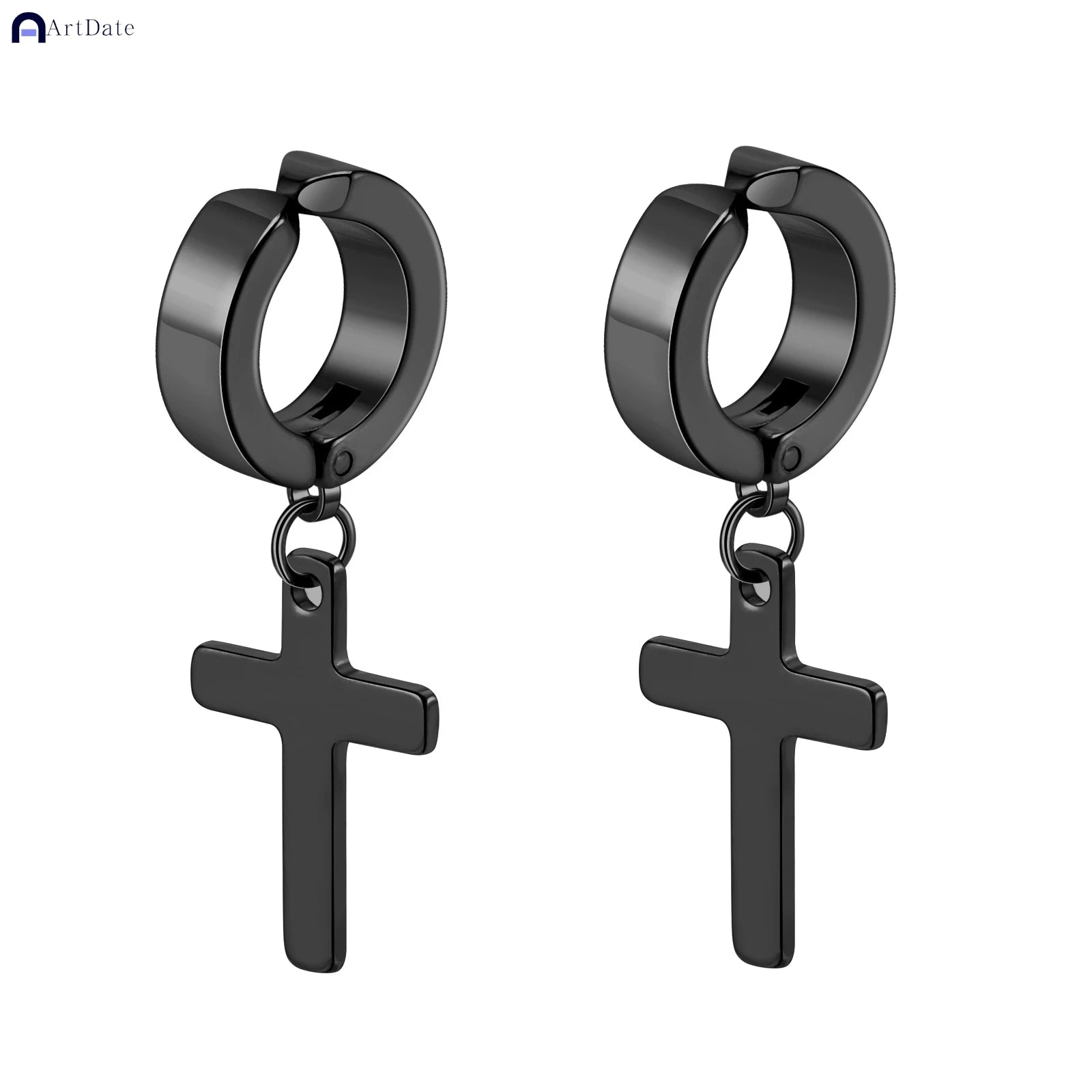 2個入り ステンレススチール メンズ クロス スター パンク ダングルイヤリング ゴシック レディース クロス イヤーフープイヤリング ハギーズ ペンダント ピアスジュエリー