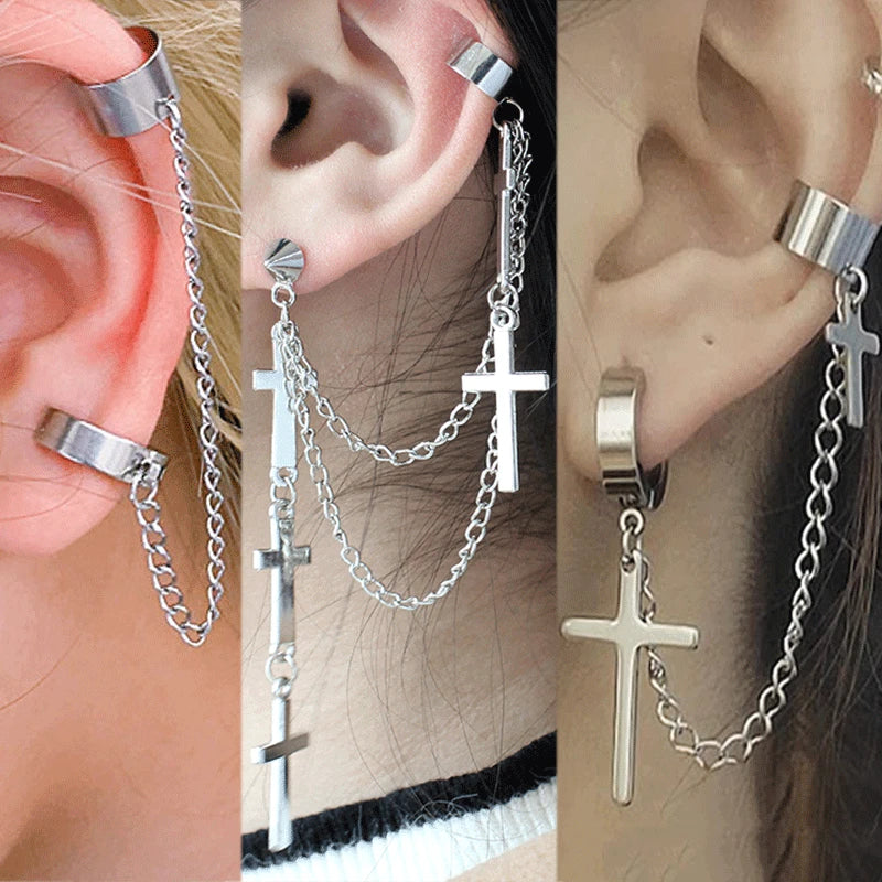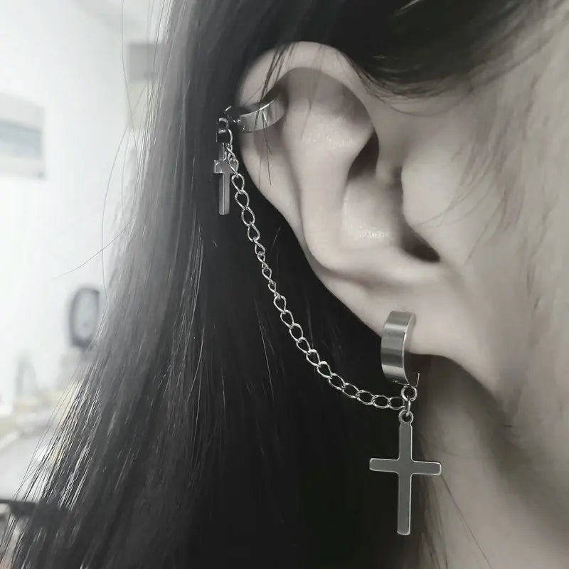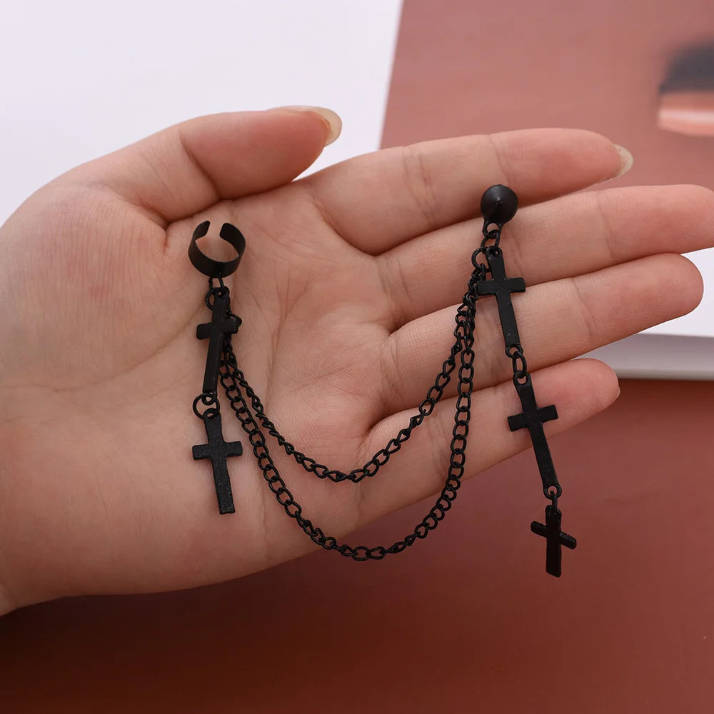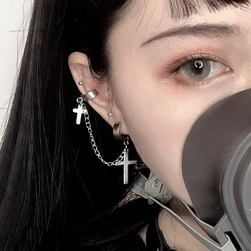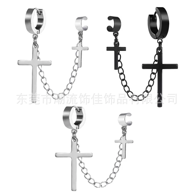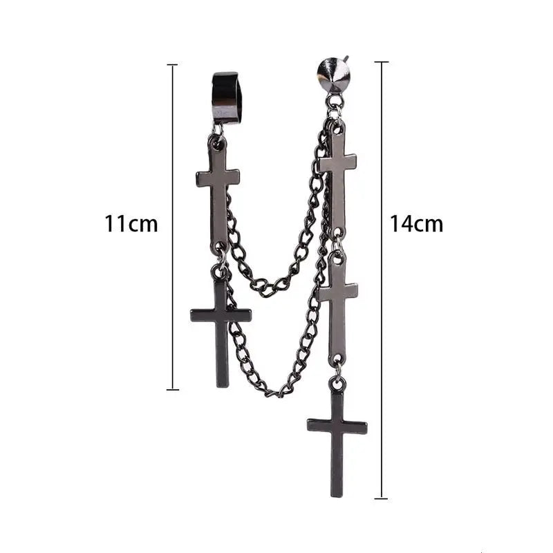 2個 メンズ レディース パンク ゴシック クロス イヤリング 誇張されたクラシック メタル クリスチャン チェーン ドロップ ダングル イヤリング ストリート ヒップホップ ジュエリー