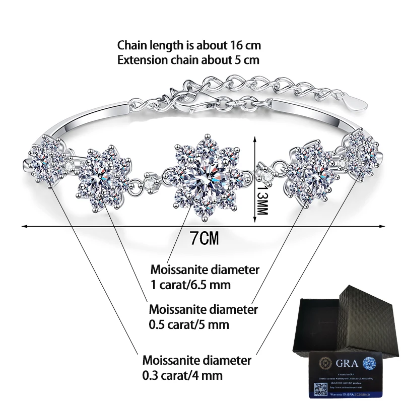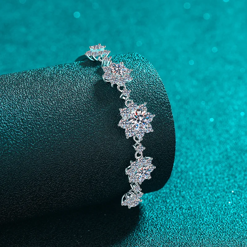 925シルバー 2.6カラット モアッサナイトブレスレット ファッションフラワースタイル 輝くゴージャスなジュエリーギフト 結婚式 母の日に最適