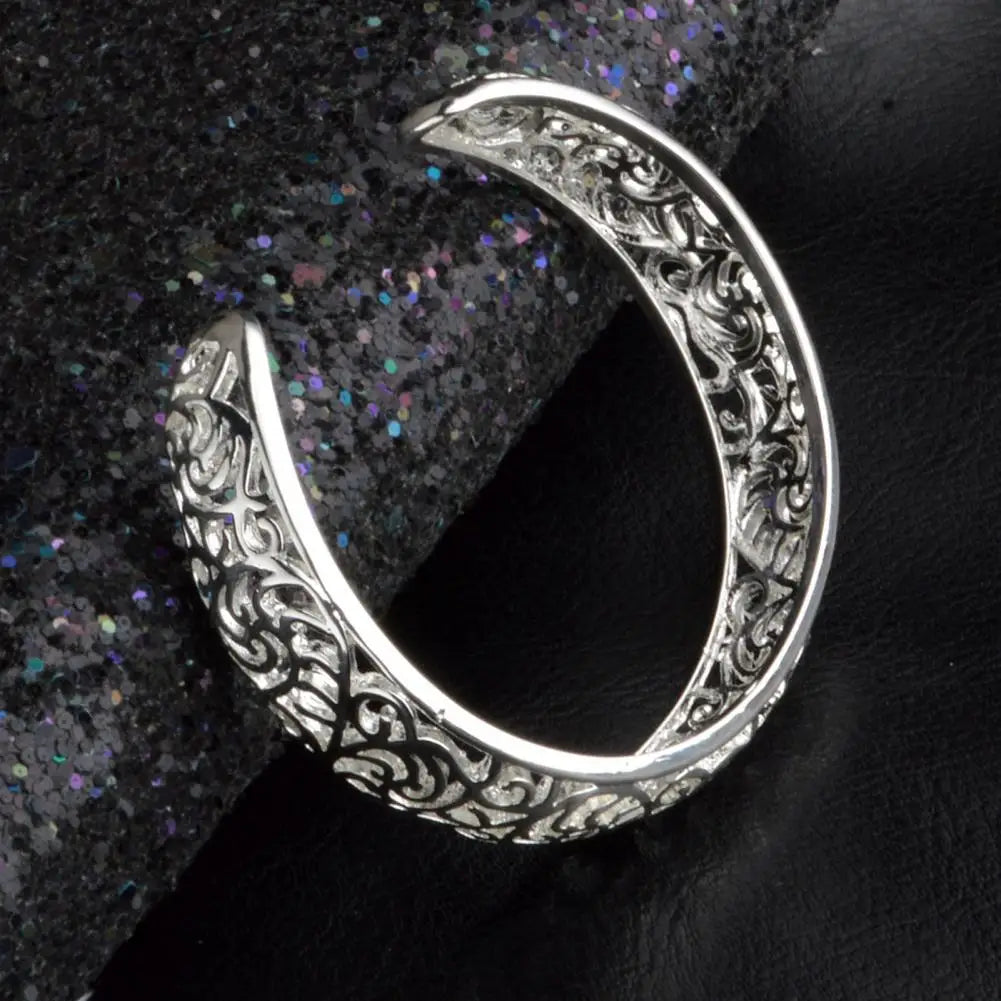 カフブレスレットオープニング絶妙な職人技中空シルバーカラー彫刻パターンレトロバングルパーティー用