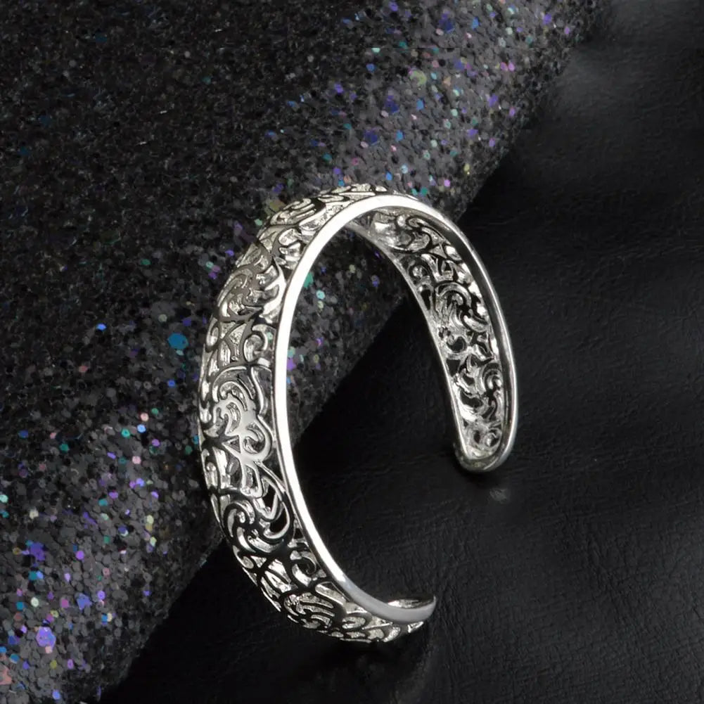 高品質の 925 シルバー素材で作られたこのレトロ バングルは、錆びにくく、快適に着用できます。