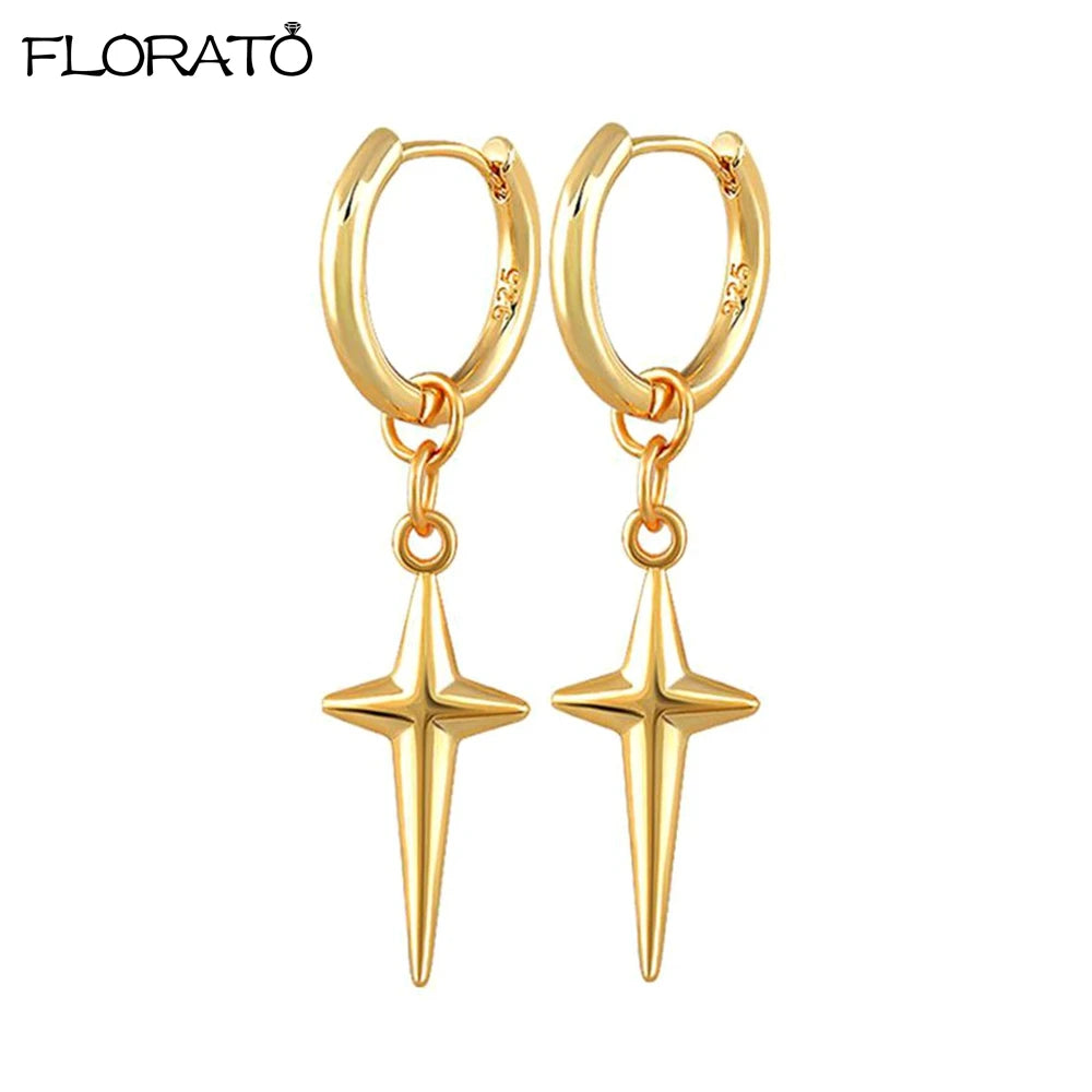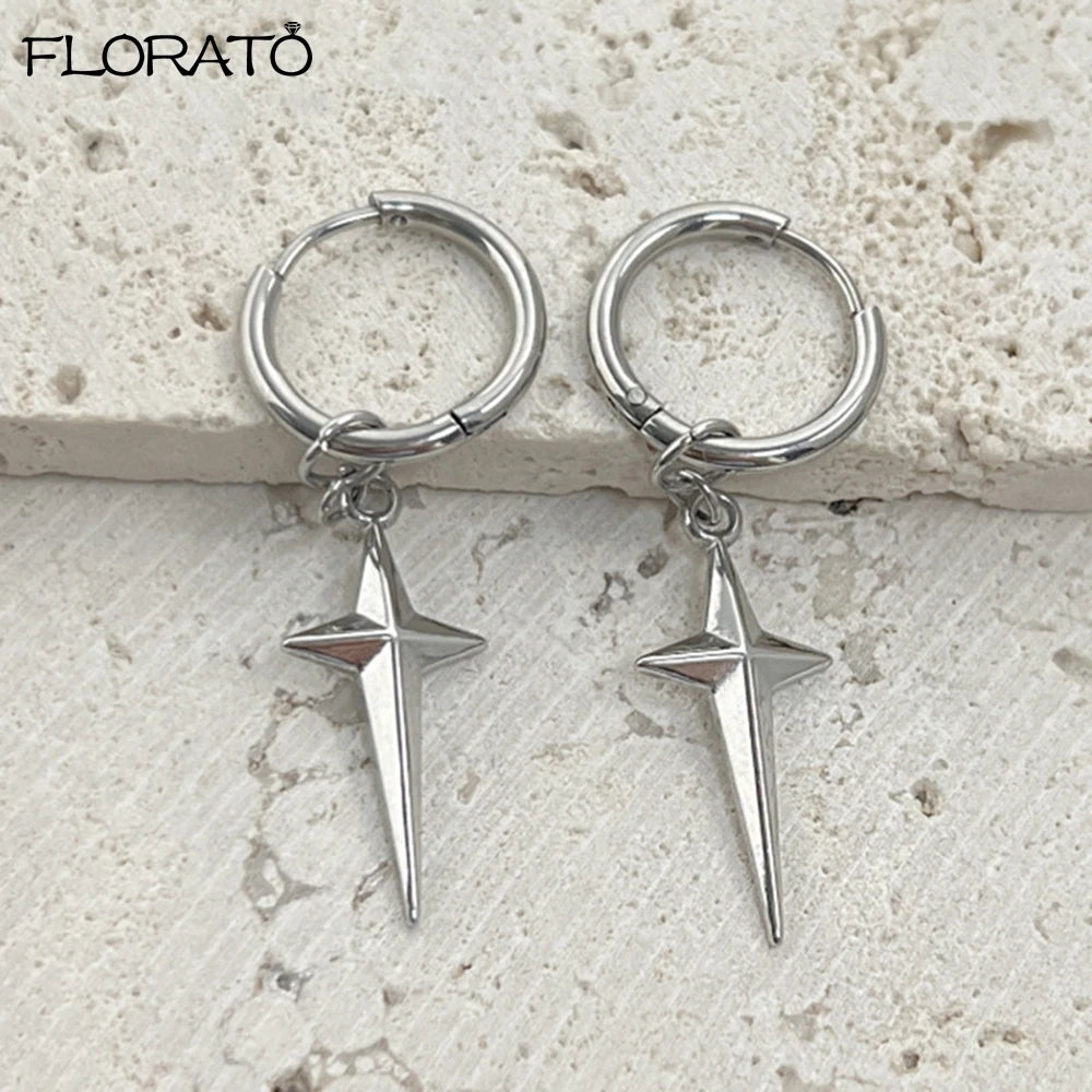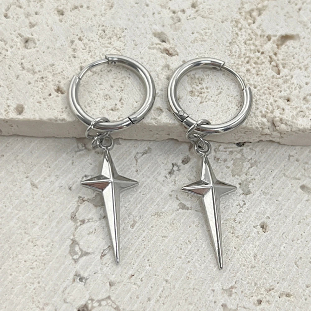 925シルバーニードルメンズクロススターパンクダングルイヤリングゴシックレディースクロスイヤーフープイヤリングハギーペンダントピアスジュエリー