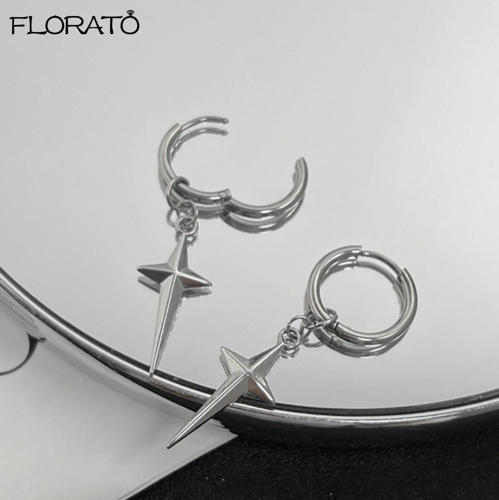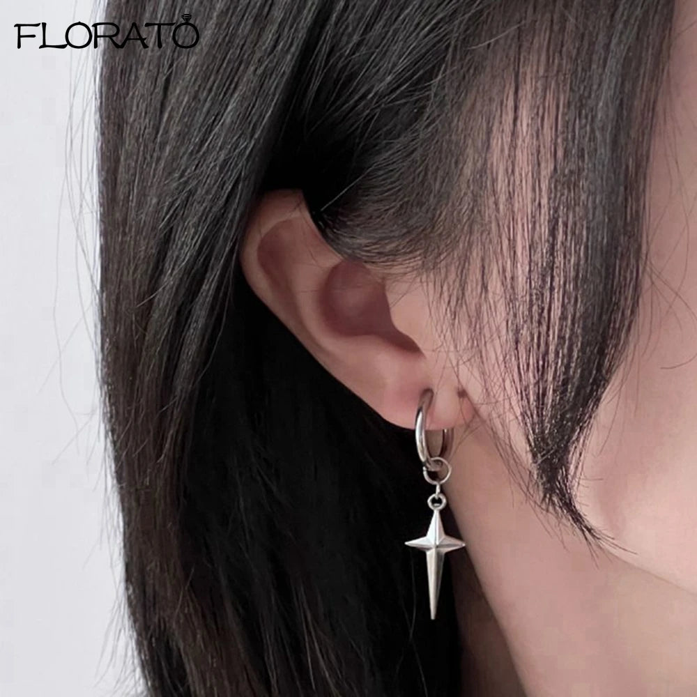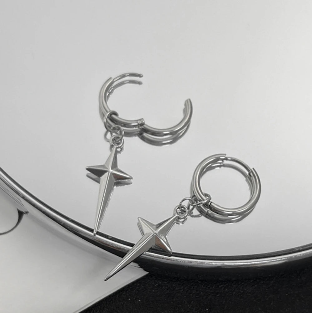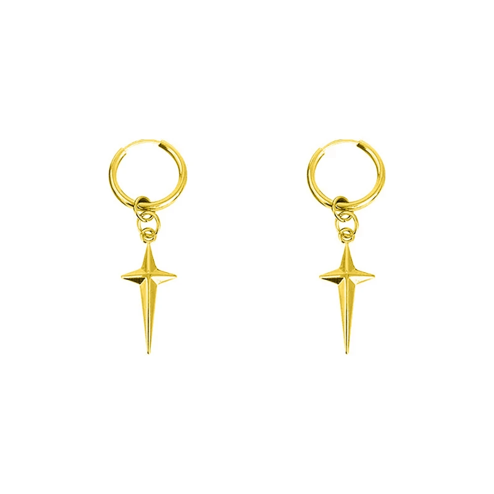 925シルバーニードルメンズクロススターパンクダングルイヤリングゴシックレディースクロスイヤーフープイヤリングハギーペンダントピアスジュエリー