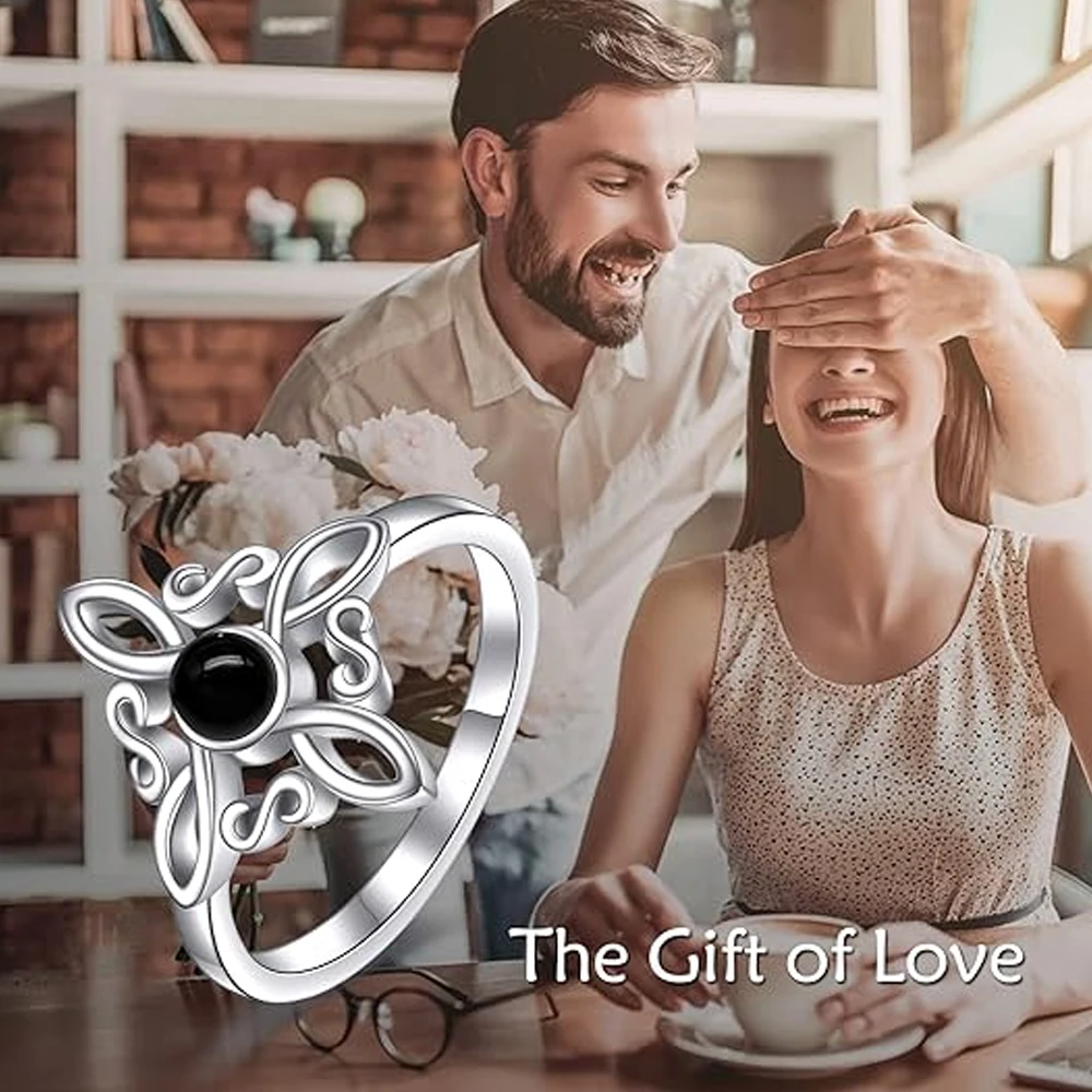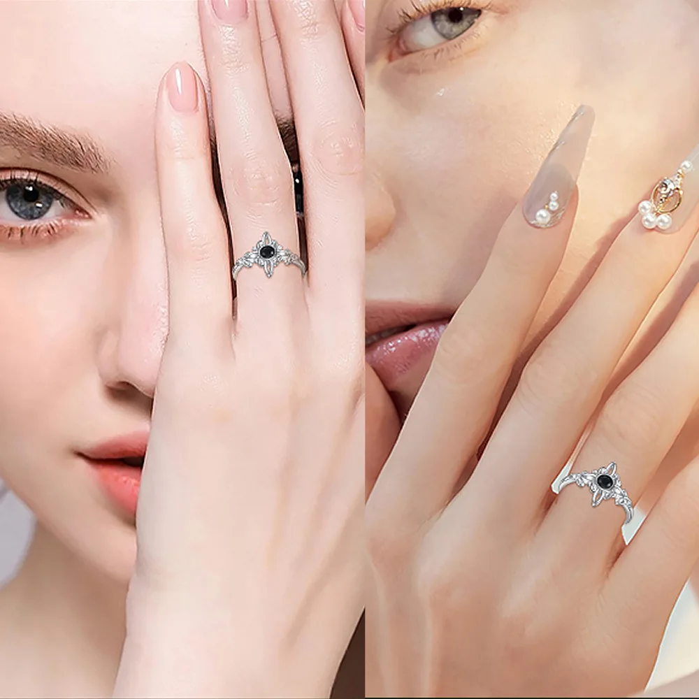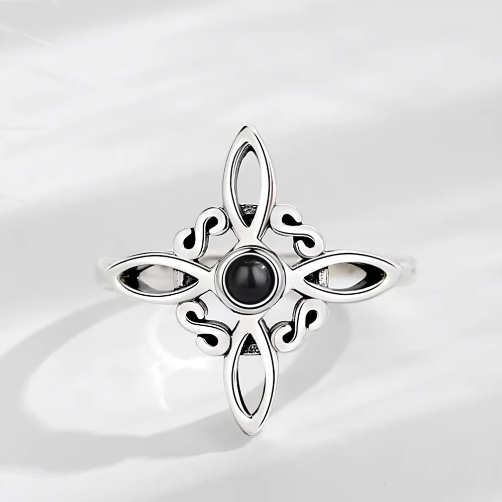 925シルバーメッキ 魔女ノットリング レディース オブシディアン ケルト トリニティノットリング ペイガン ウィッカ クロス ジュエリー 新年ギフト