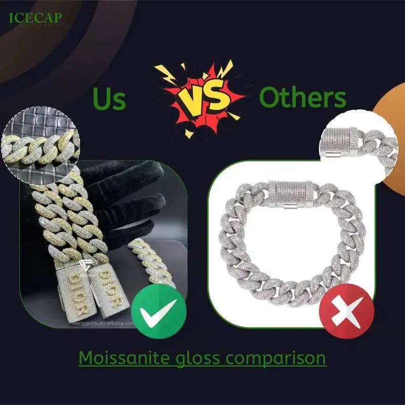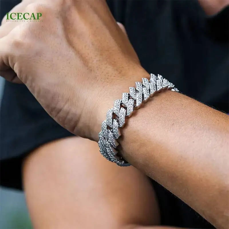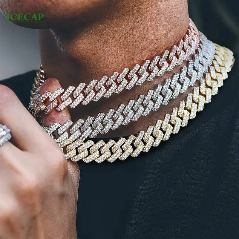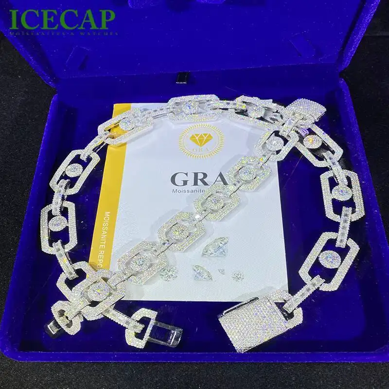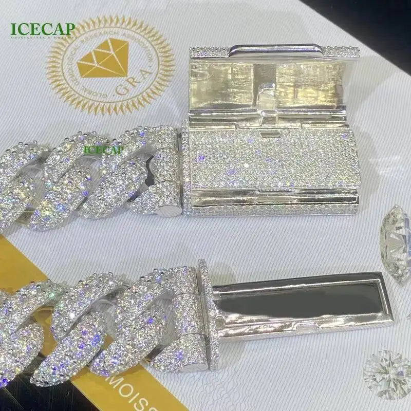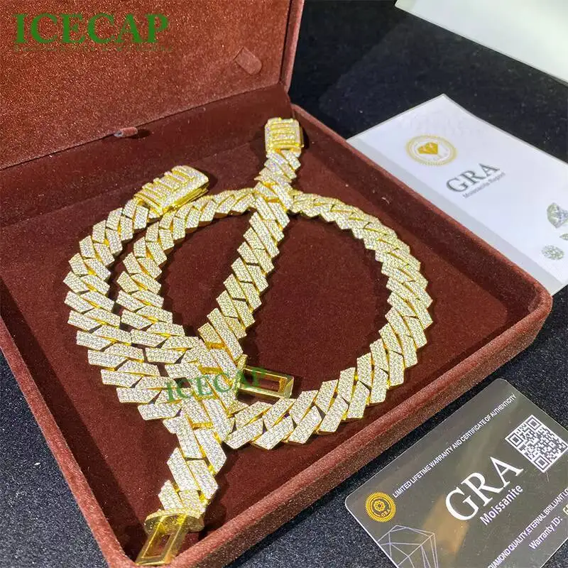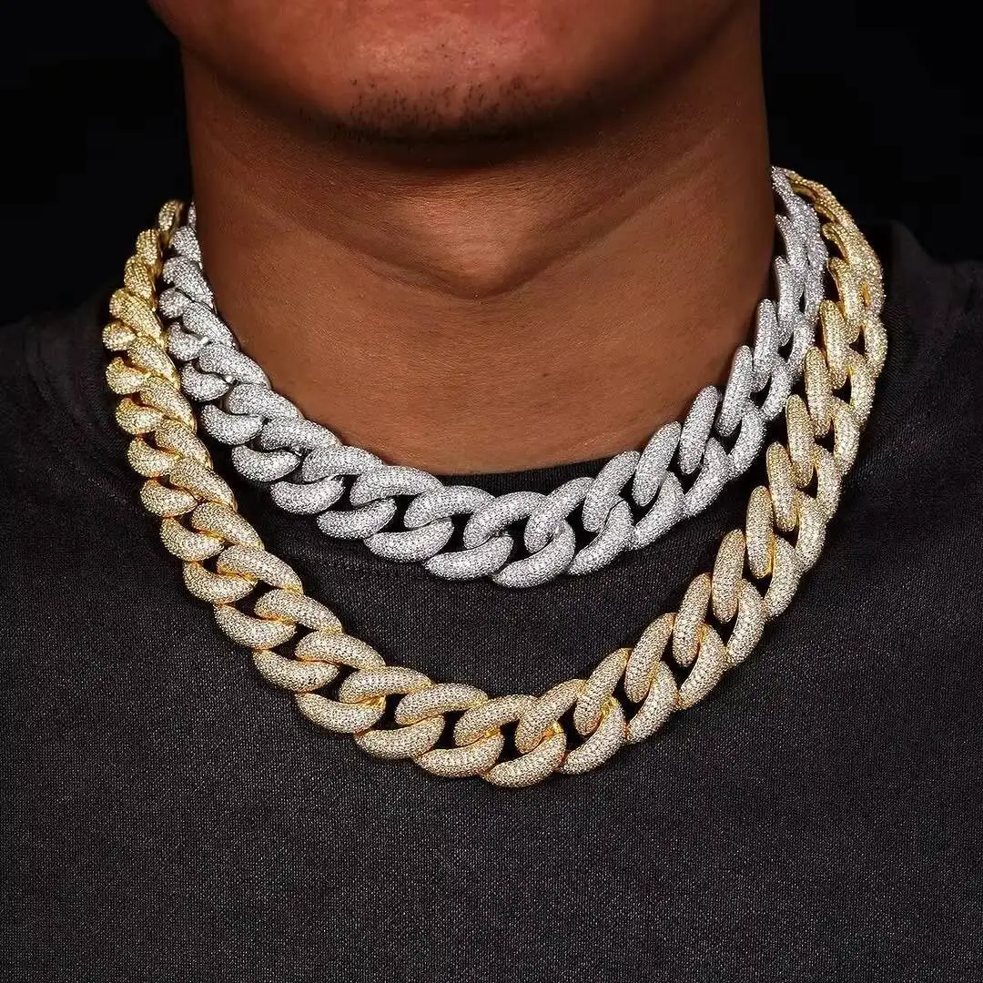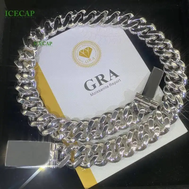925スターリングシルバー 20mm アイスアウト キューバンリンクチェーン ヒップホップ メンズ アイスアウト キューバンリンクチェーン フルダイヤモンド モアッサナイト ネックレスチェーン