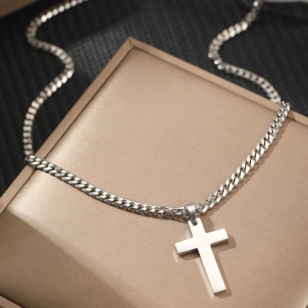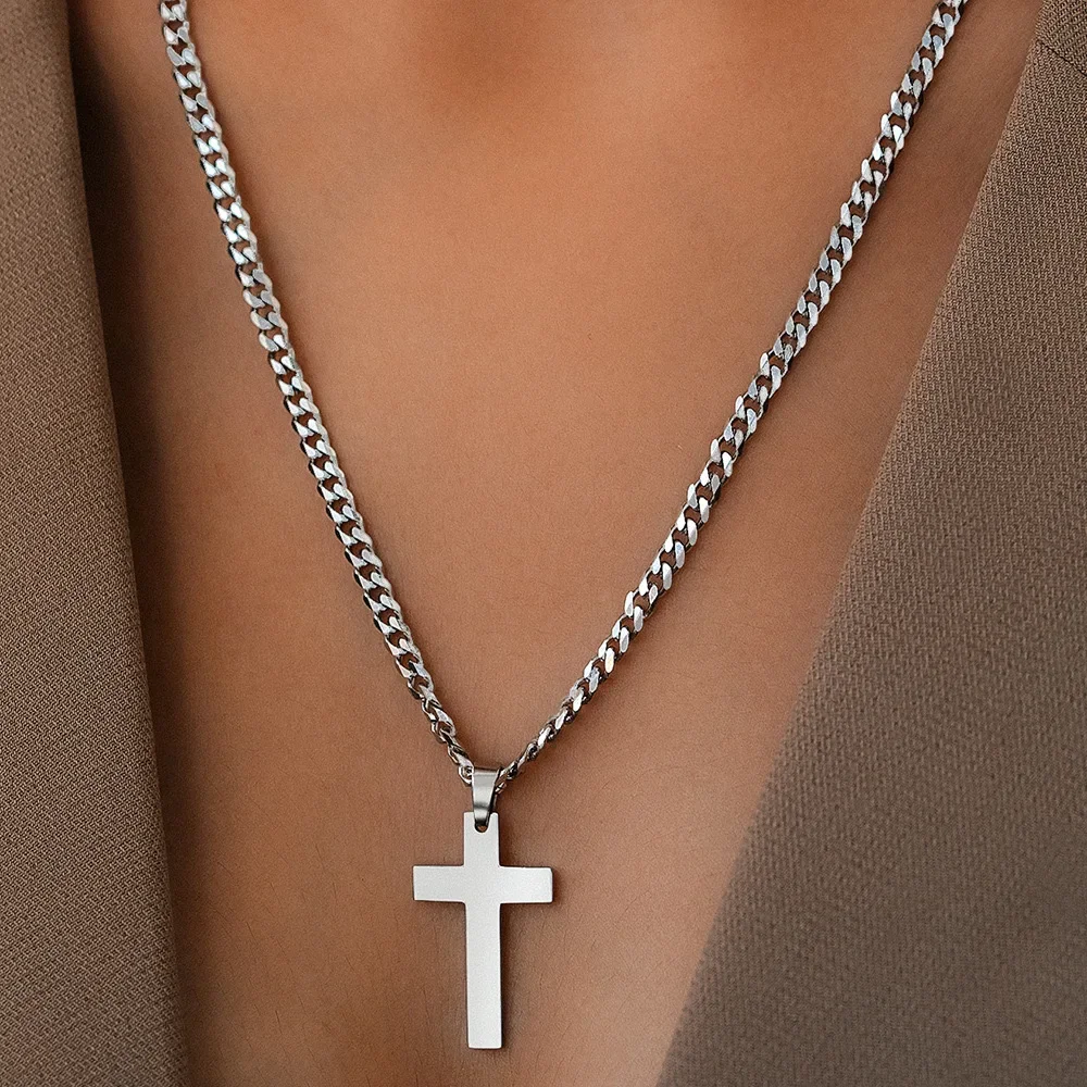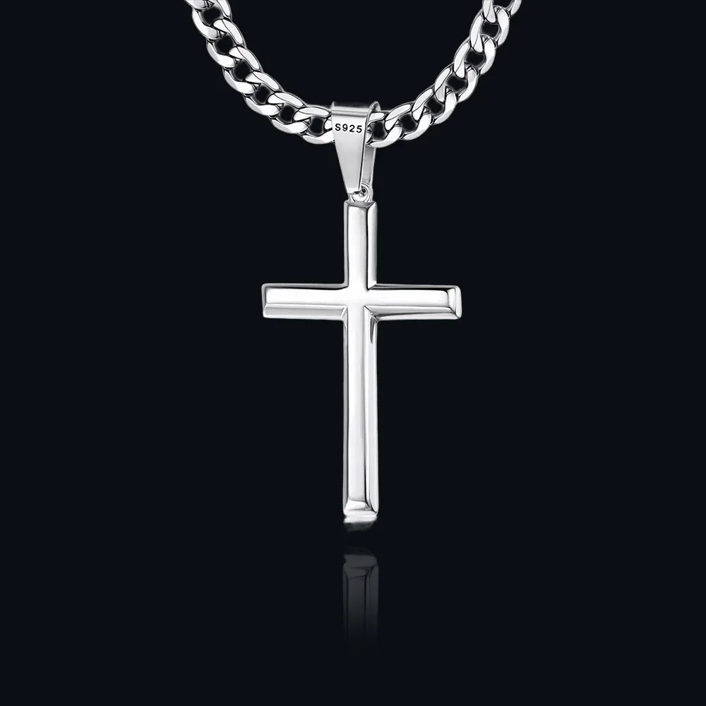 925スターリングシルバークロスネックレス メンズ レディース 5mm ステンレススチール 耐久性のあるキューバ十字架ペンダントネックレス ジュエリー