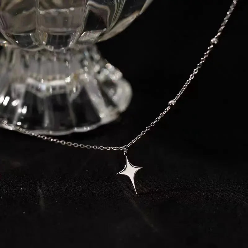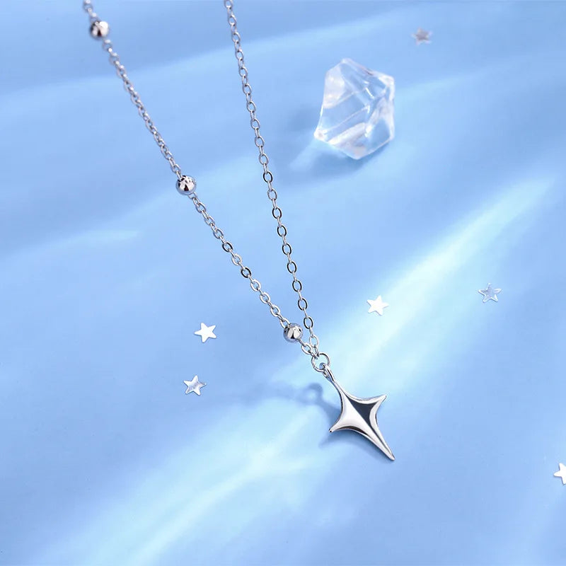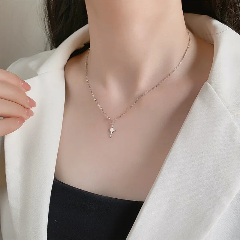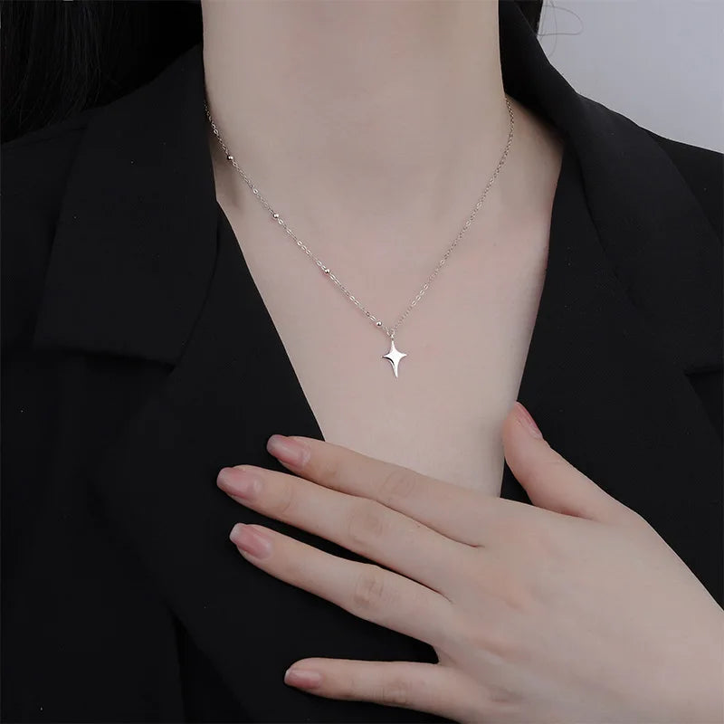 925スターリングシルバークロスネックレススターアシンメトリーパーソナライズカラーチェーン友達への誕生日プレゼント学生ジュエリー