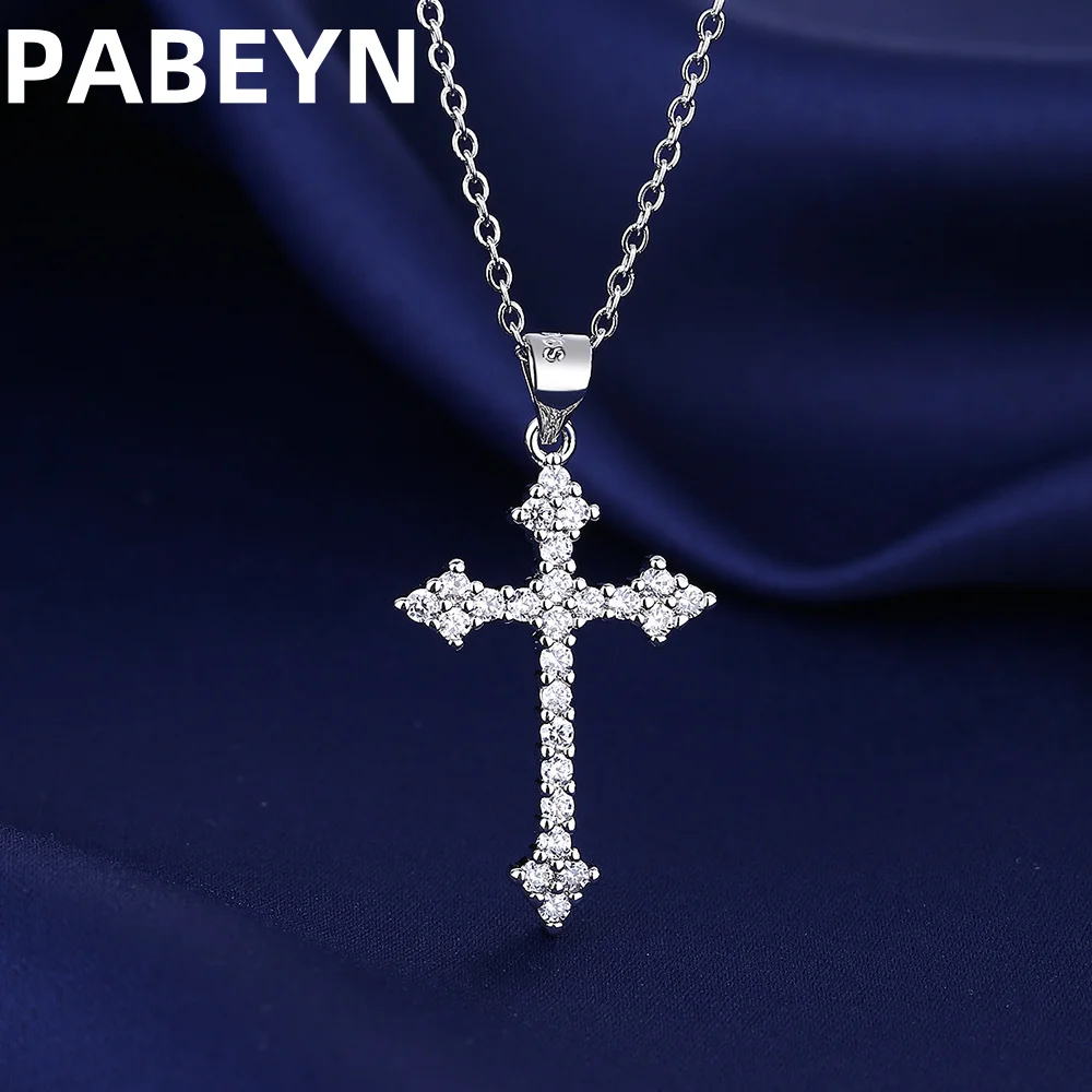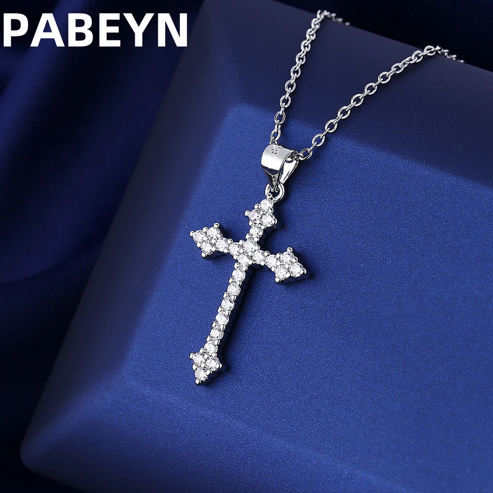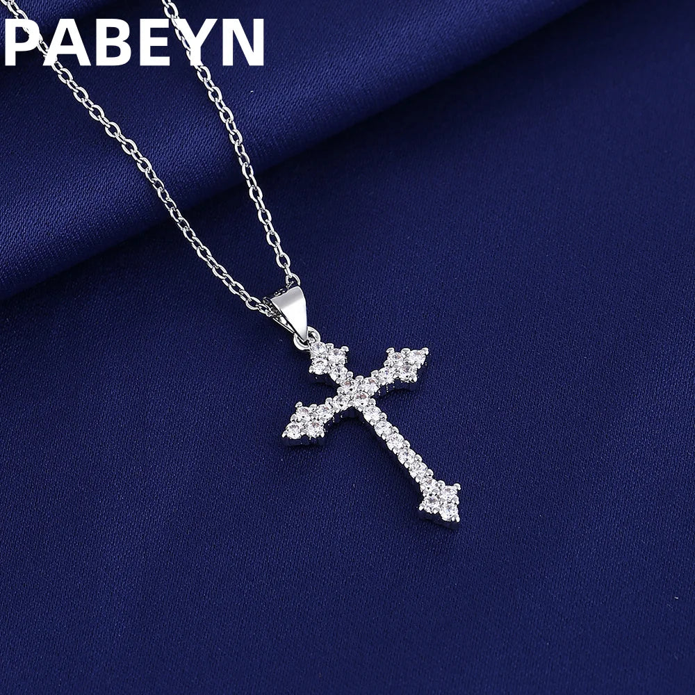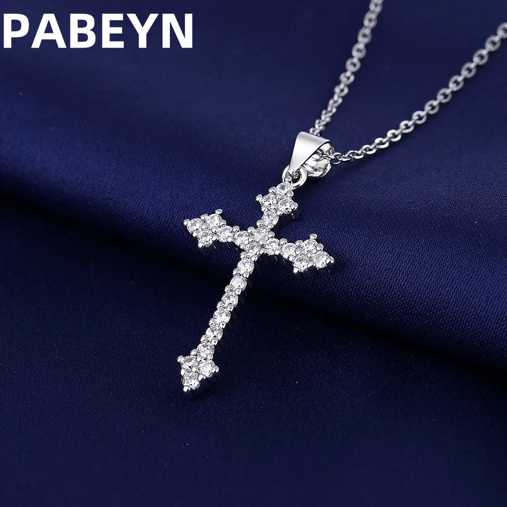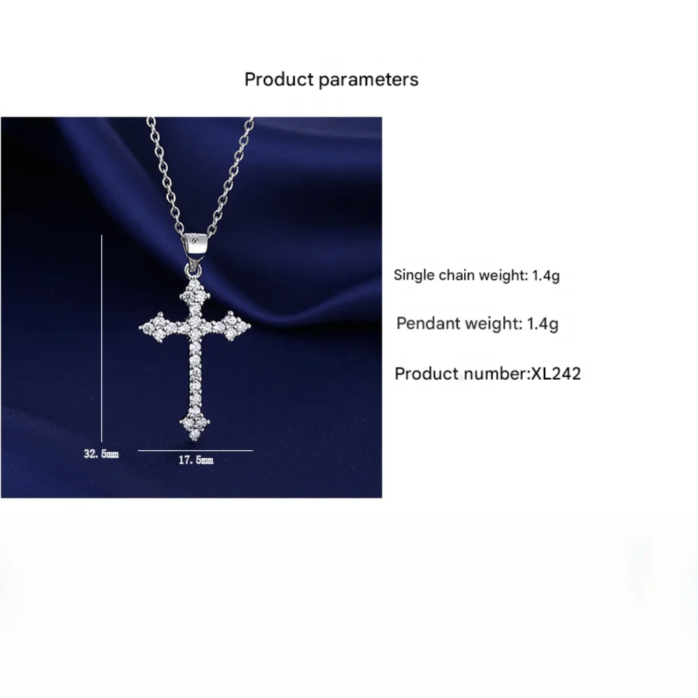 925スターリングシルバークロスペンダントネックレス、AAAAAジルコン象嵌、ユニセックスファッションヒップホップスターリングシルバーチェーンジュエリー