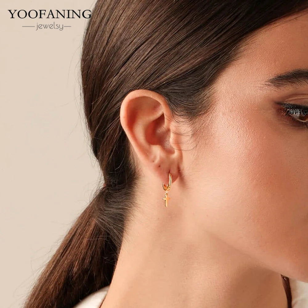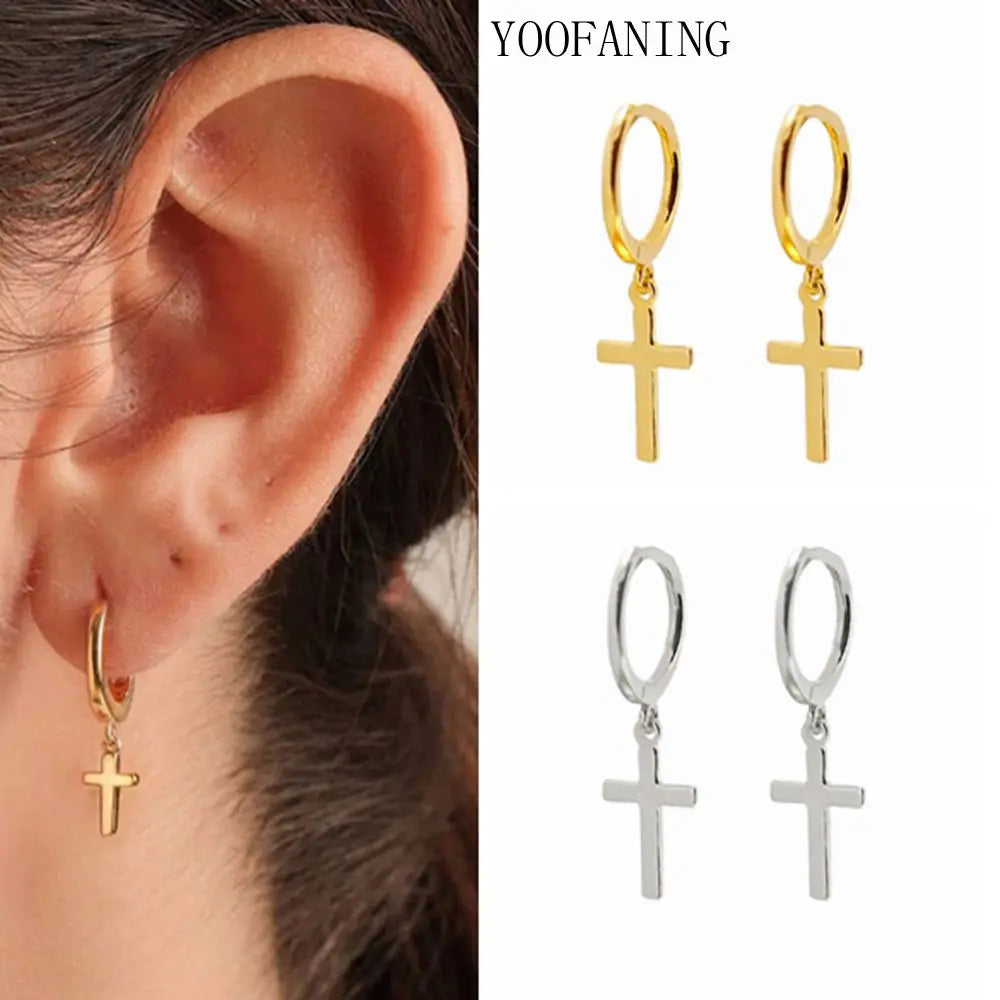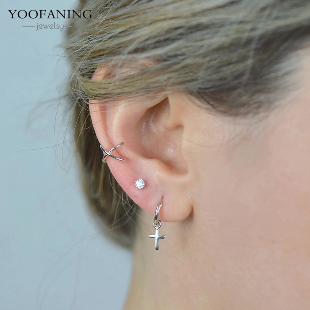 925スターリングシルバーイヤーニードルハイエンドミニマリストゴールドシルバーフープイヤリングクロスシェイプイヤリングメンズ/レディースジュエリーパティ