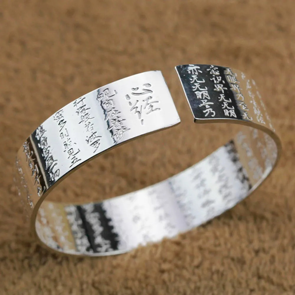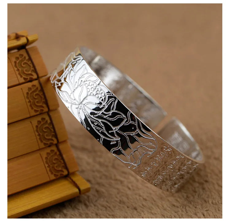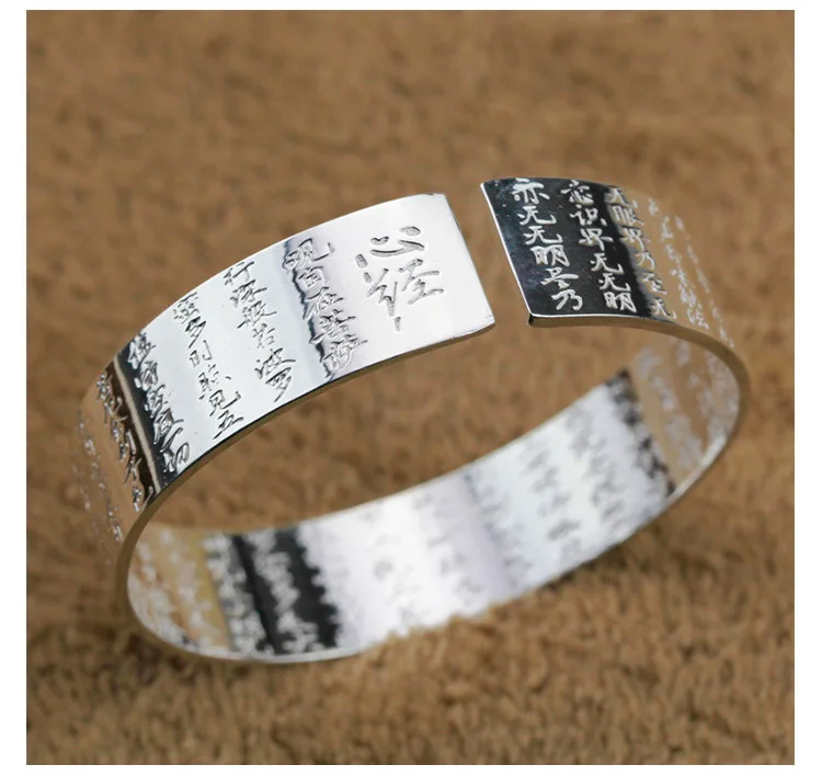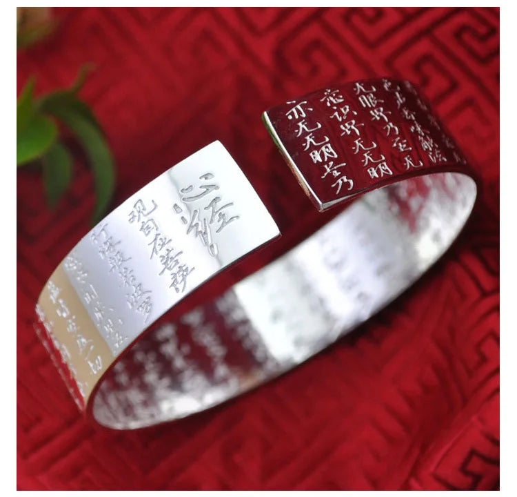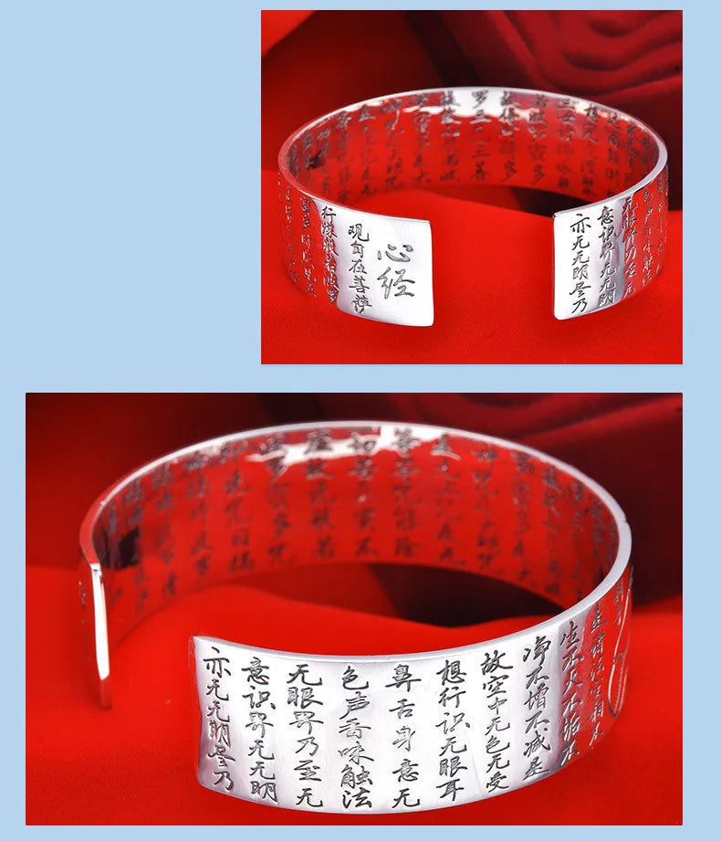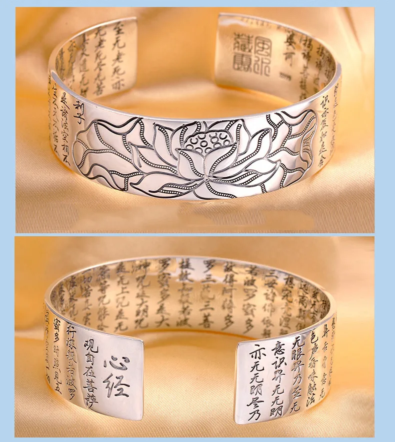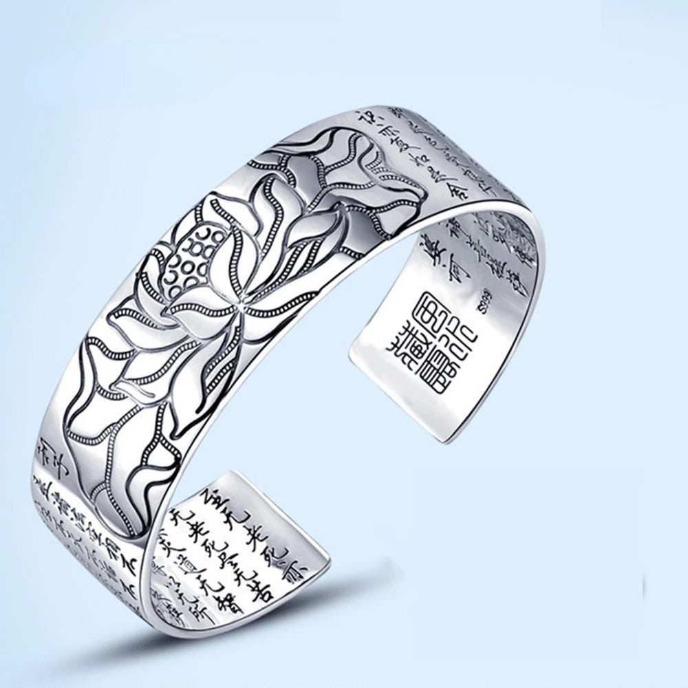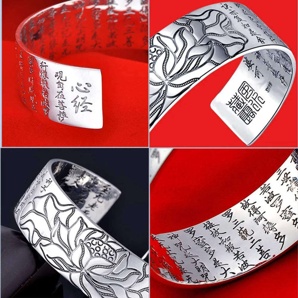 925スターリングシルバー 新作 レディース メンズ ファッションジュエリー レトロ 蓮の彫刻 仏教経典 祝福ブレスレット