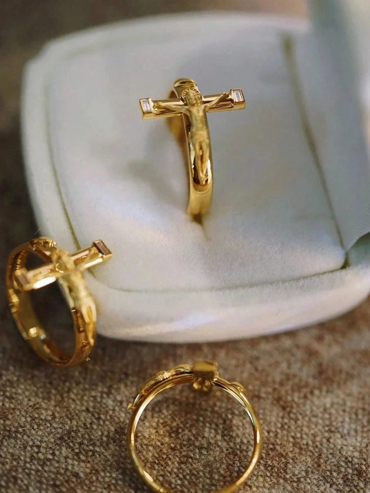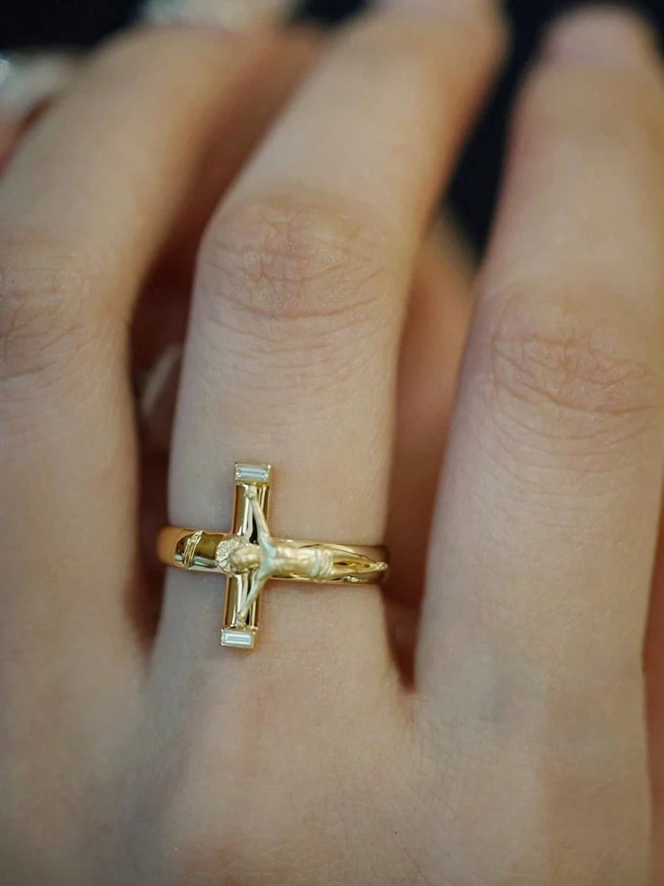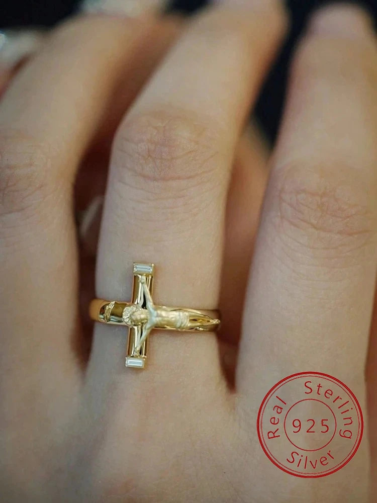 925スターリングシルバーのパーソナライズされたイエス十字架の高度なリング、女性用ウェディングパーティー、日常生活のための高級高品質ファインジュエリー