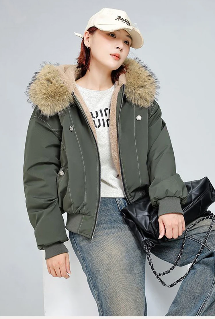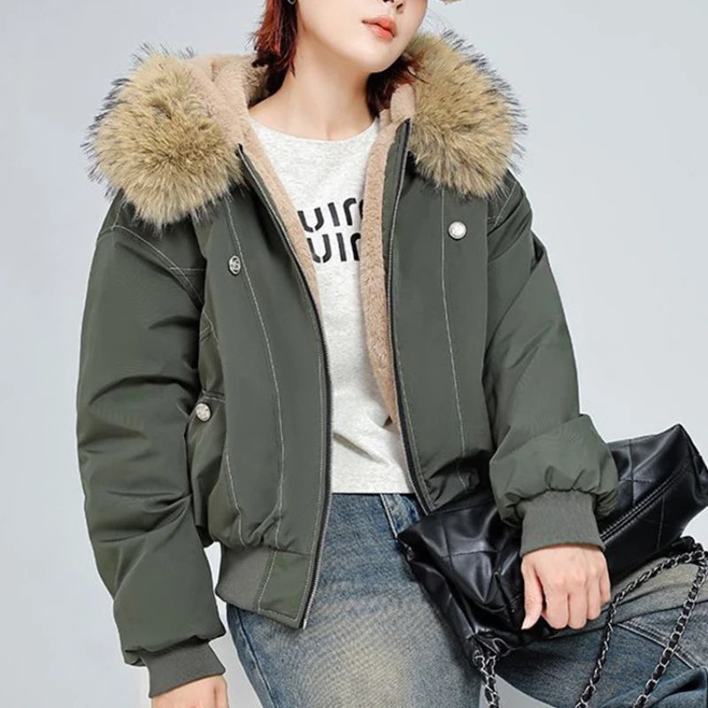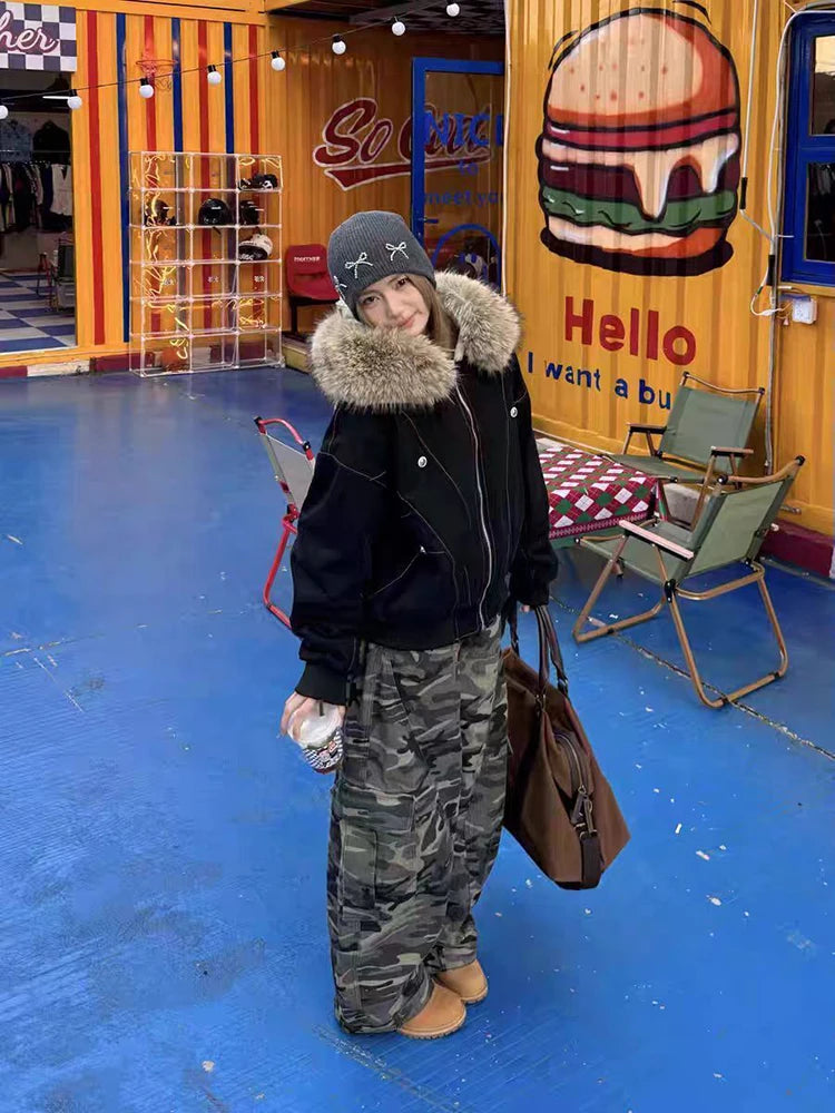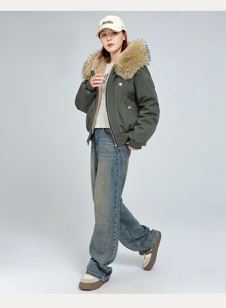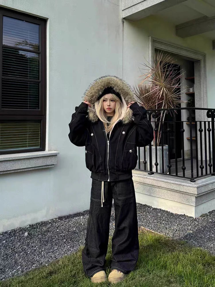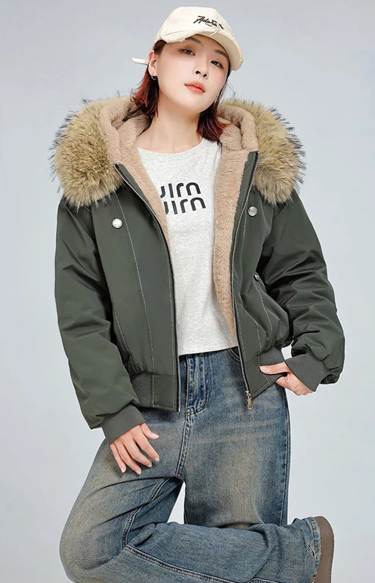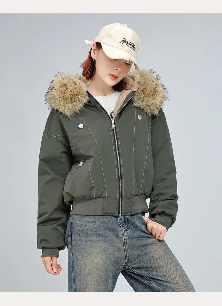 アメリカンスタイル レトロ ファーカラー イミテーションミンクファー フード付き コットンパッド入り ジャケット レディース&メンズ ゴシック ヒップホップ カジュアル ジッパー パーカー