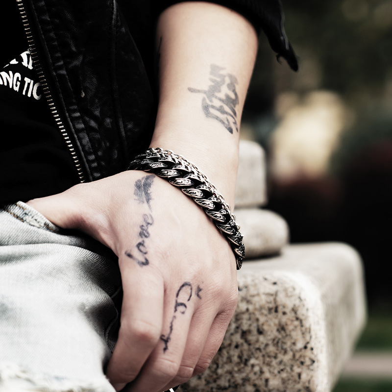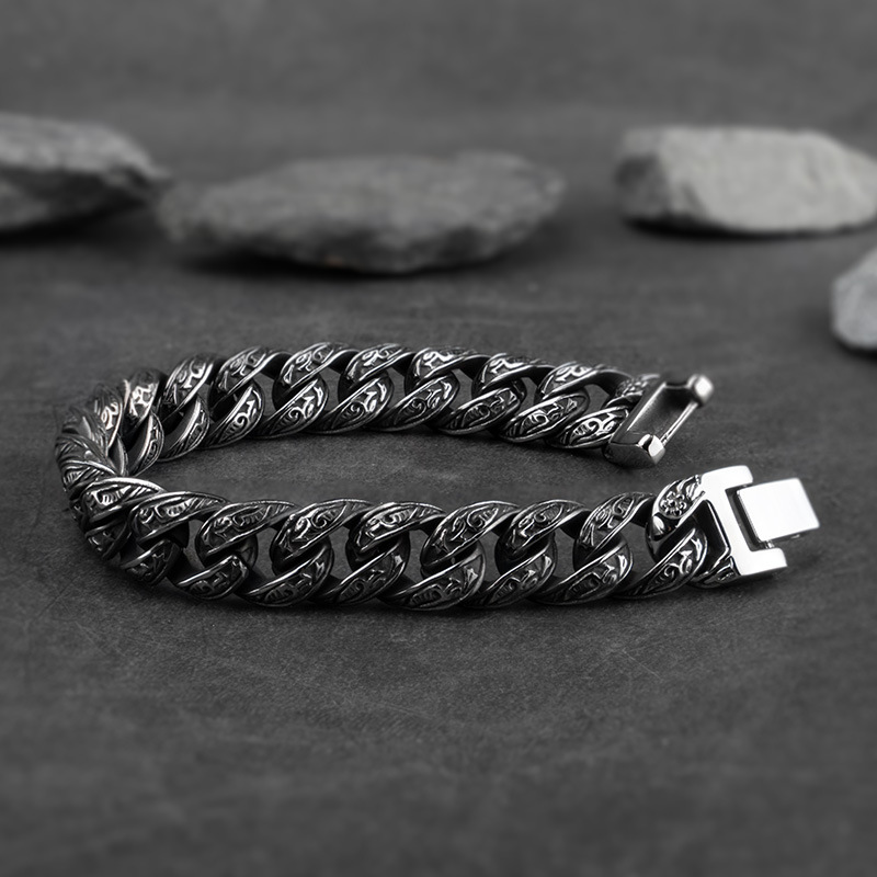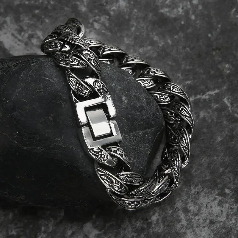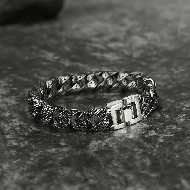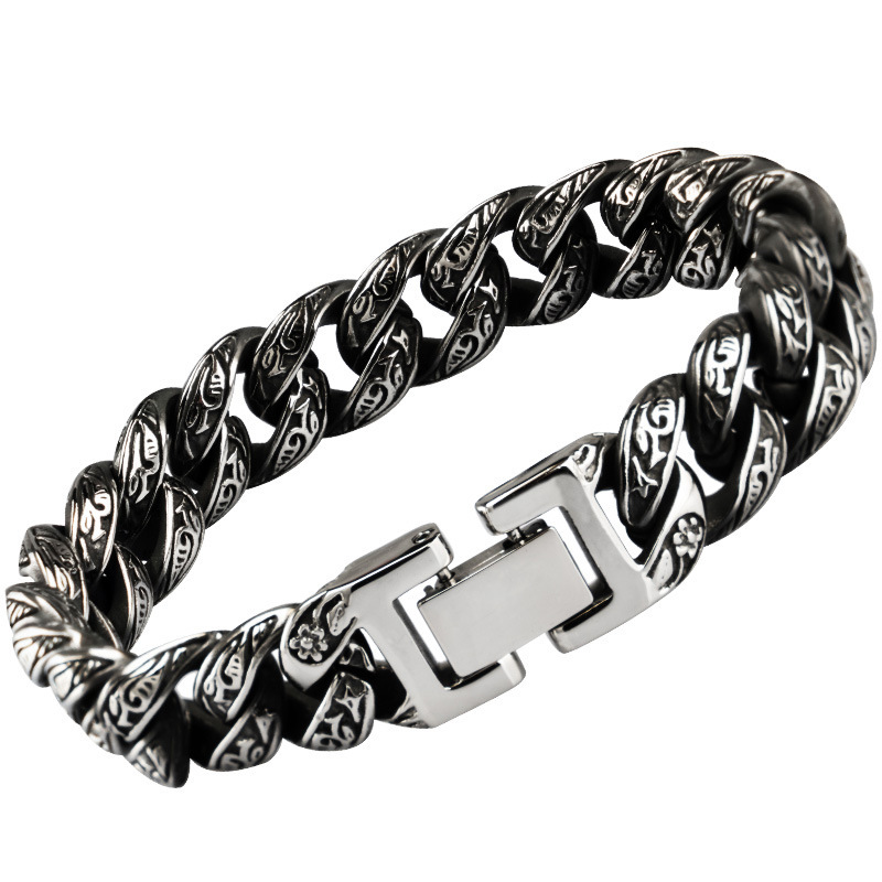 アンティークシルバー彫刻ブレスレット メンズ パンク ヒップホップ ロック パーティー ジュエリー メタルリンクブレスレット ギフト