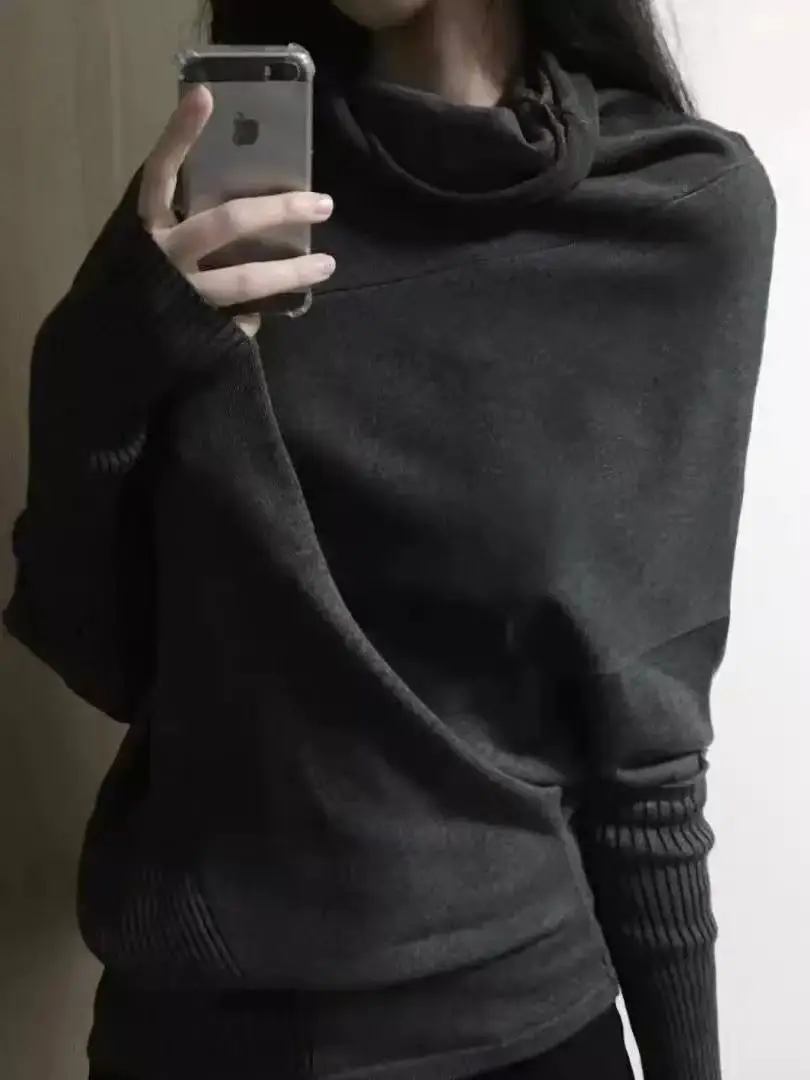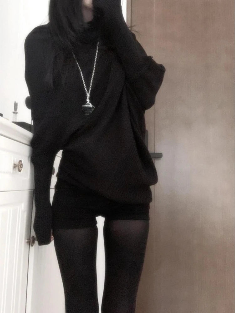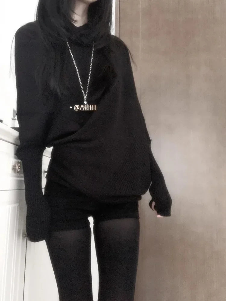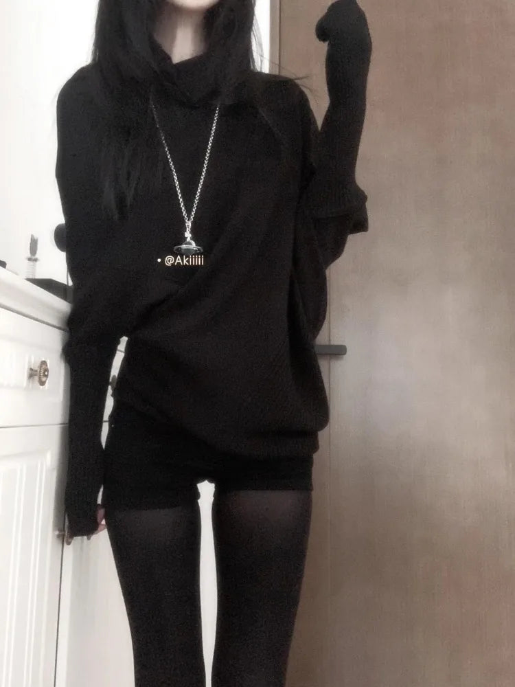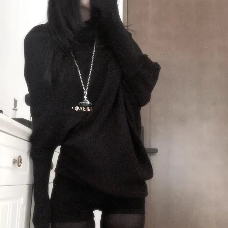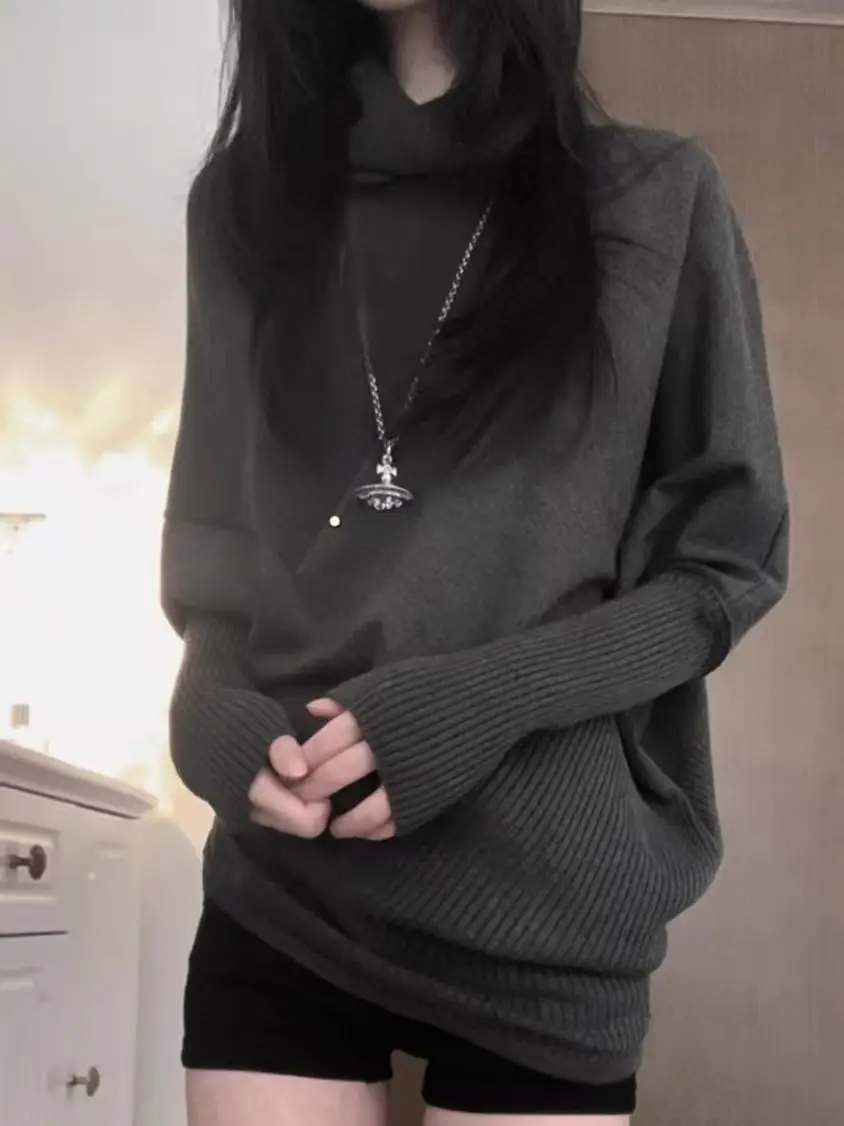 秋冬 レイジースタイル ニットシャツ トップス サブカルチャー ルーズニットTシャツ Y2K カジュアル アメリカンセーター レディース ジャンパー ニットウェア