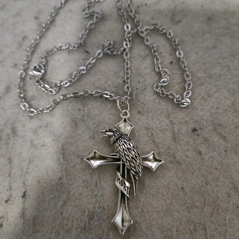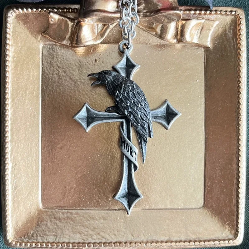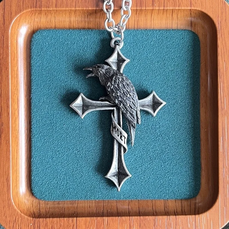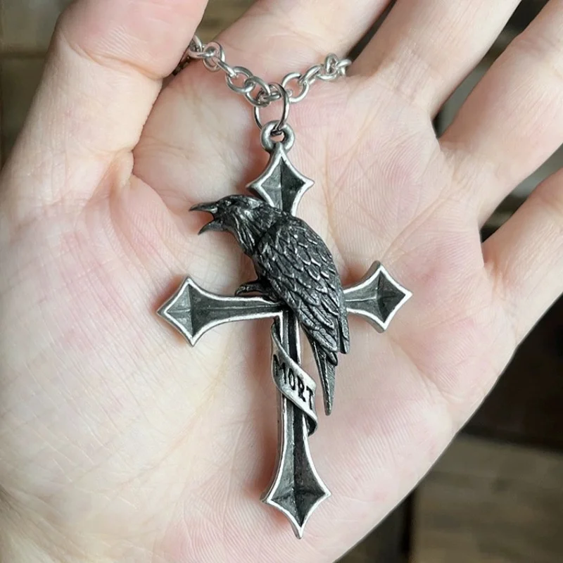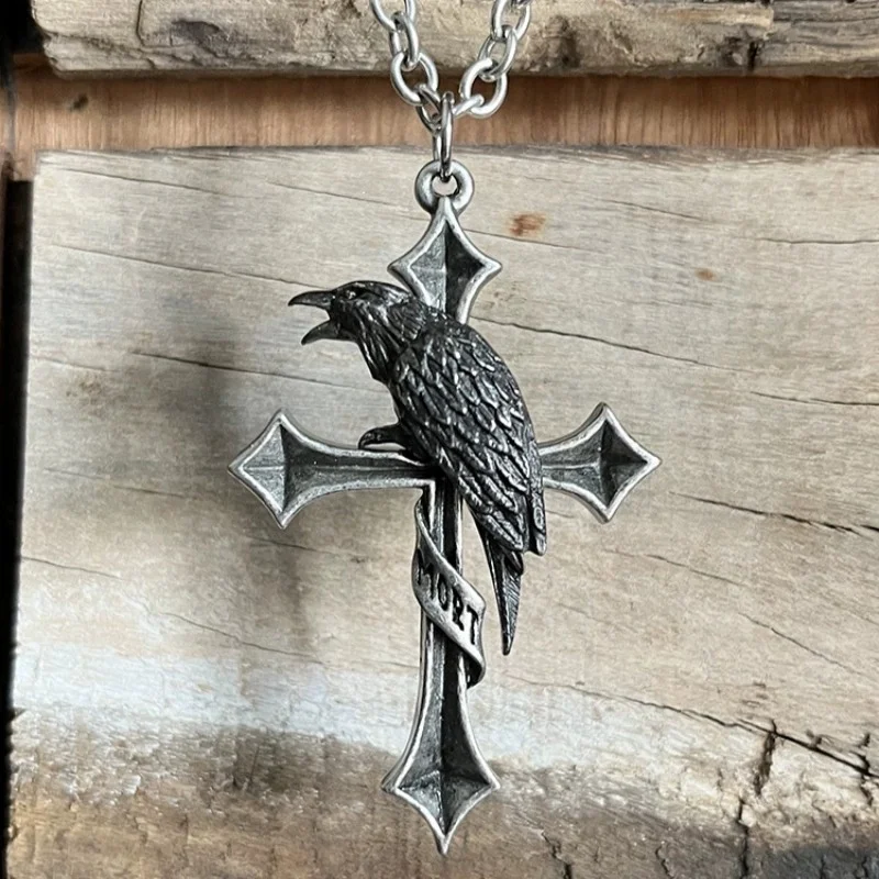 Buyee 925スターリングシルバー男性用ビッグペンダントチェーンユニークパンクゴシッククロスクロウネックレスメンズファッションファインジュエリーチェーン