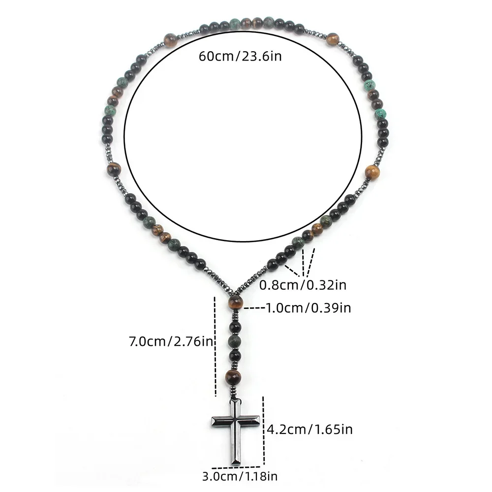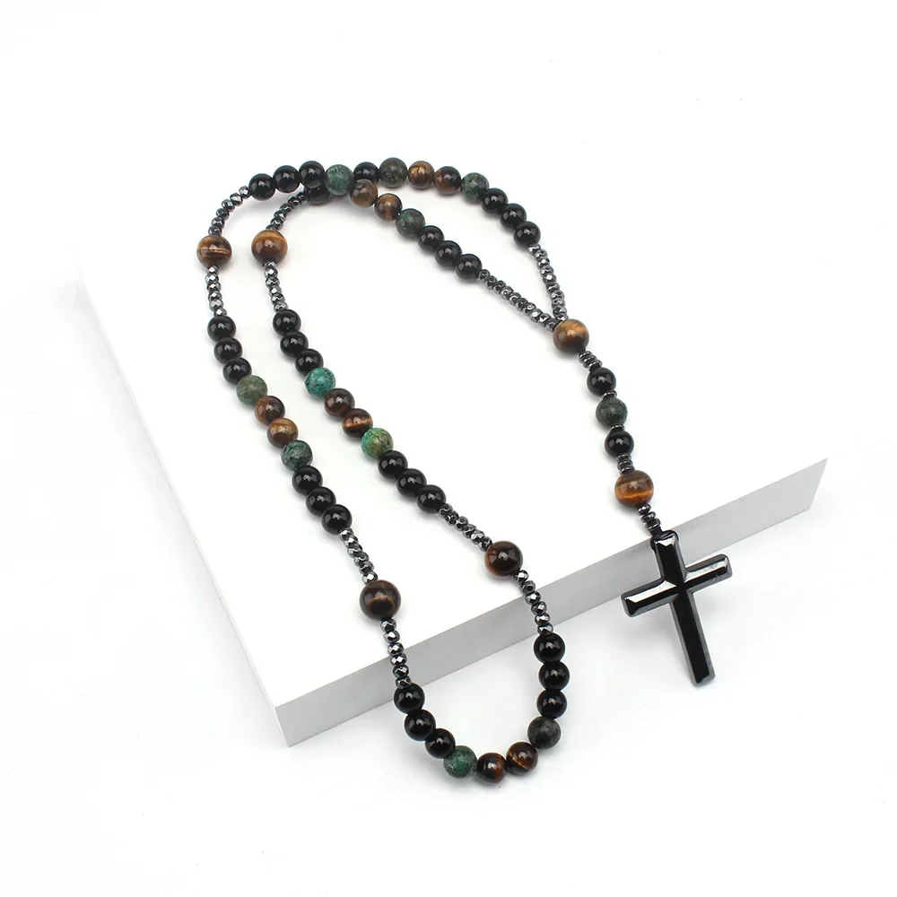 チャームレトロマルチカラー天然石クロスペンダントネックレスメンズパンクエンファッションヒップホップロックカラージュエリーアクセサリー
