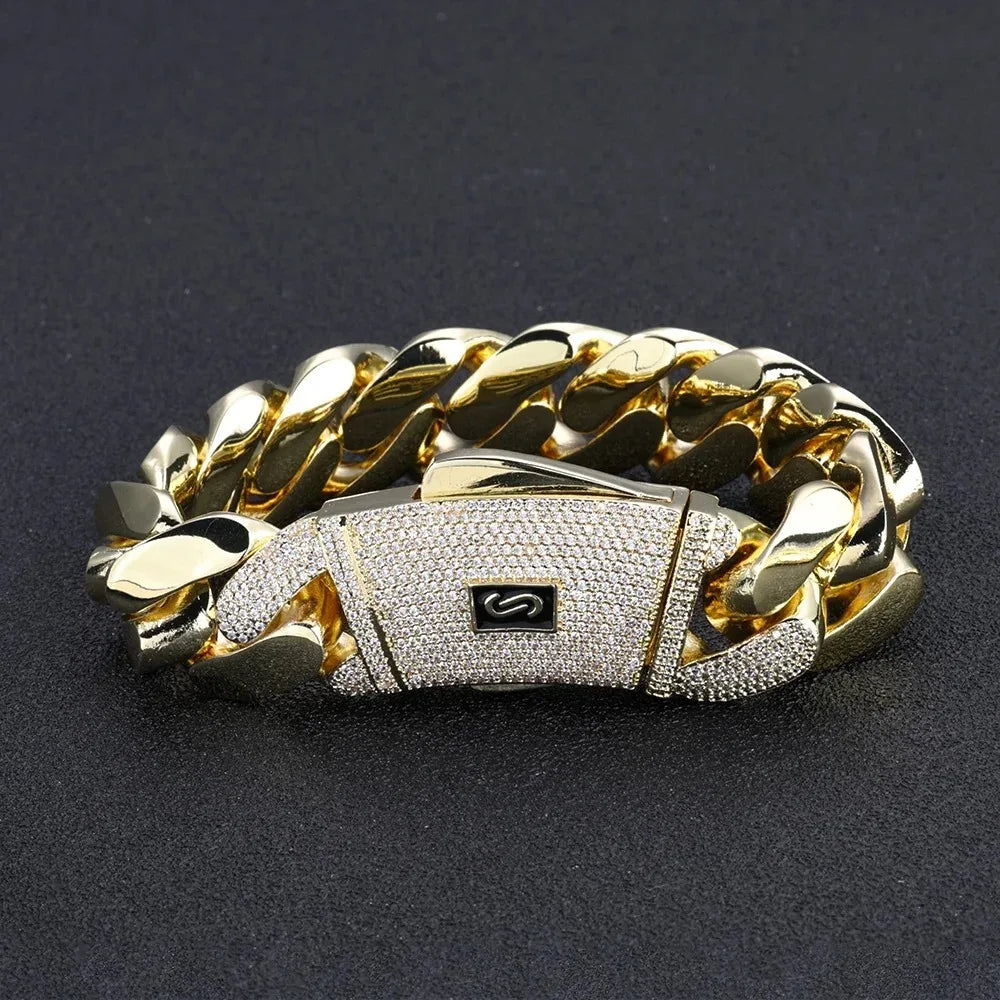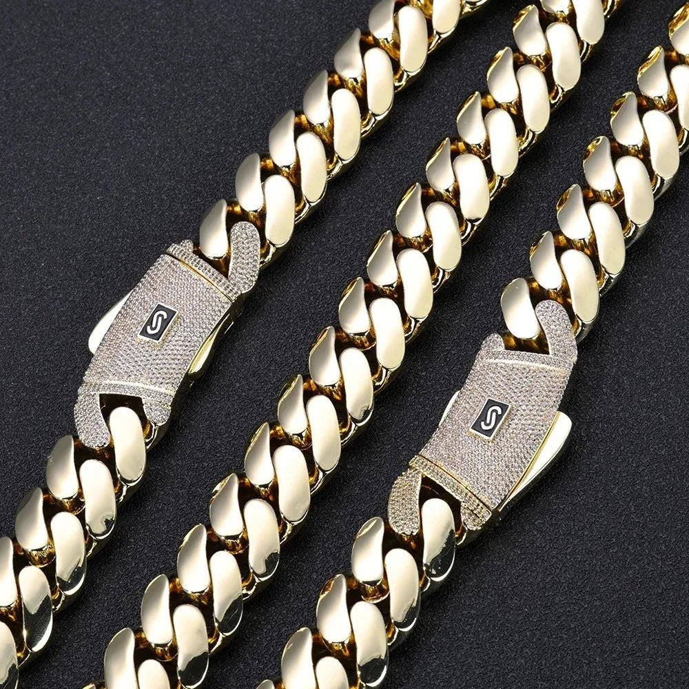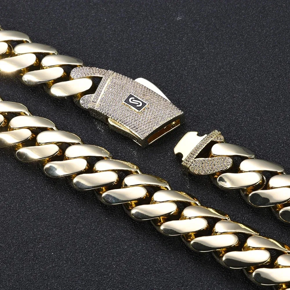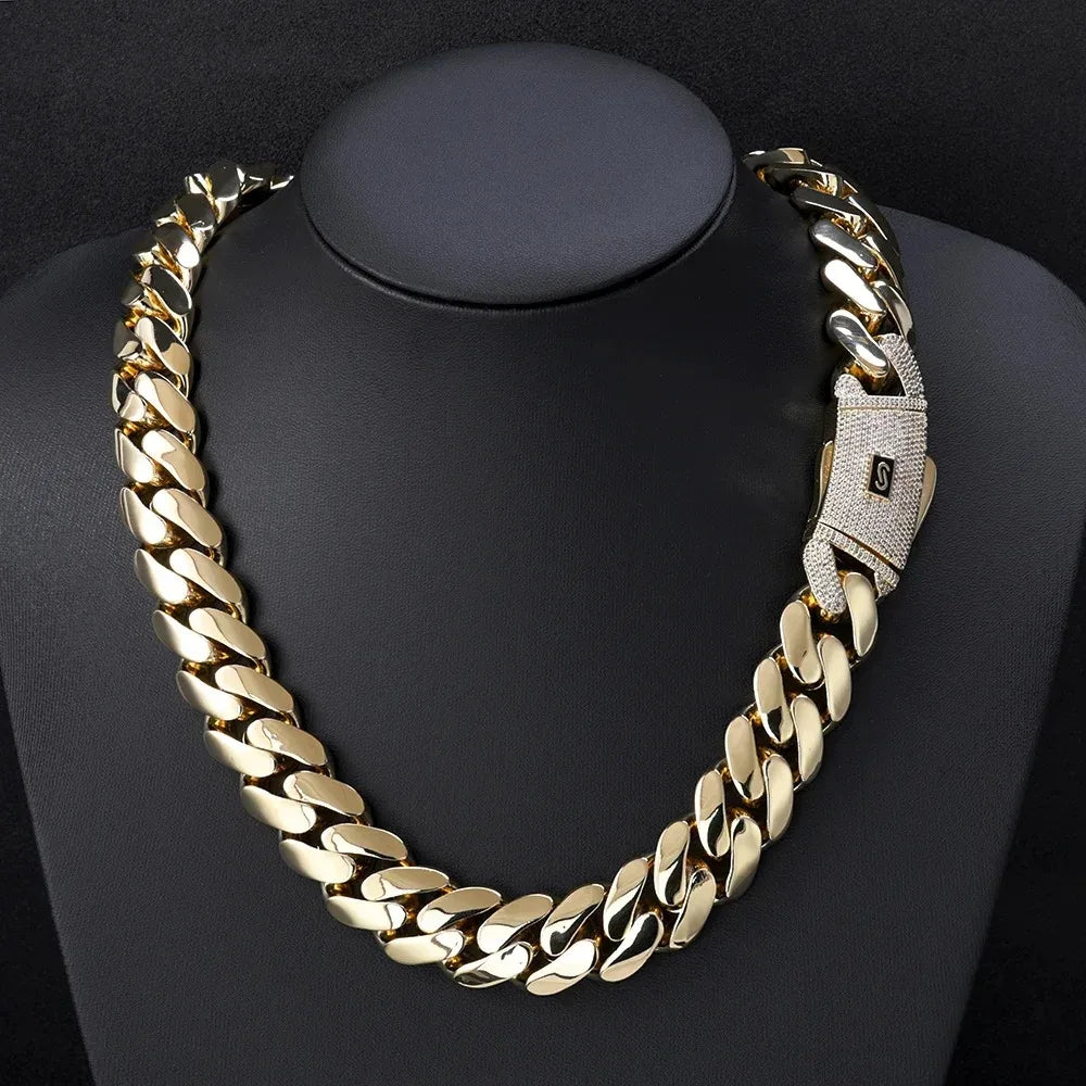 チャンキーキューバンリンクチェーンネックレス 18Kゴールドメッキ - 20mm マイアミヒップホップチョーカー カスタムジュエリー メンズ レディース