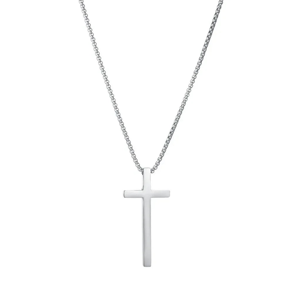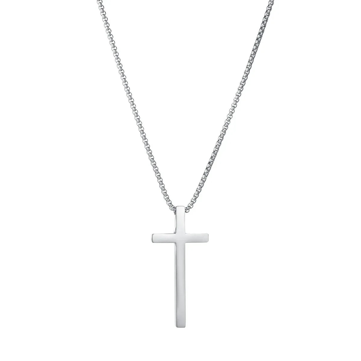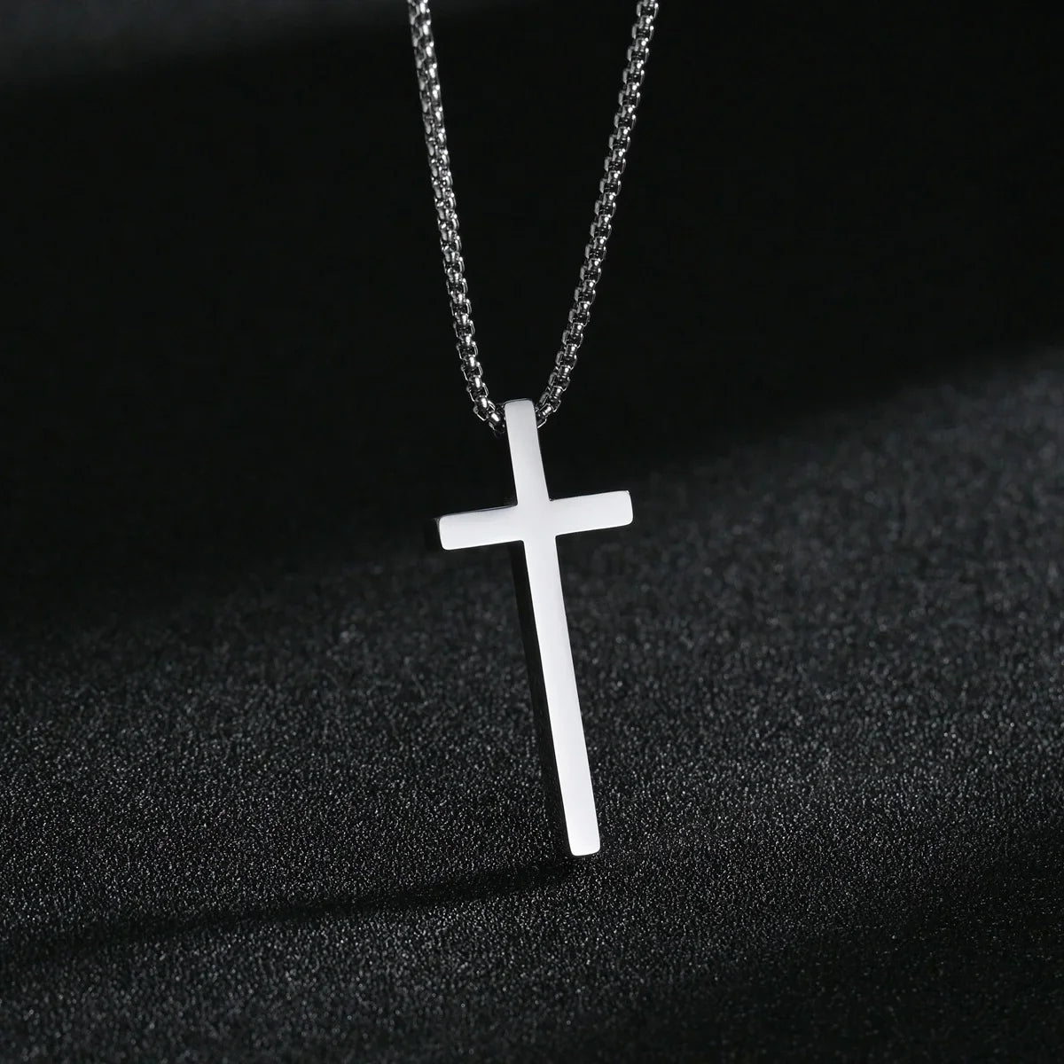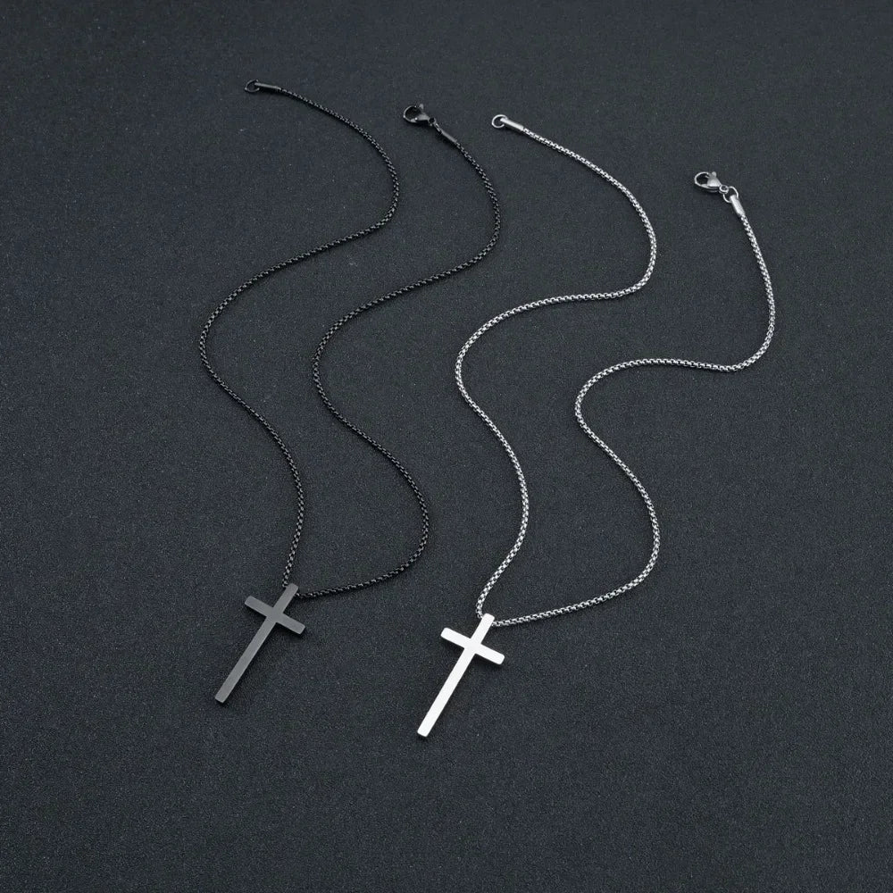 クラシックでシンプルなロングクロスペンダントネックレス。メンズ。個性的なトレンドのブラックステンレススチール製。ヒップホップロックジュエリー。色褪せにくいギフト。