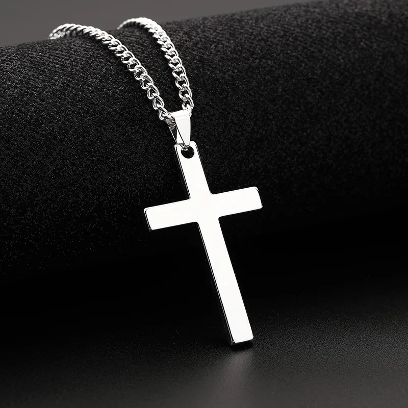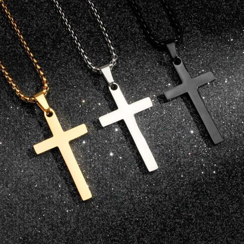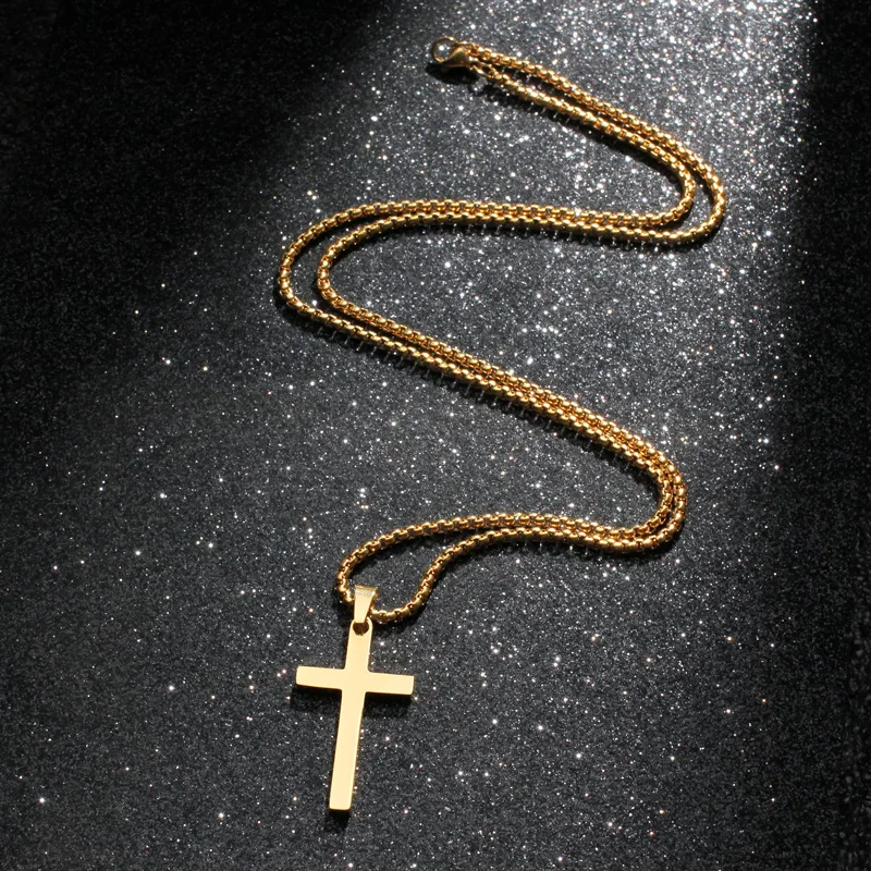 メンズ用クロスネックレス、ゴールドブラックシルバーカラーステンレススチールペンダント、シンプルなジュエリーギフト、メンズボーイズ用クロスチェーンネックレス