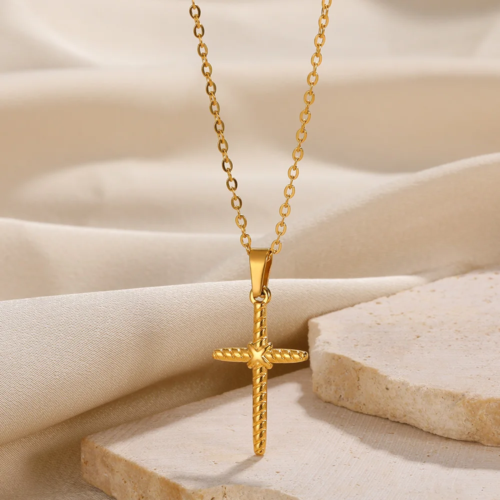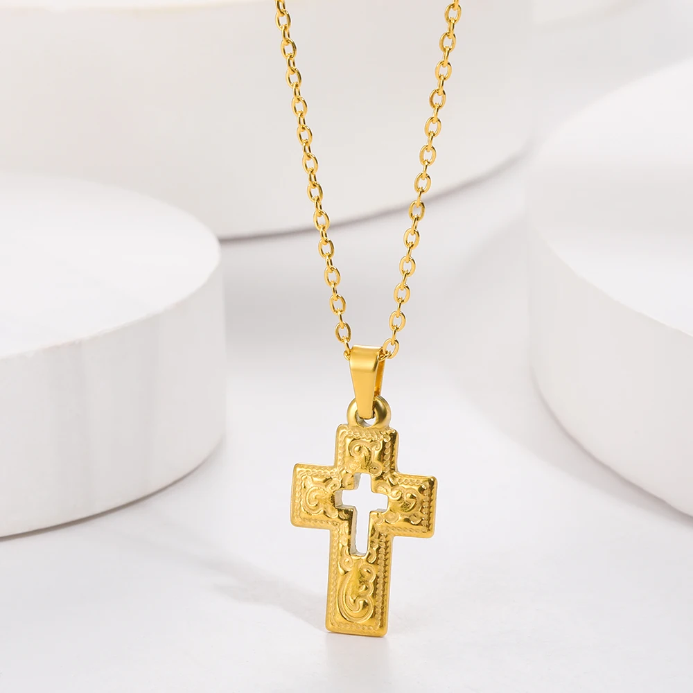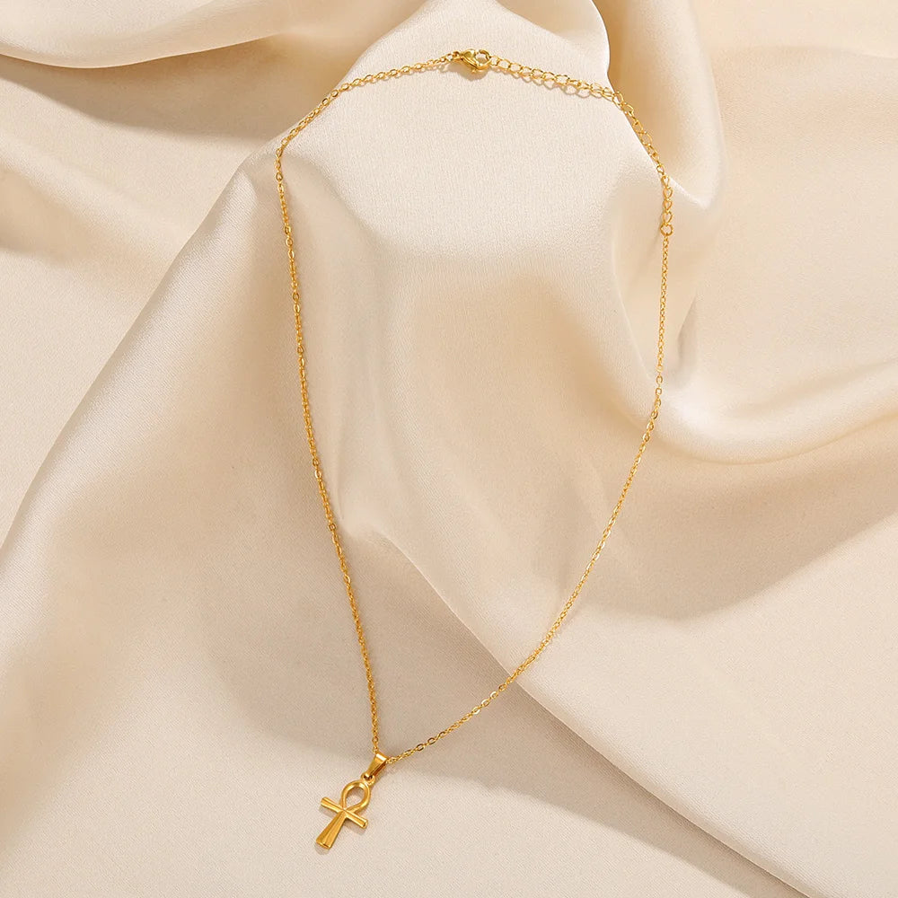 女性用クロスネックレス クラシッククロスカラー ゴールドカラー エジプトナイルアンクチョーカー ステンレススチールチェーン 美しいジュエリーギフト