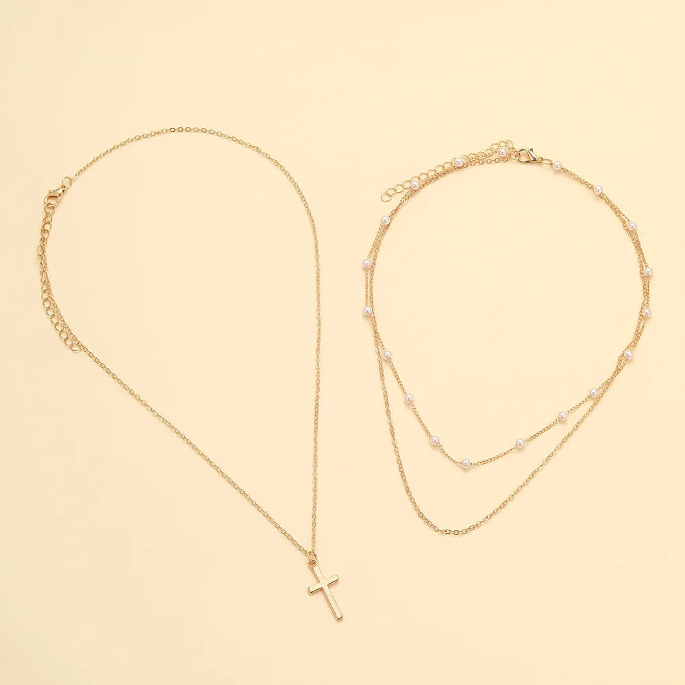 女性用クロスネックレス ゴールドメッキ マルチレイヤー スモールクロスペンダントチョーカー トレンディなチャームチェーンネックレス ジュエリー 宗教的なギフト