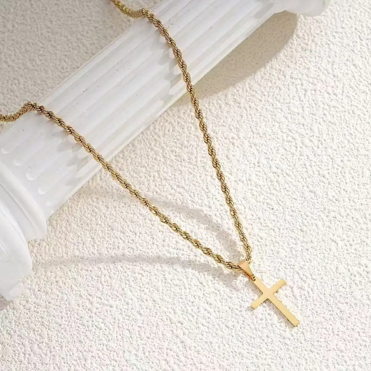 クロスペンダントネックレス、ユニセックスのミニマリストゴールドジュエリー、男性と女性の両方に適したカラーネックレス。