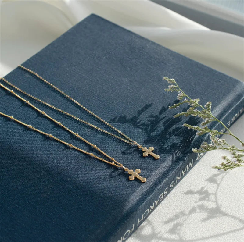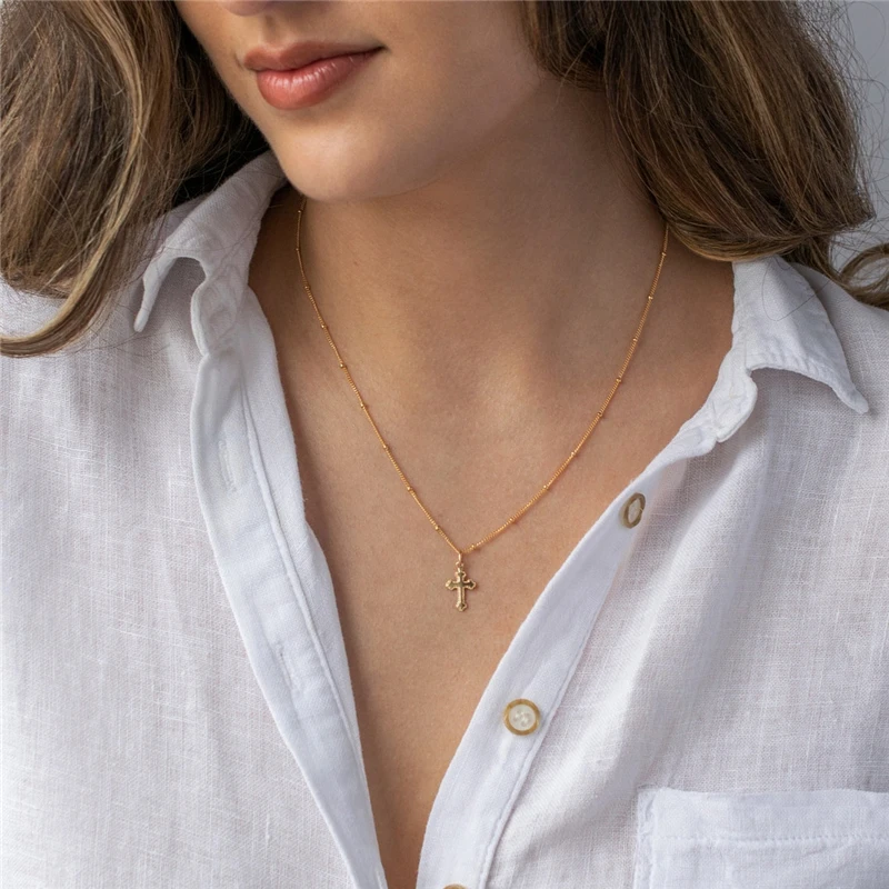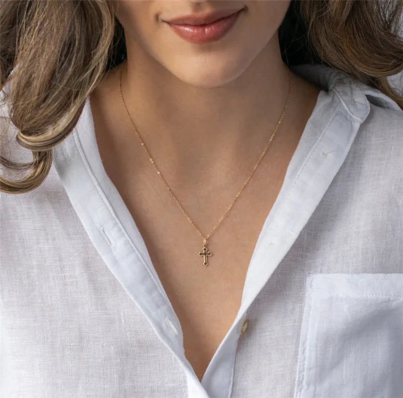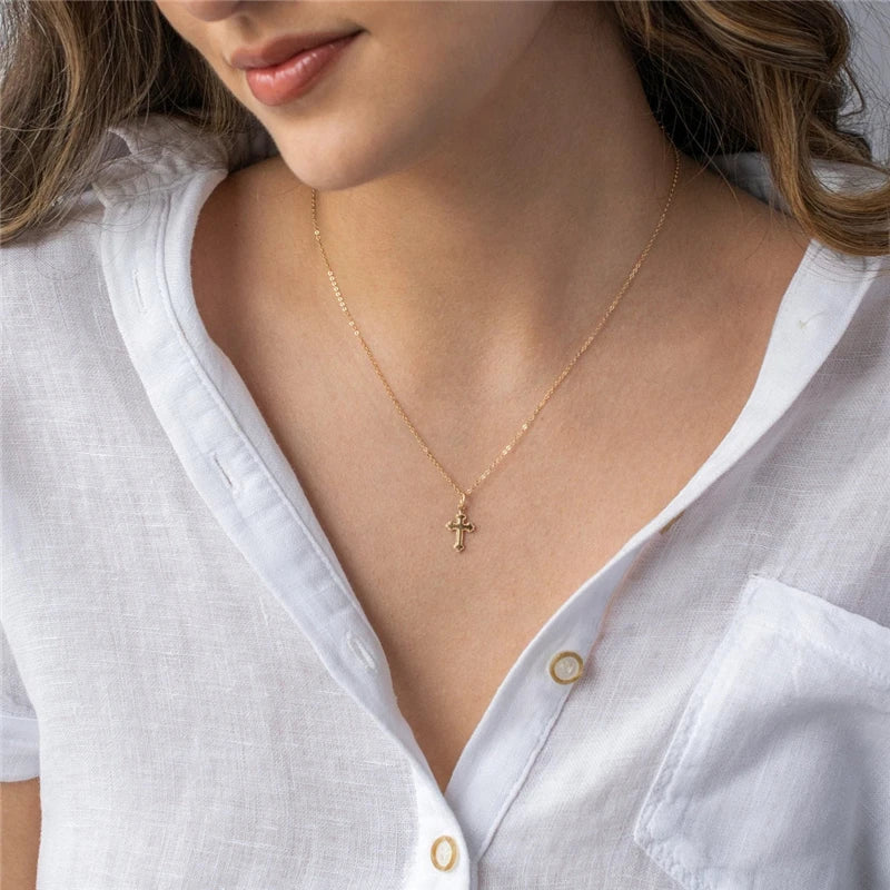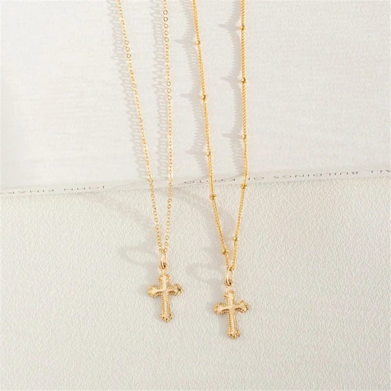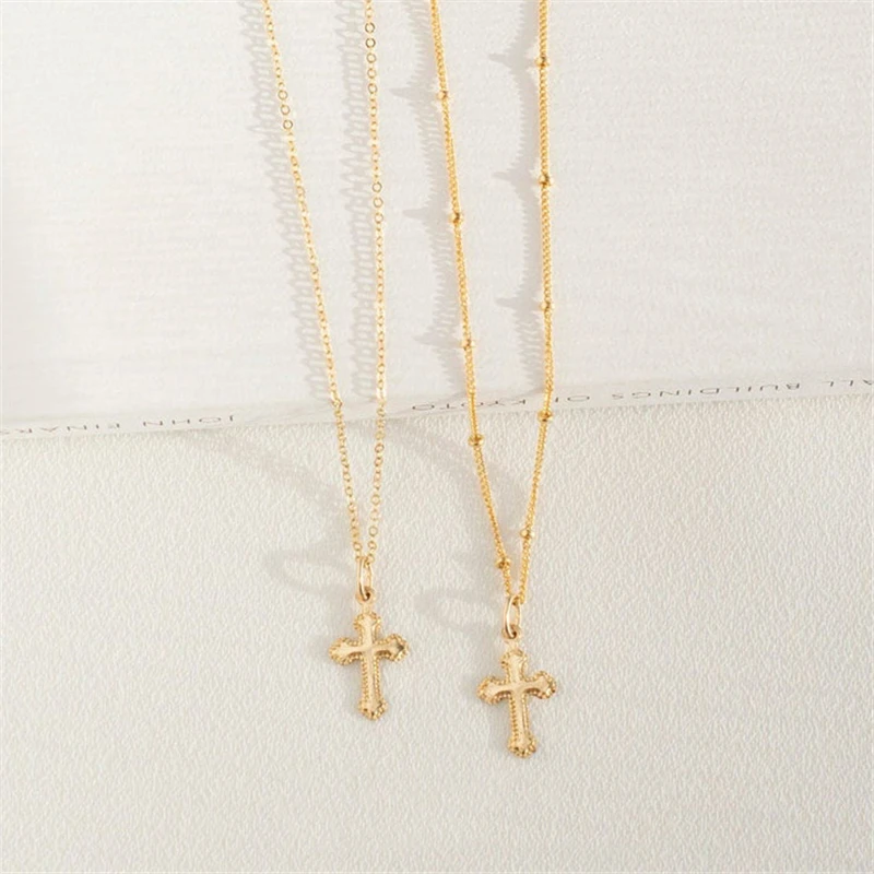 クロスペンダントネックレス 14Kゴールドフィルドクロスジュエリー ゴールドチョーカー ミニマリズムネックレス コリアーファムコリエボヘミアンレディースネックレス
