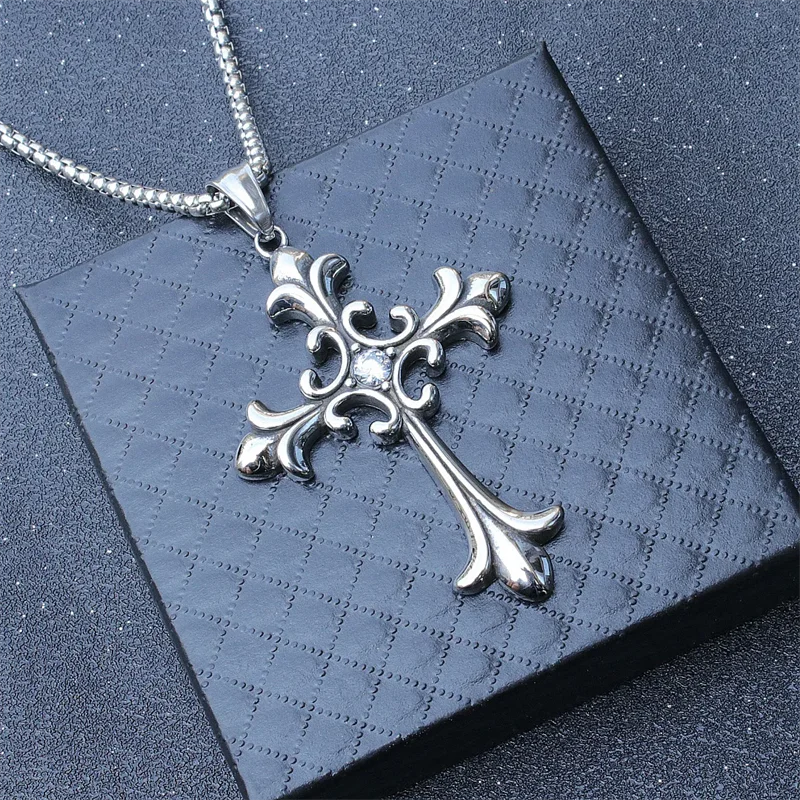 ヨーロッパとアメリカのファッションパーソナリティレトロゴシッククロスネックレス男性と女性ストリートヒップホップトレンドセッター多用途Pe