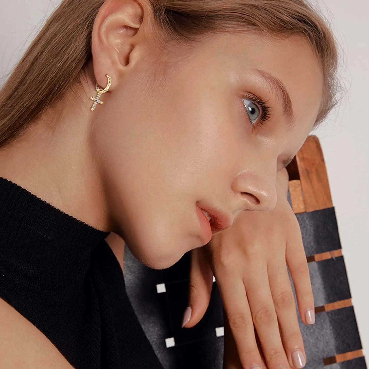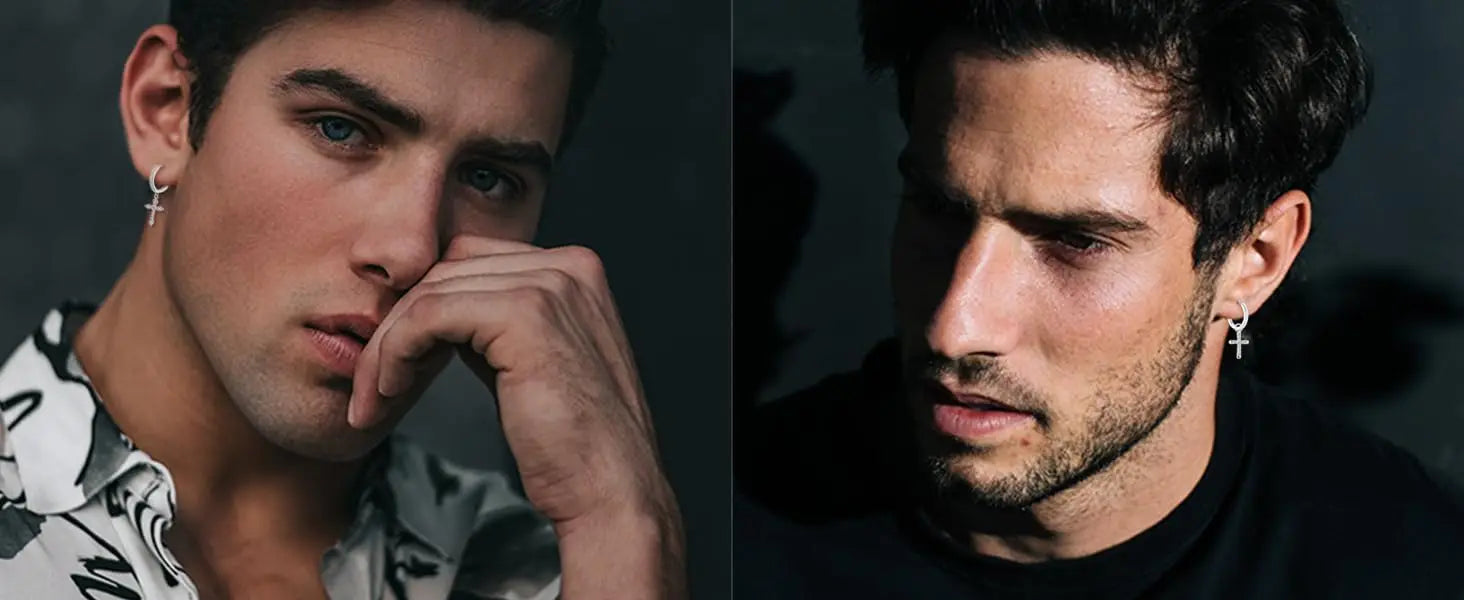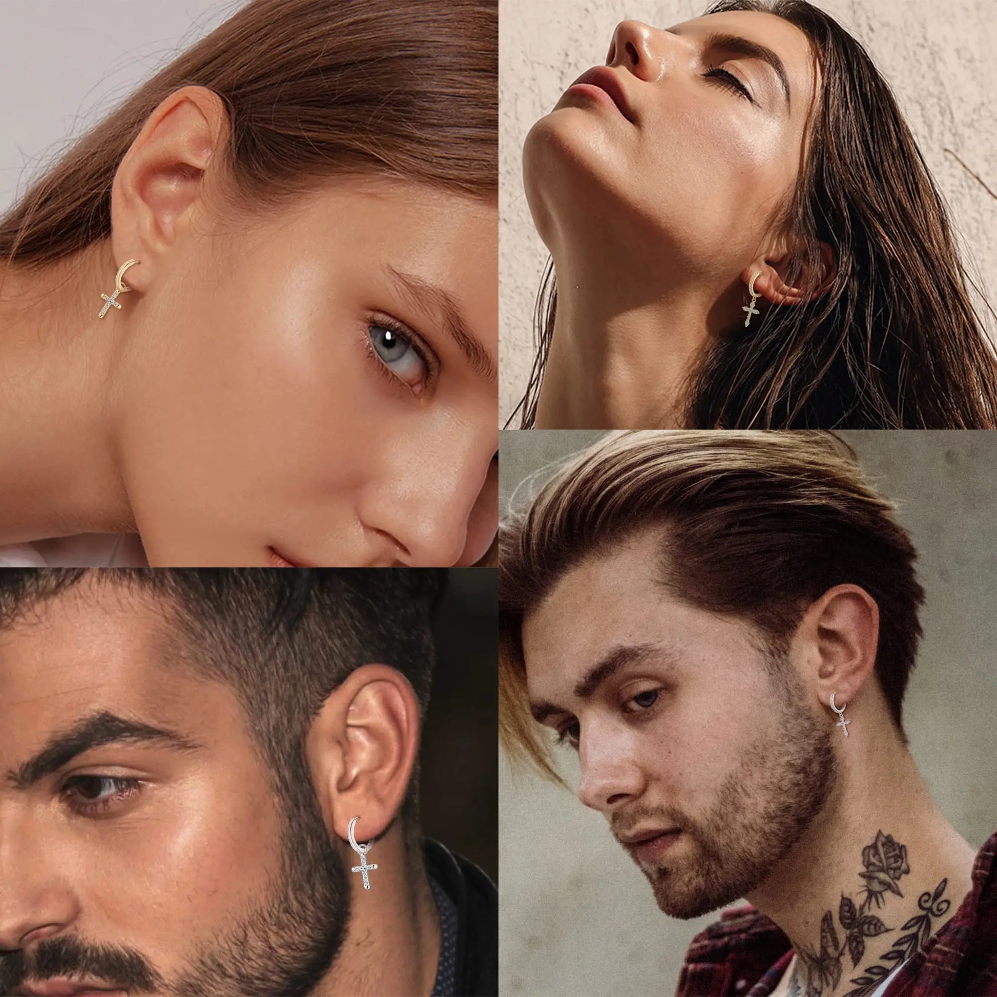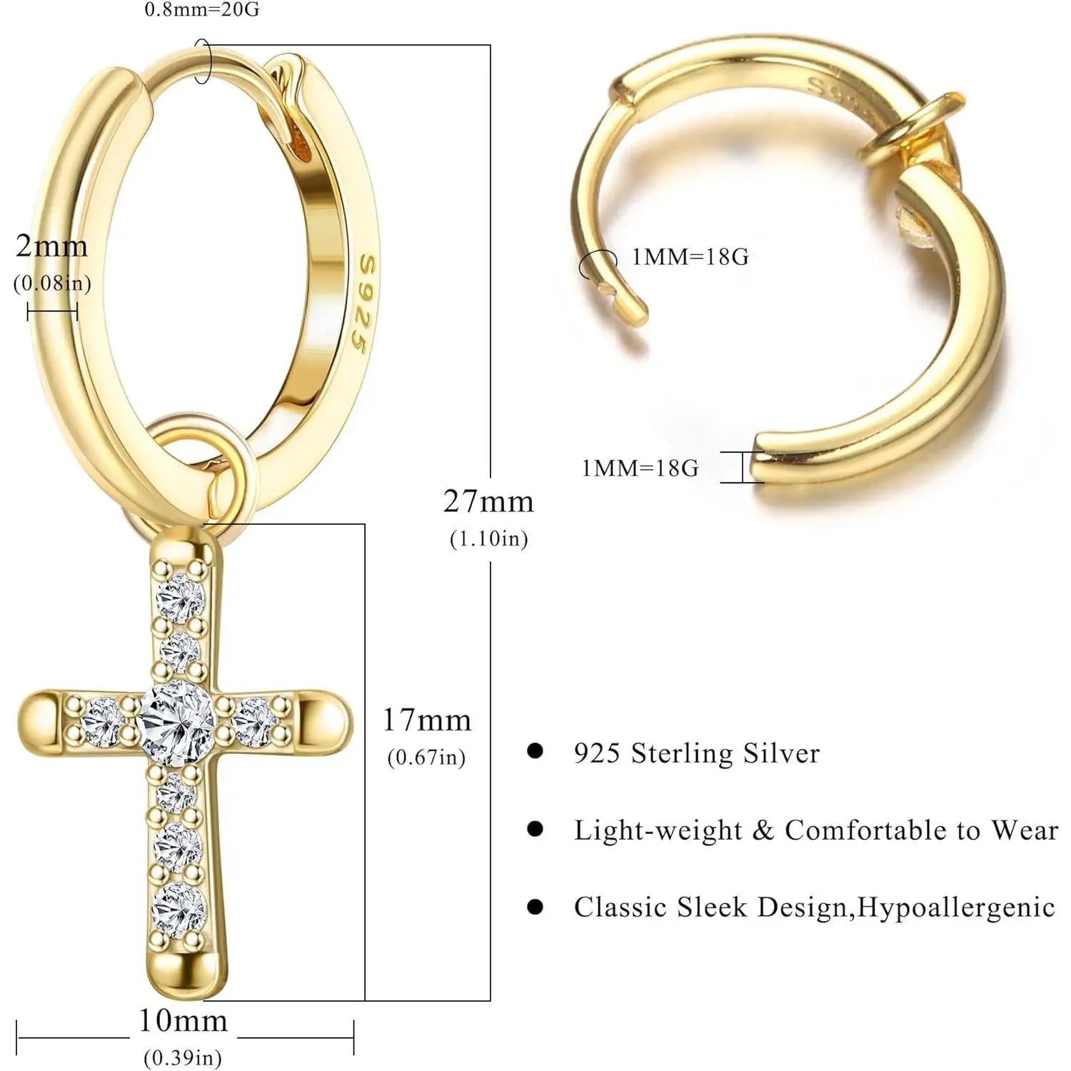 Fansilver 925スターリングシルバー クロスイヤリング レディース メンズ 華奢なCZハギーフープイヤリング アイスアウトクロスダングルイヤリング ボックス付き