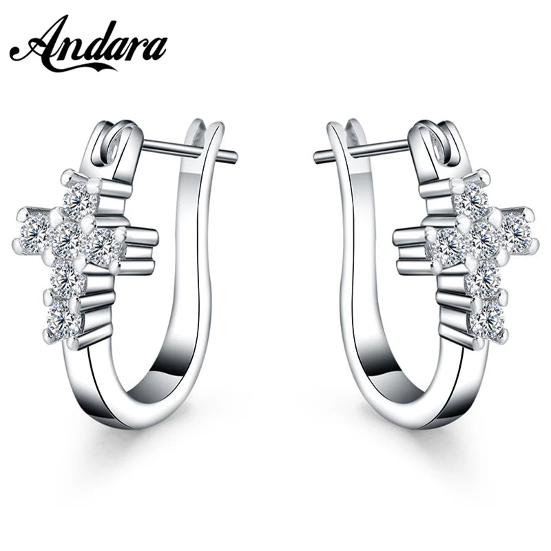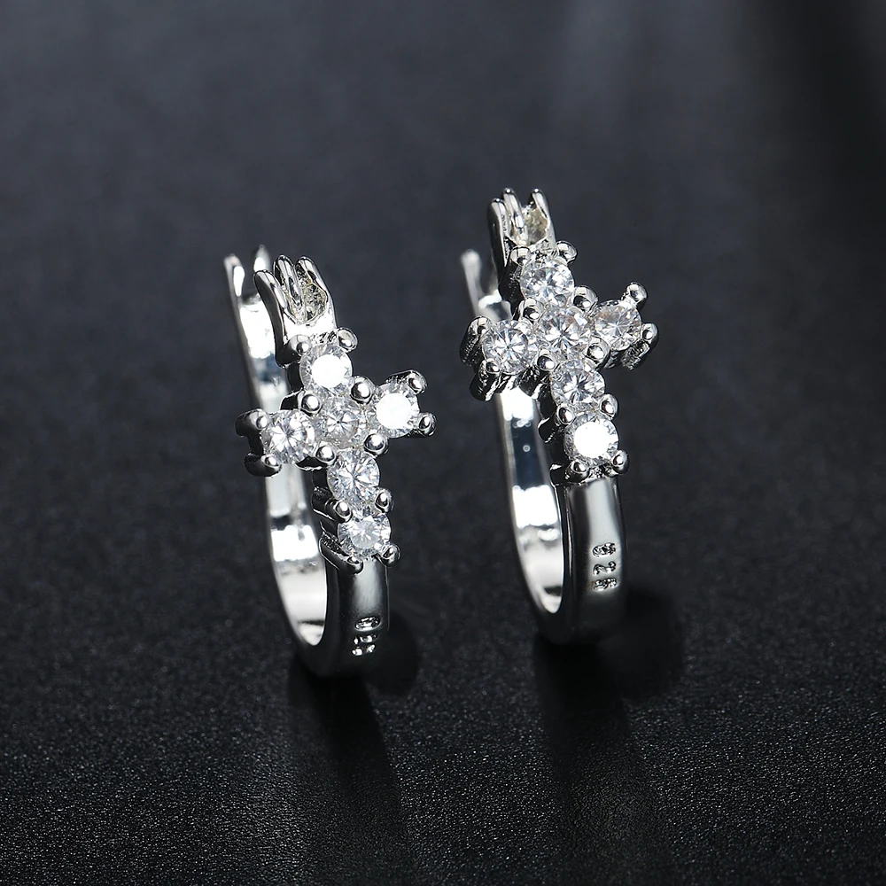 ファッション 925 シルバー イヤリング ジルコン クリスタル クロス イヤリング 女性 グラマー ジュエリー ギフト