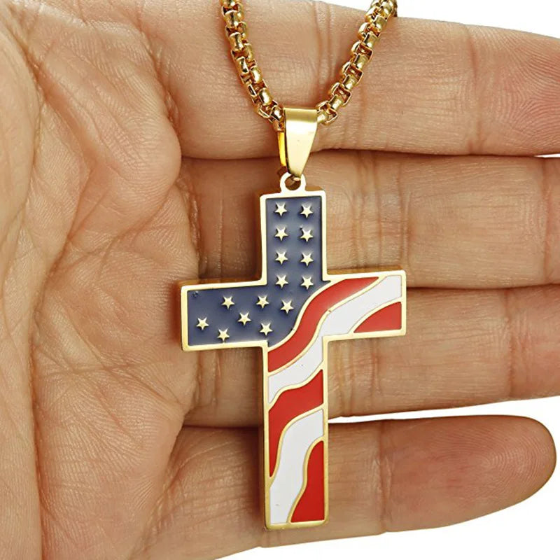 ファッションアメリカ国旗クロスペンダントネックレス レディース メンズ USA独立記念日クロスネックレス ジュエリー カップル 記念日ギフト