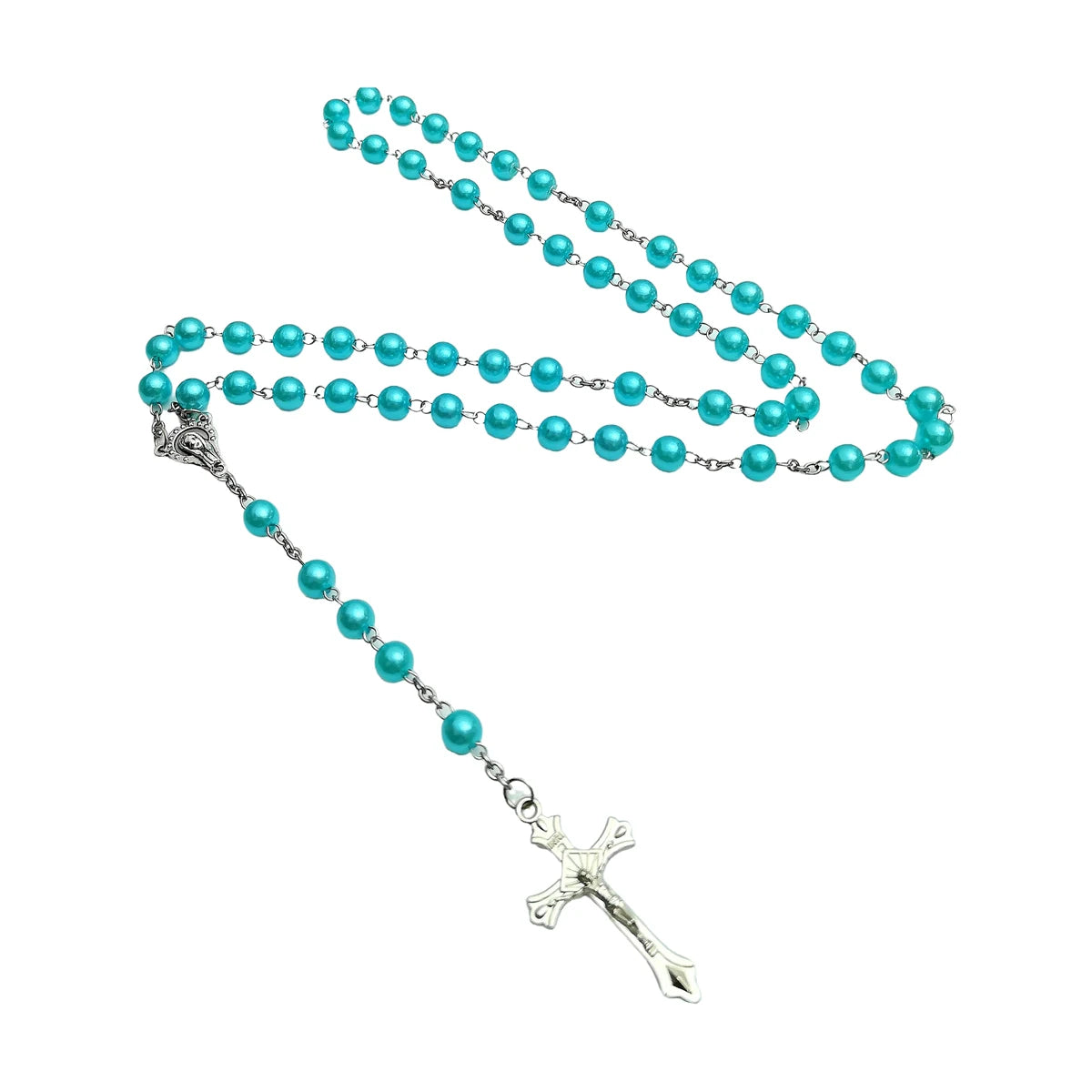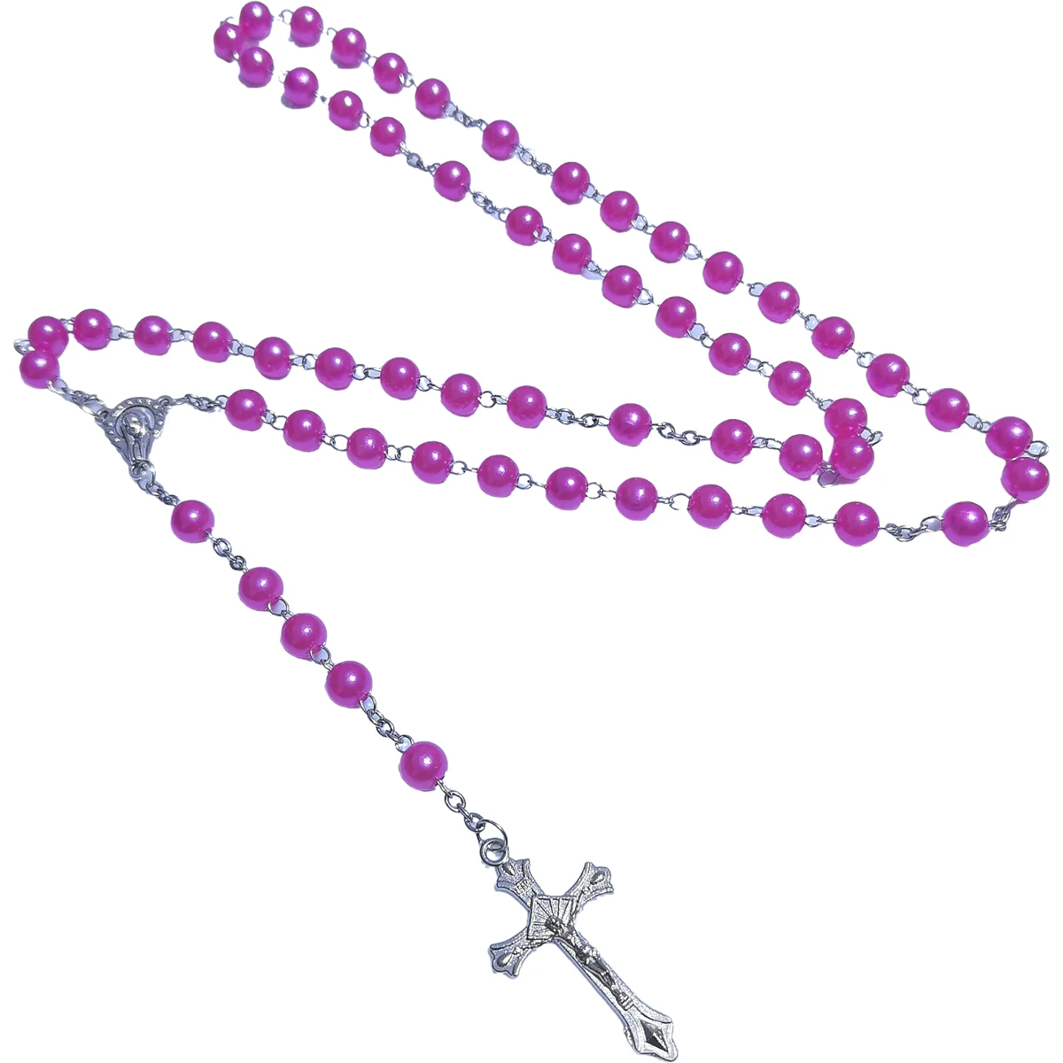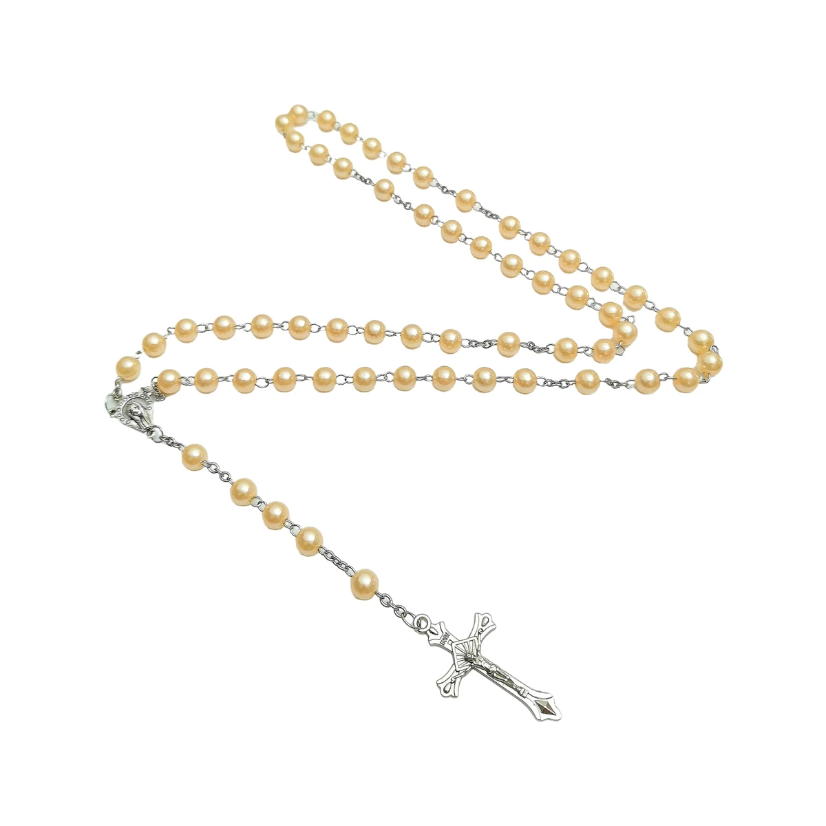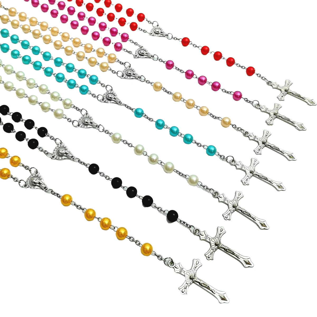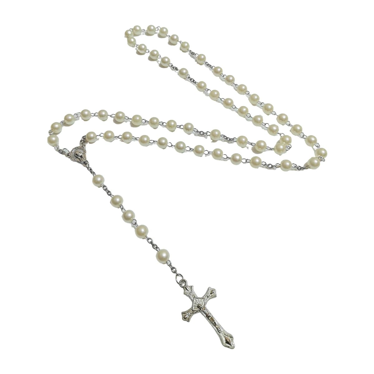 ファッションクロスペンダントロングウェザーチェーンABSイミテーションパール聖母マリアペンダント祈りネックレス女性と男性用