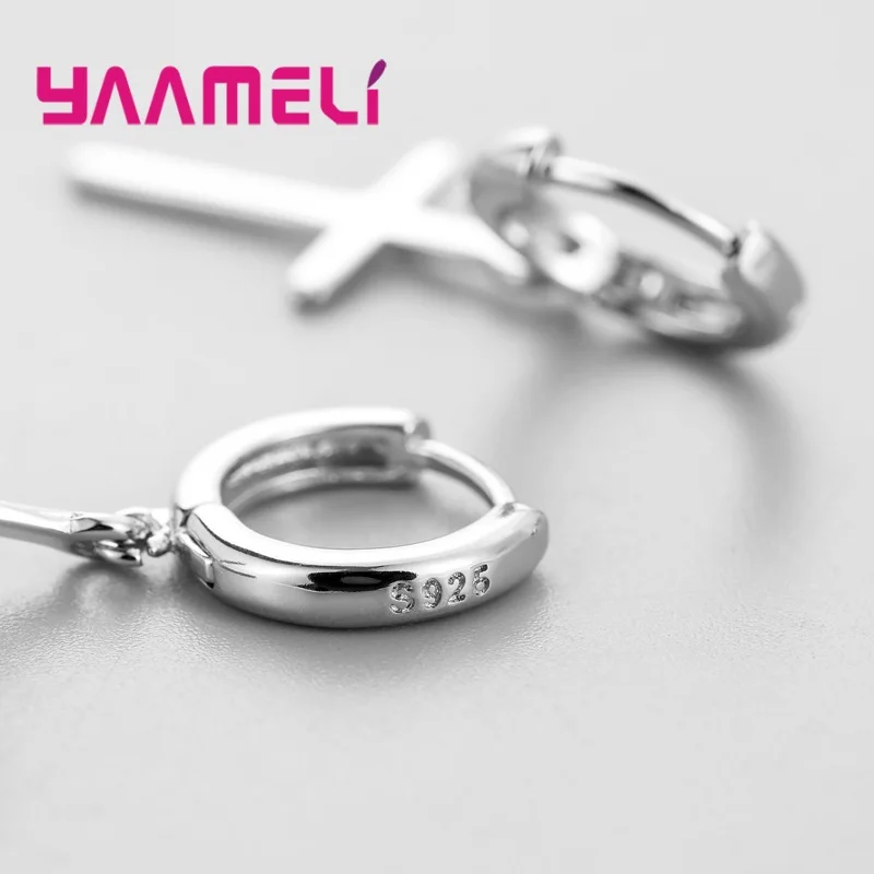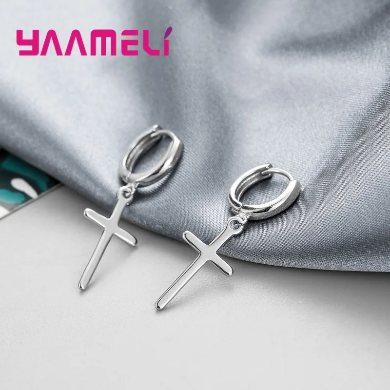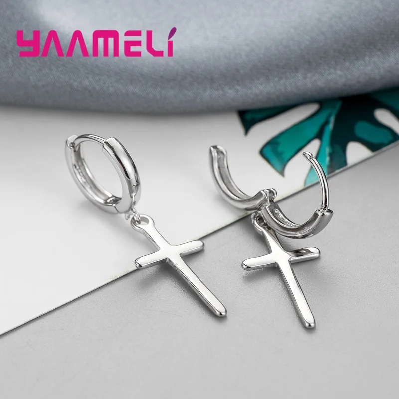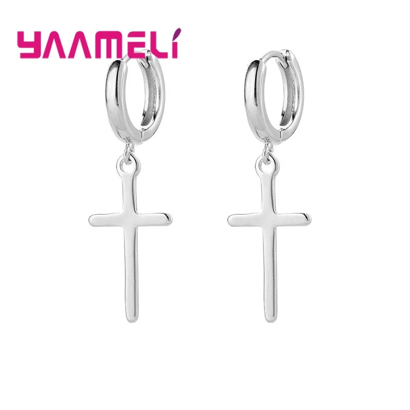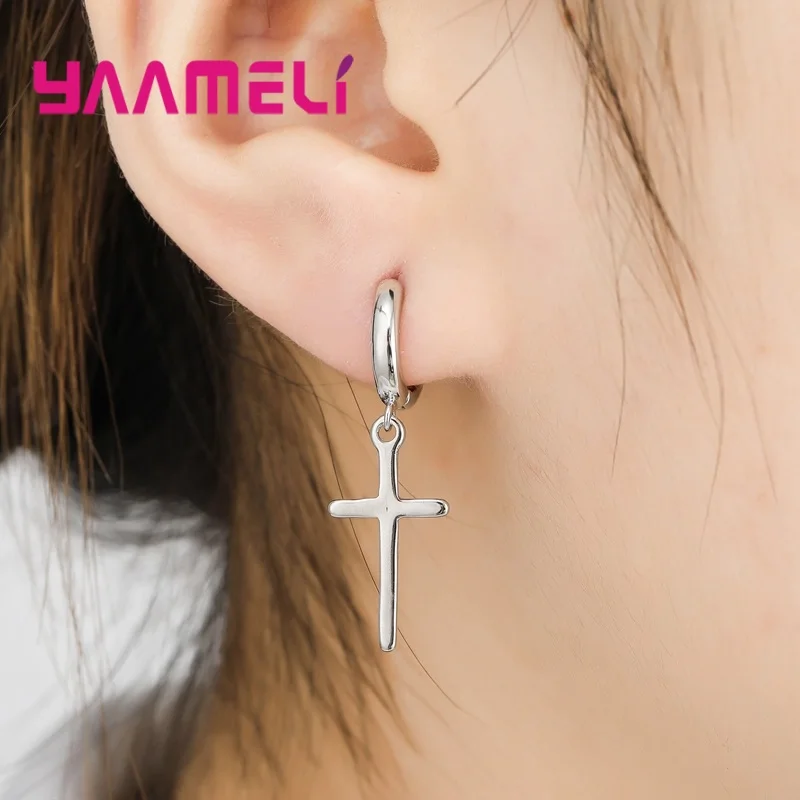ファッションハンドメイドシンプルスムースクロスチャームドロップイヤリングファイン925スターリングシルバーヒップホップジュエリーギフトレディースメンズ