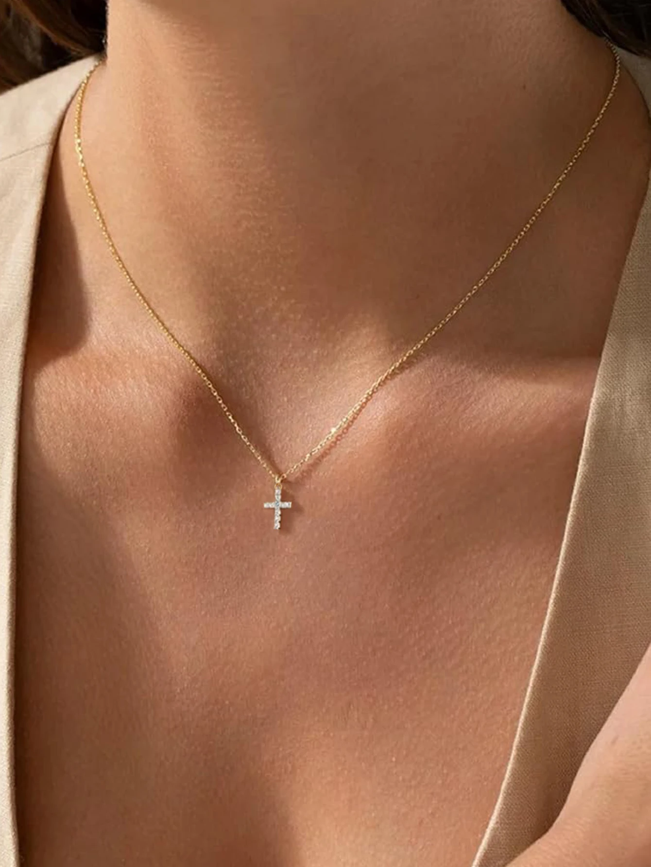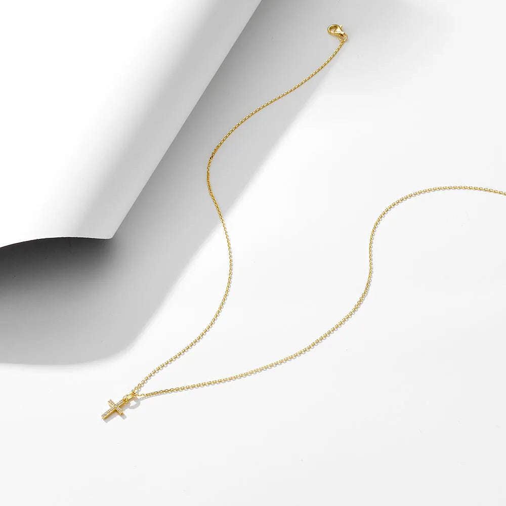ファッションジュエリー シンプル クロスペンダント チェーン チョーカーネックレス 18Kゴールドメッキ 925スターリングシルバーネックレス レディース メンズ