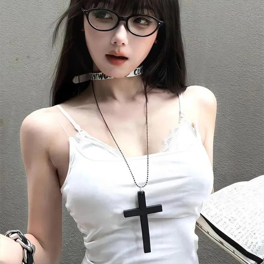 2025年新作 クールパンクゴシックウッドクロスペンダントネックレス レディース メンズ ヴィンテージ ブラック ホワイト ヒップホップ Y2Kネックレス パーティージュエリーギフト