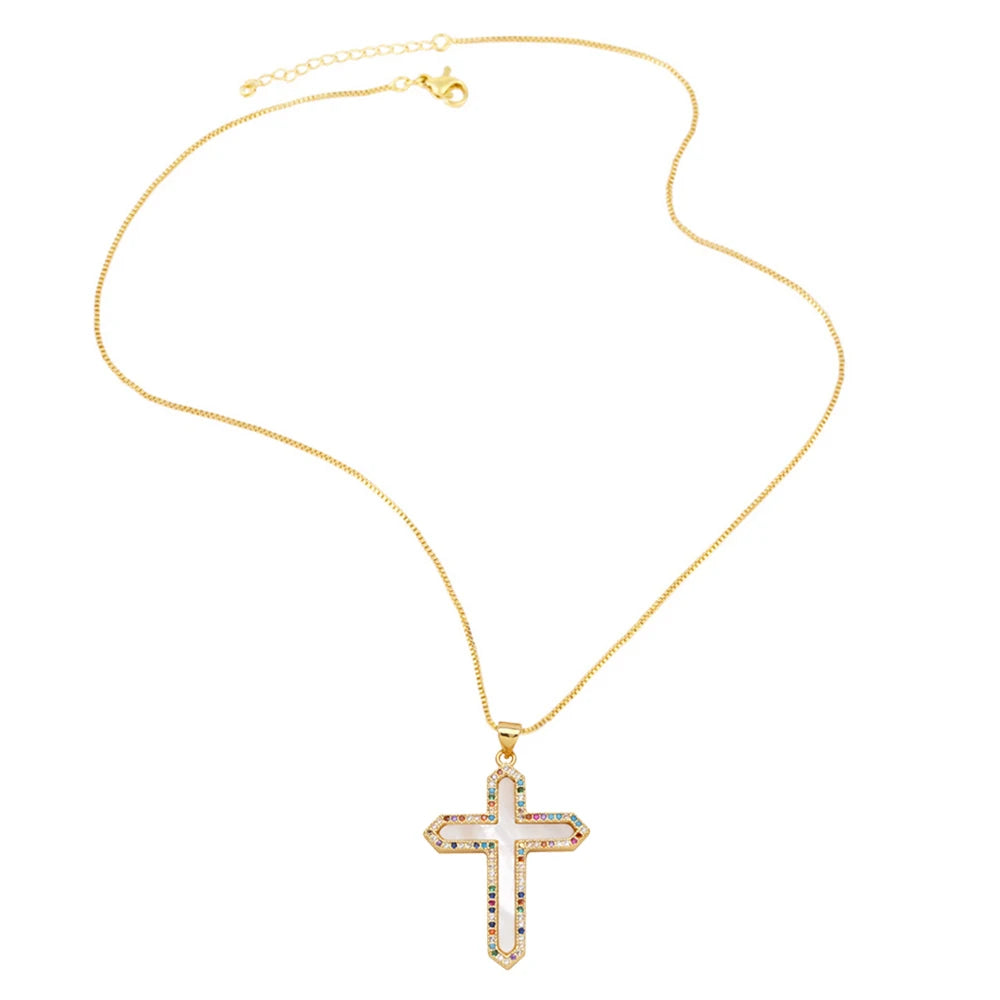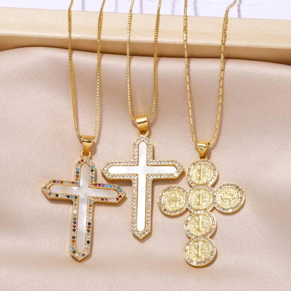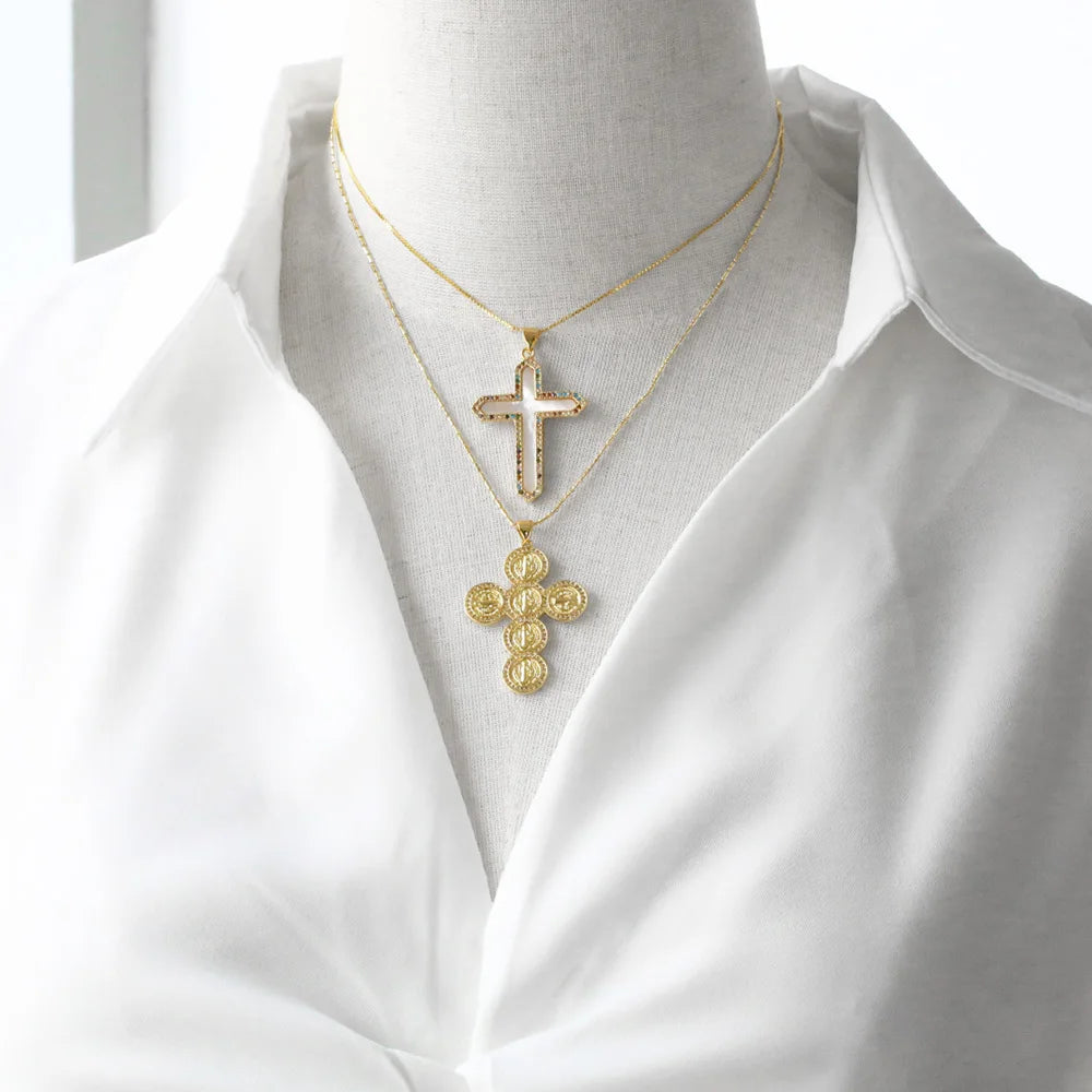 FLOLA 女性用 聖母マリア十字架ネックレス 銅 ゴールドメッキ グアダルーペネックレス ステートメントジュエリーギフト nkea097