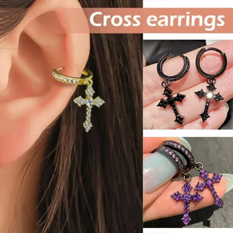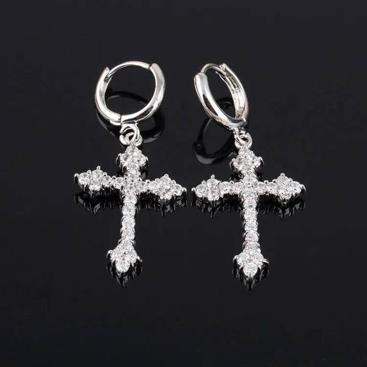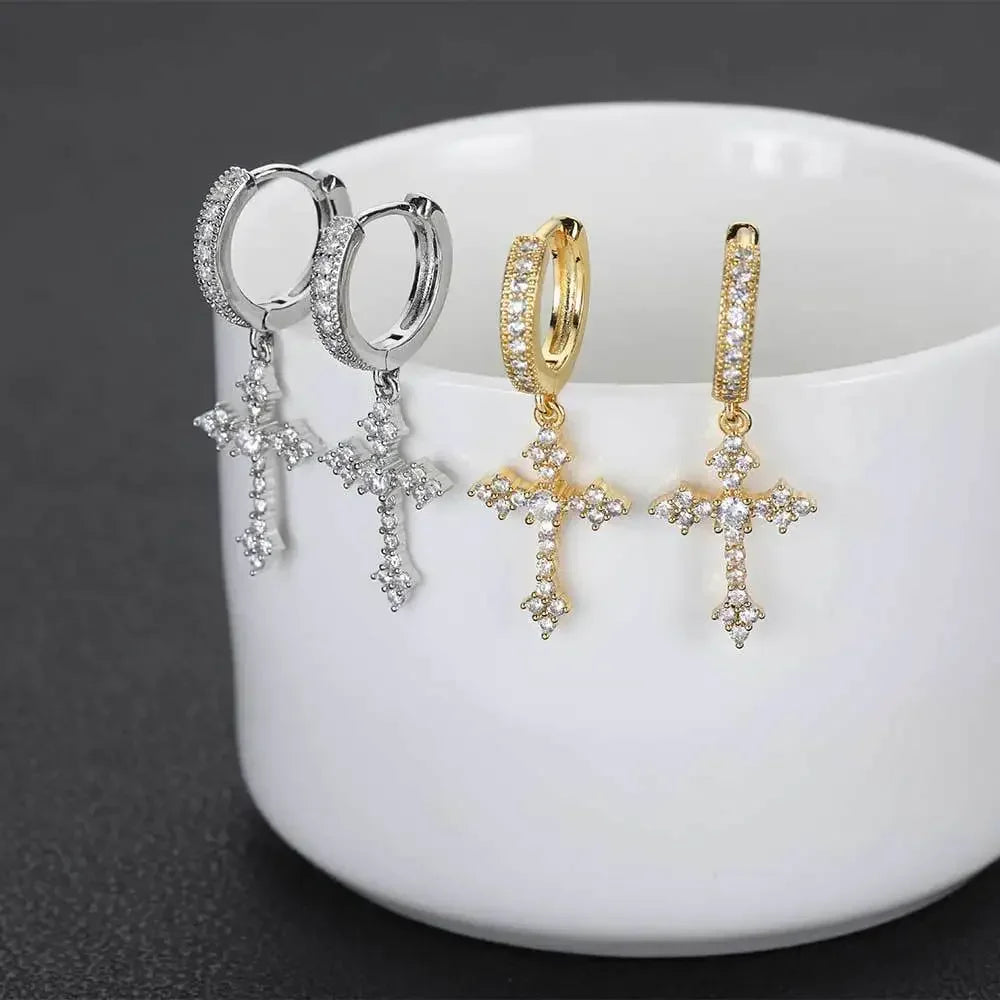 ゴススタイル ジルコン クリスタル クロス ドロップ ダングル イヤリング レディース メンズ ラグジュアリー ゴールド シルバーカラー フープイヤリング ファッション パンク ジュエリー