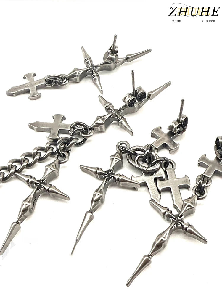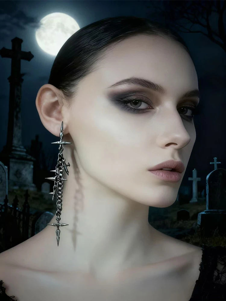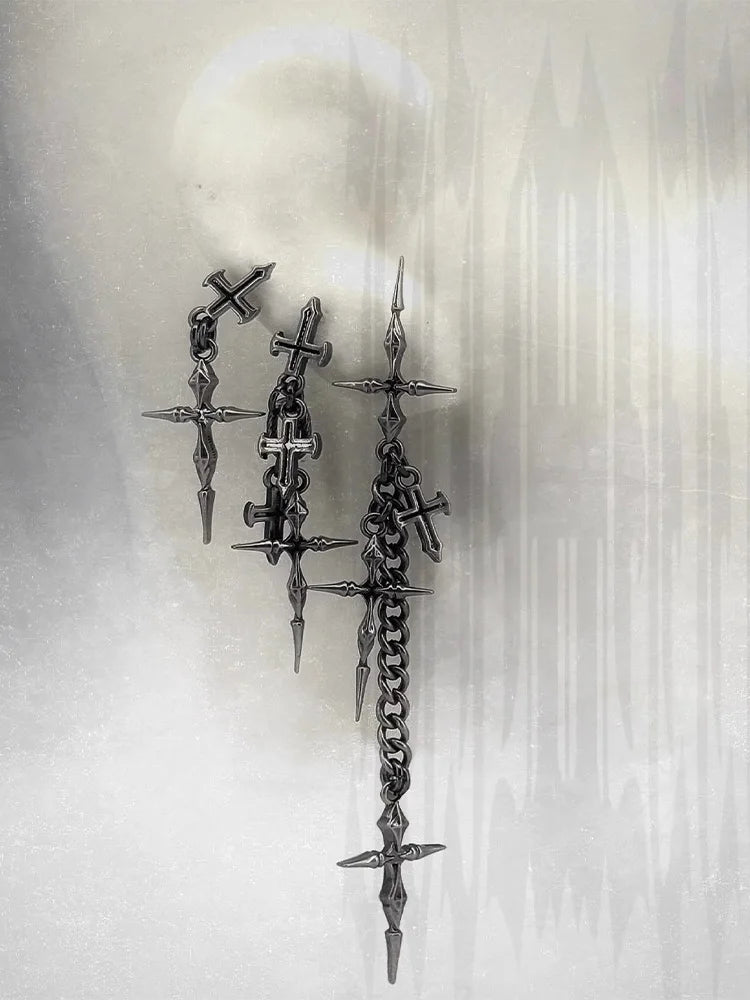 ゴシッククロスチェーンイヤリング、ファッショナブルなジュエリーアクセサリー、男女兼用でエッジの効いたアイテム
