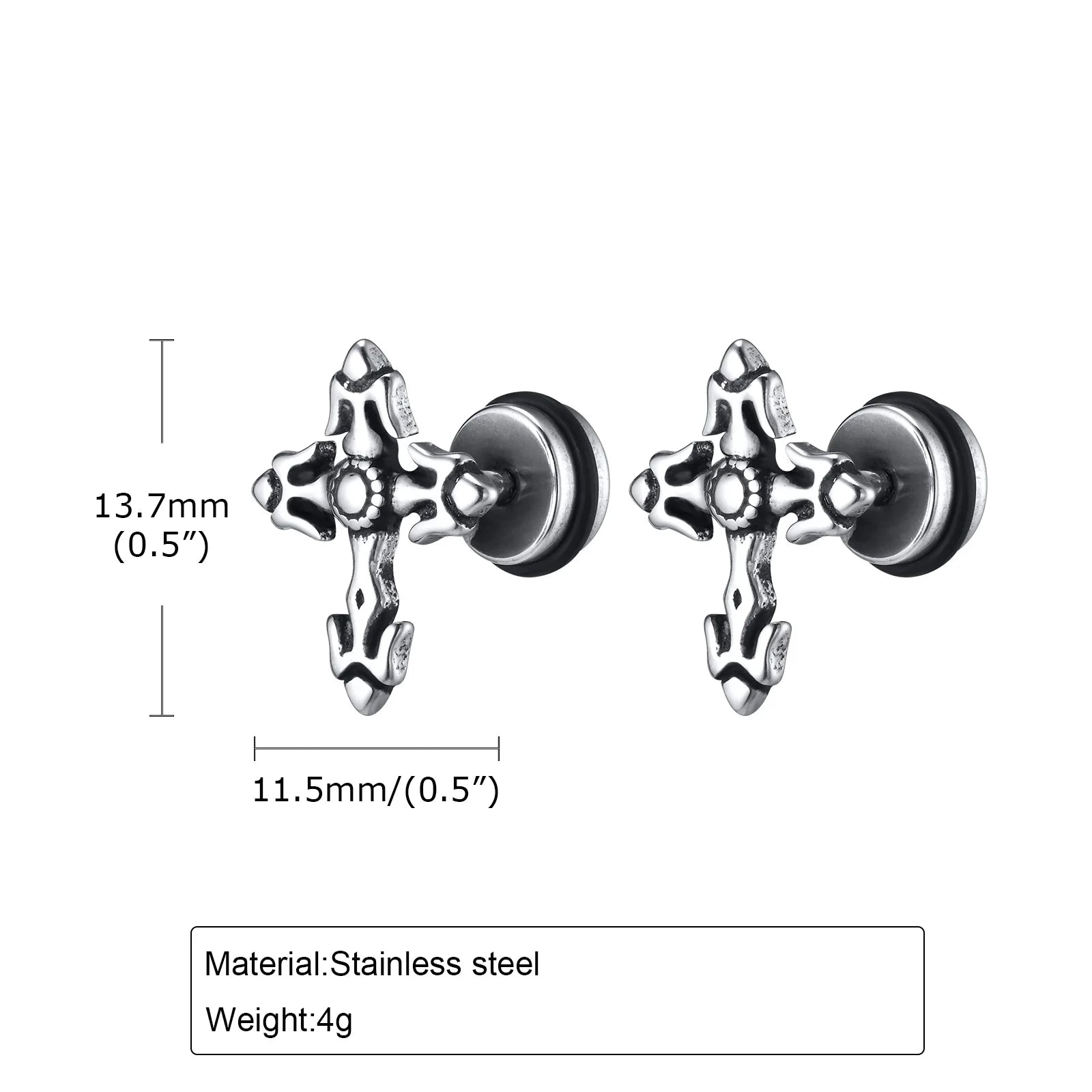 ゴシッククロスイヤリング メンズ ボーイズ用 防水ステンレススチールスタッドイヤリング ロックパンク 祈りのジュエリー ハロウィンギフト