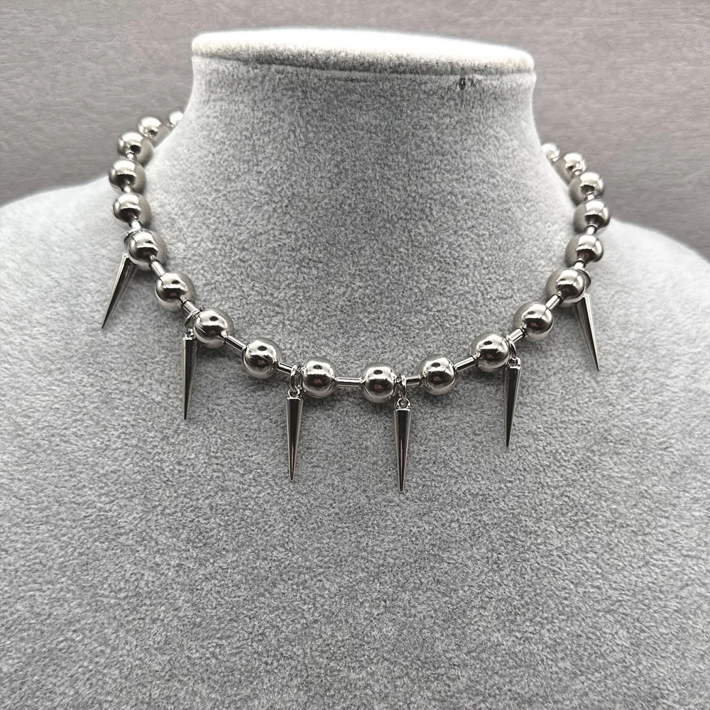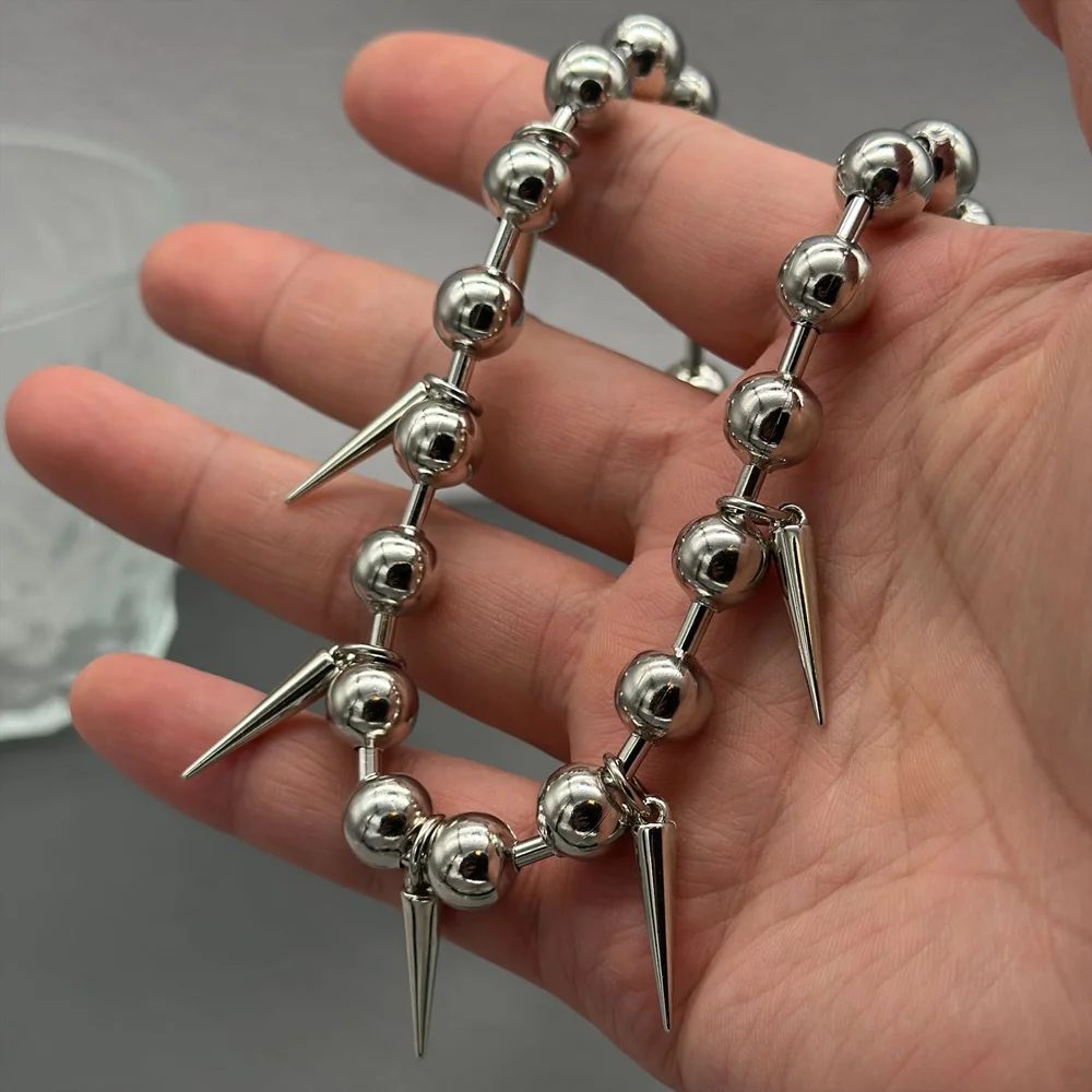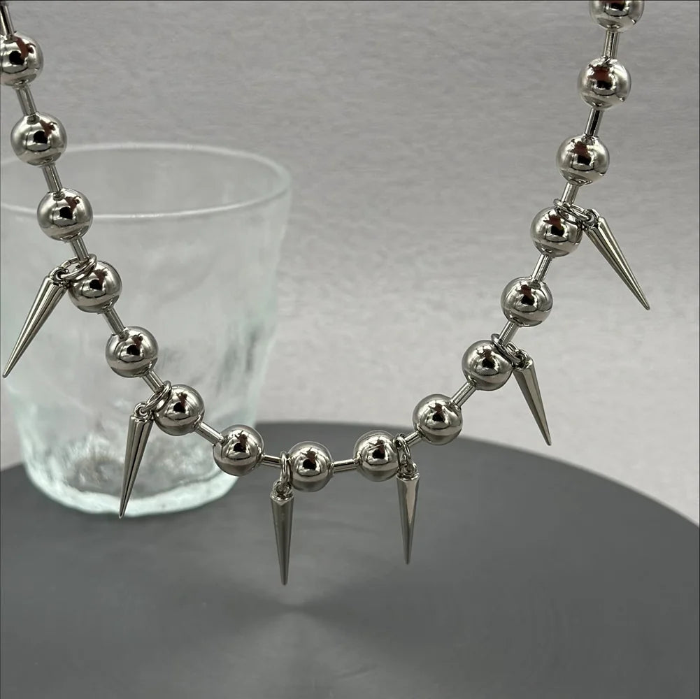 ゴシックファッション ビッグチャンキーボールチェーンリベットチョーカーネックレス レディース メンズ パンク Y2K グランジ スパイクビーズチェーンネックレス