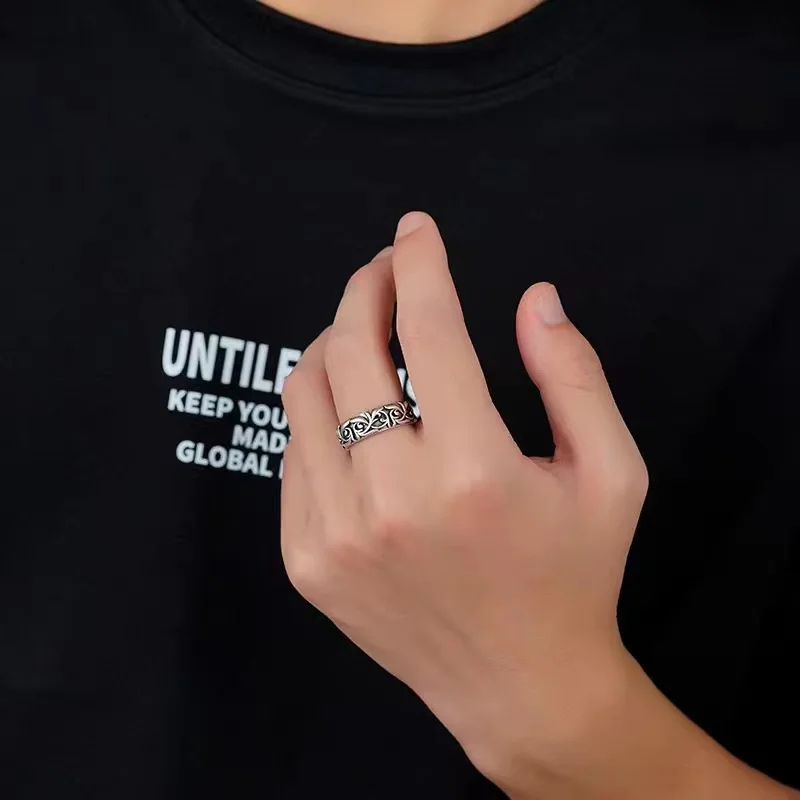 ゴシックパーソナリティクロススターリングシルバーリング男性と女性の恋人トレンドセッターレトロタイシルバー永遠のラタンリングジュエリー